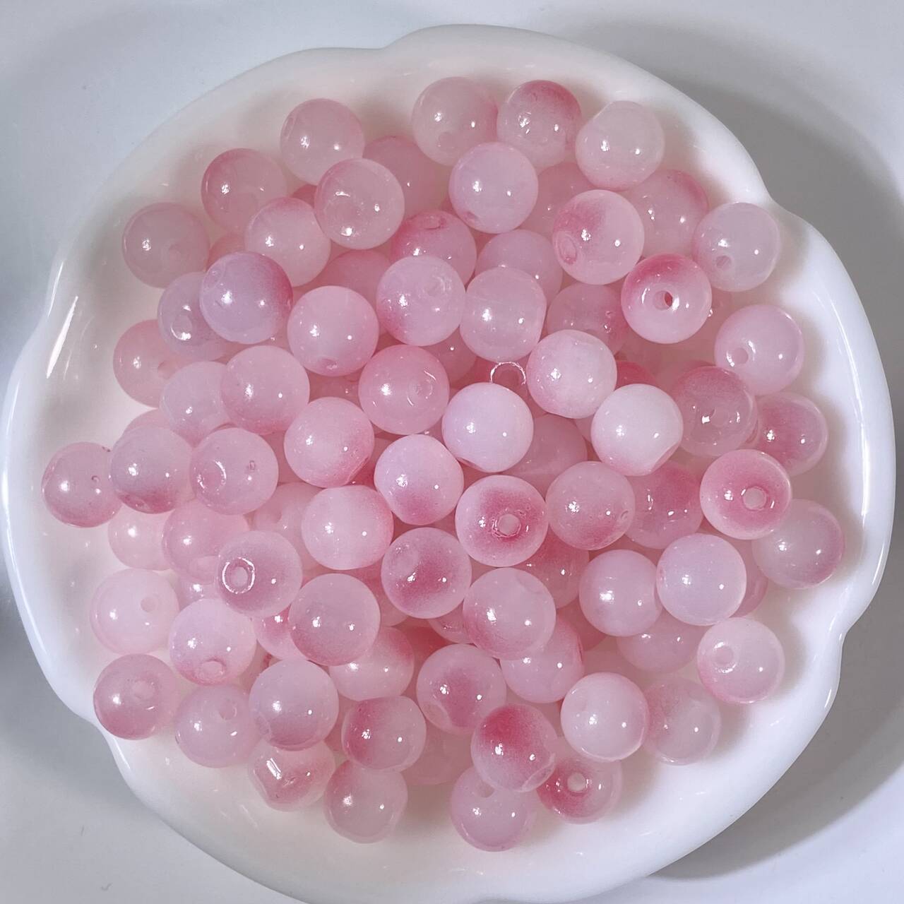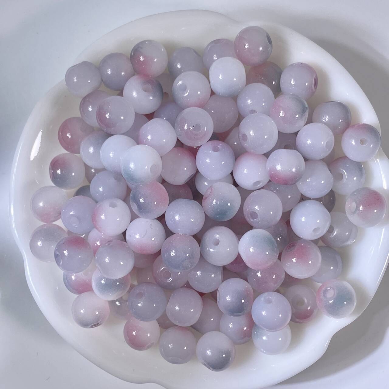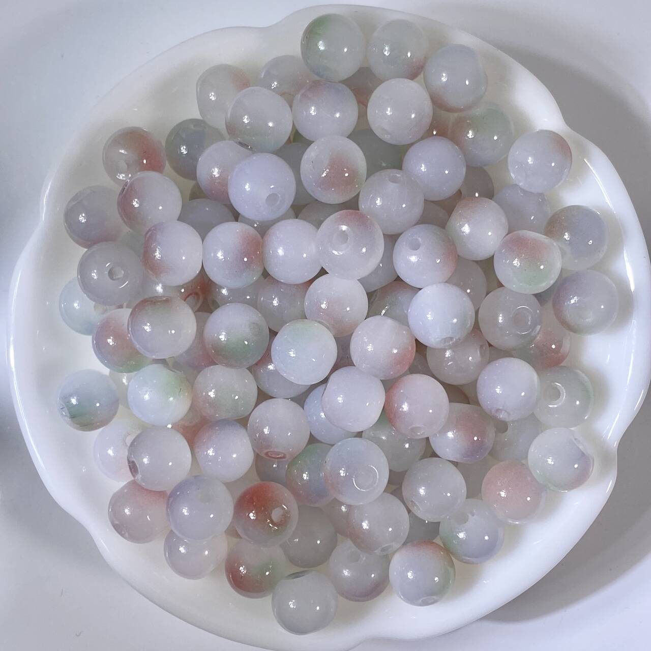 厂家直供8mm白玉琉璃圆珠双色玻璃散珠子diy手工制作手串手链材料
