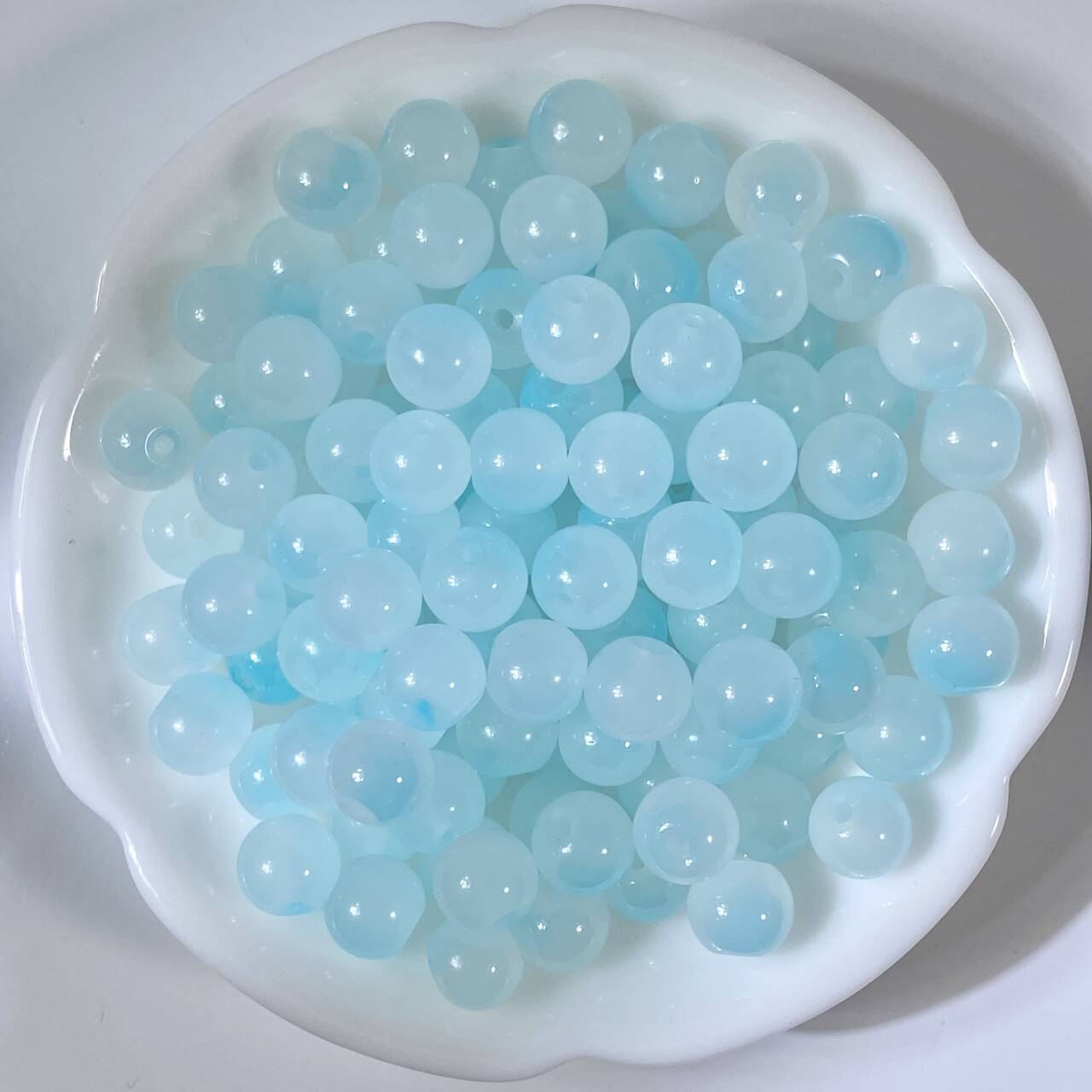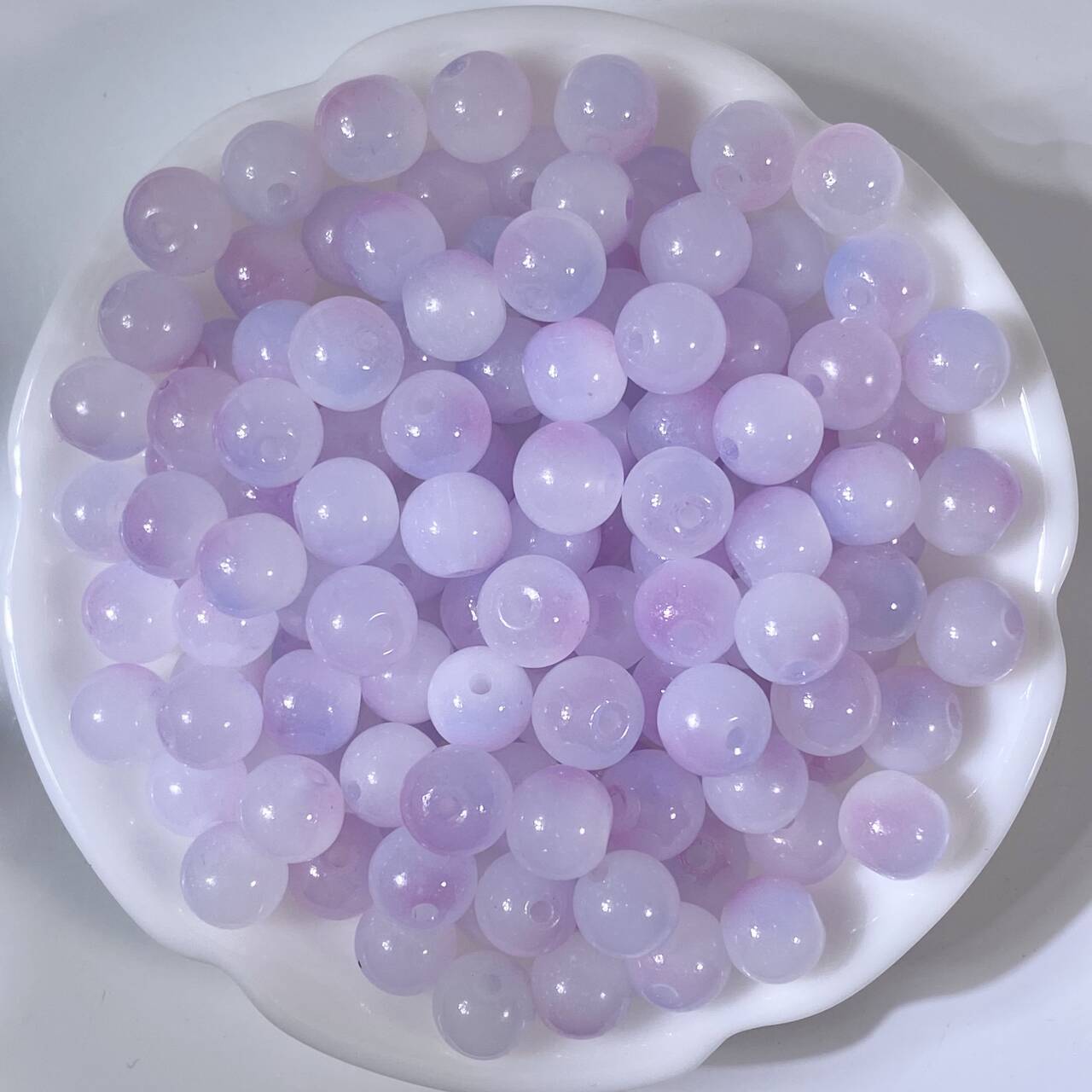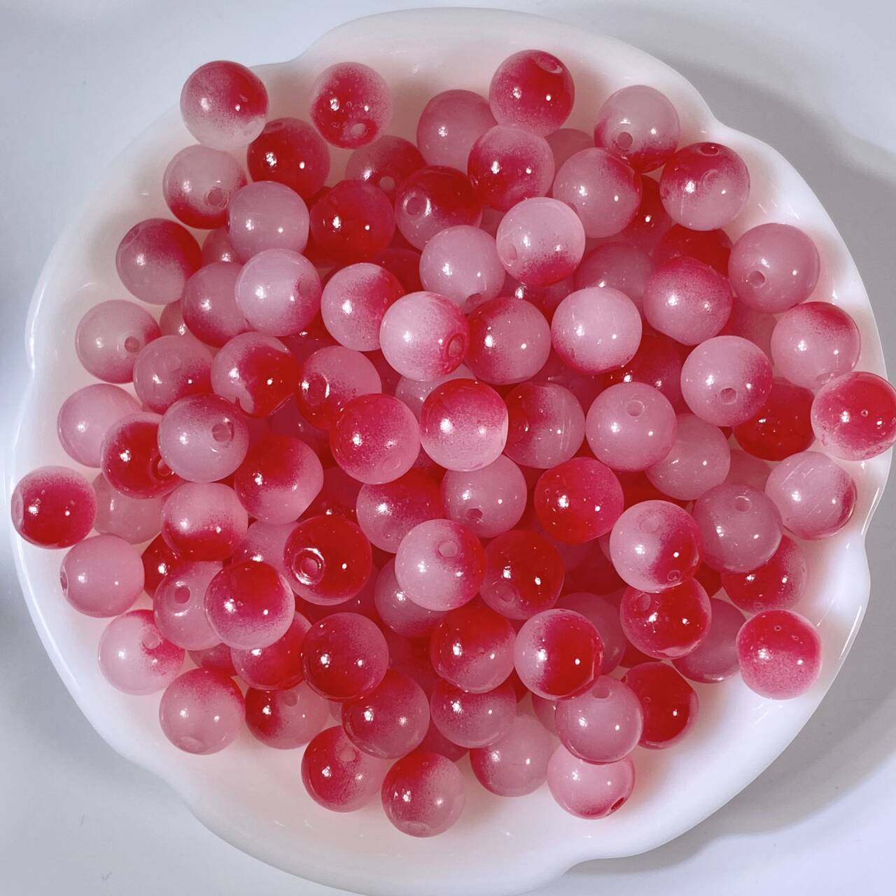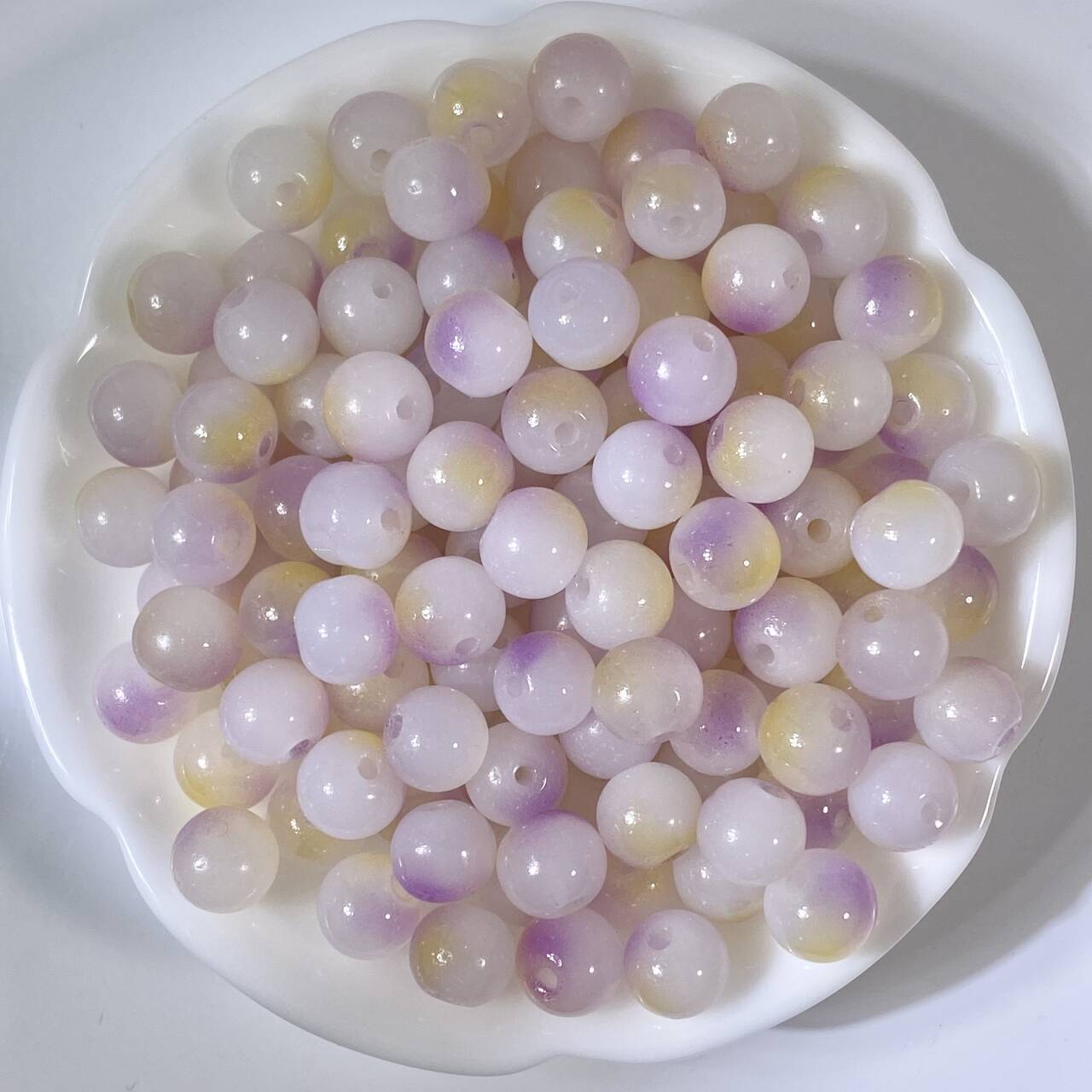 厂家直供8mm白玉琉璃圆珠双色玻璃散珠子diy手工制作手串手链材料