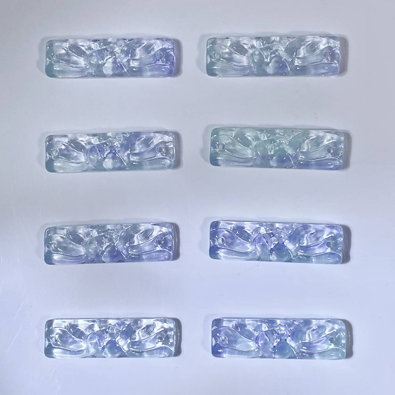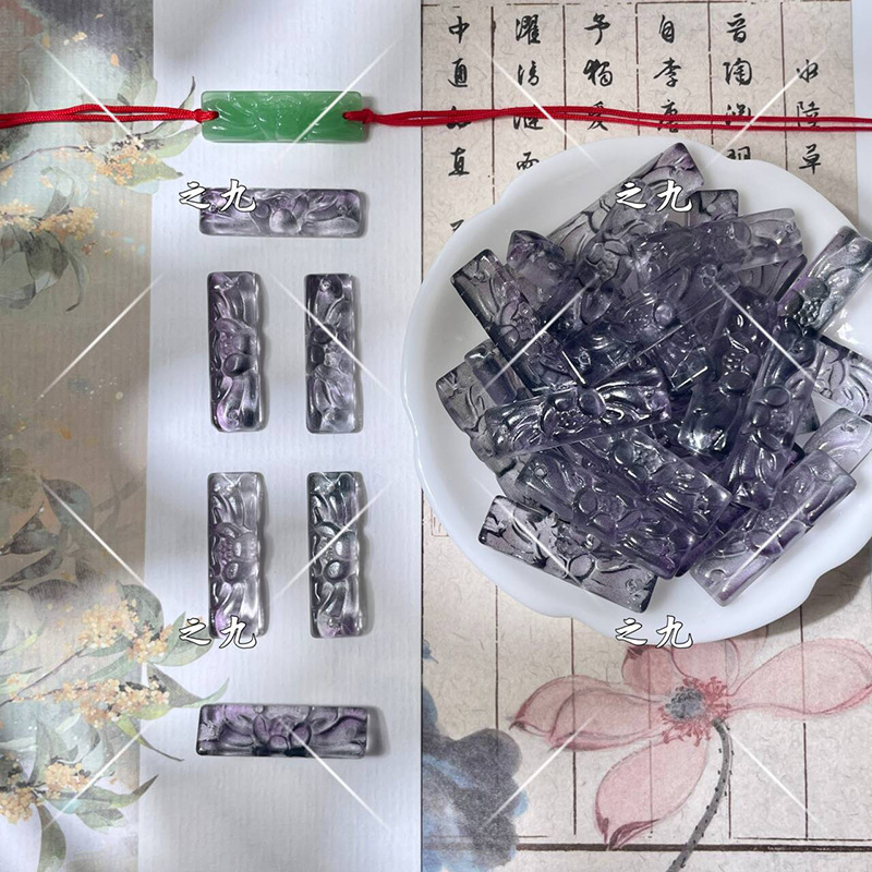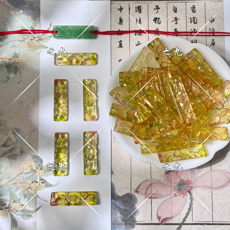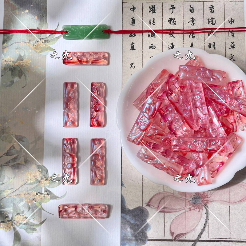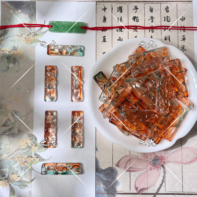 批发9x30mm琉璃莲花牌单面雕刻花牌diy手工制作发簪手串手链材料