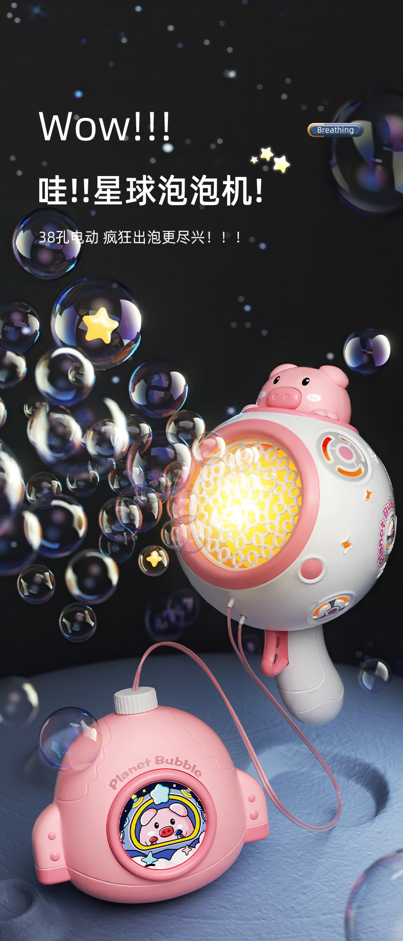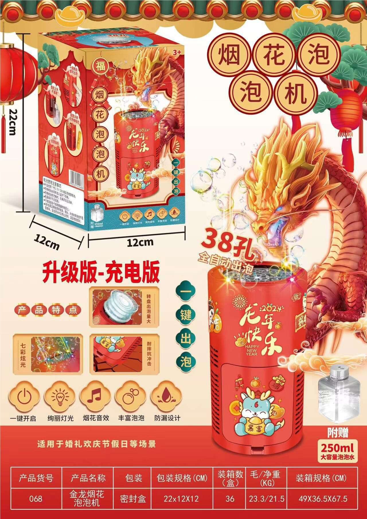 可代发抖音网红38孔烟花泡泡机全自动电动灯光充电款摆摊玩具批发