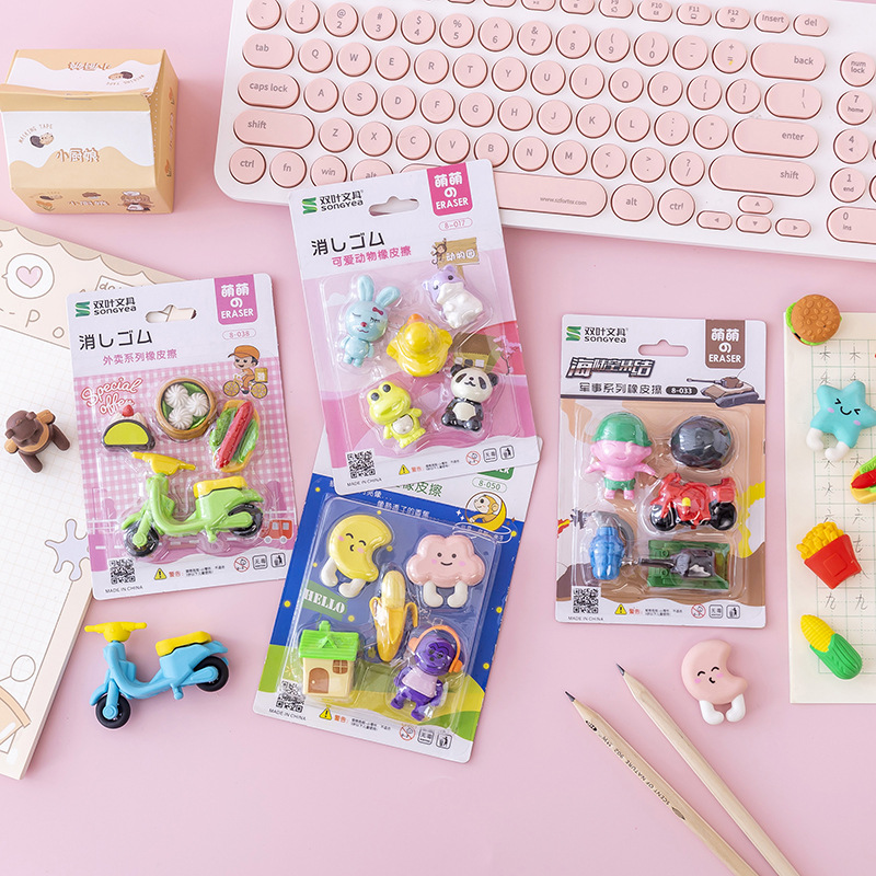 可爱动物萌物橡皮擦套装文具套转六一奖品圣诞礼品期末奖品文具