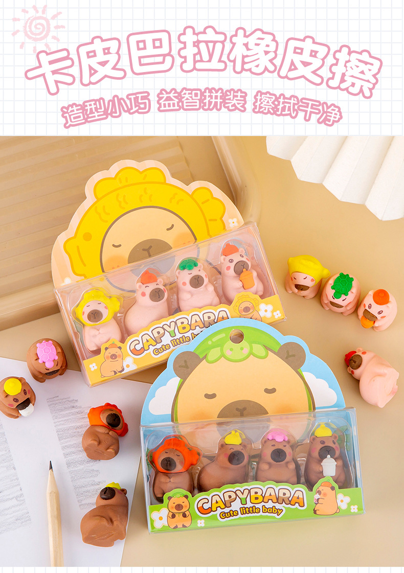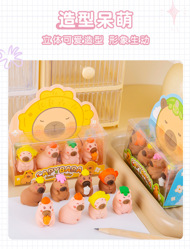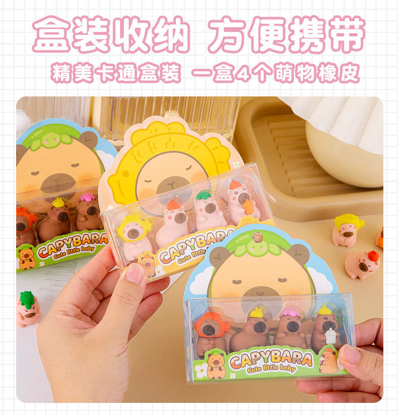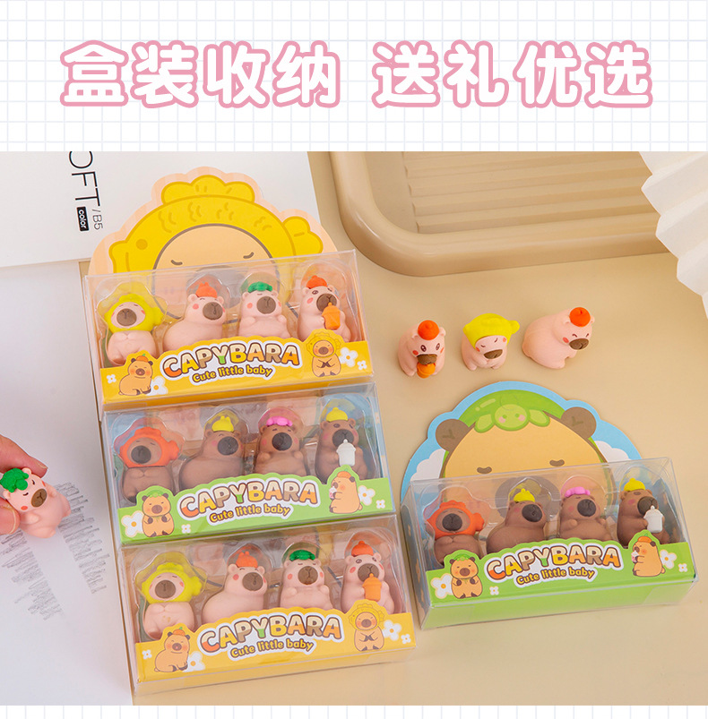 佛系卡皮巴拉盒装橡皮套装学生圣诞期末圣诞奖品礼品礼物文具批发