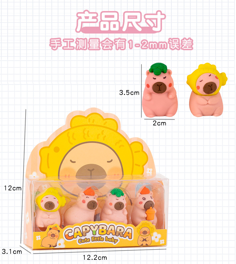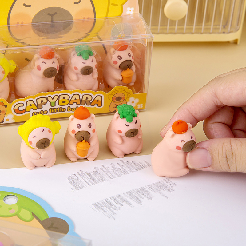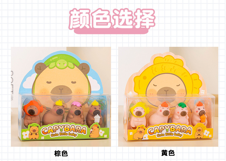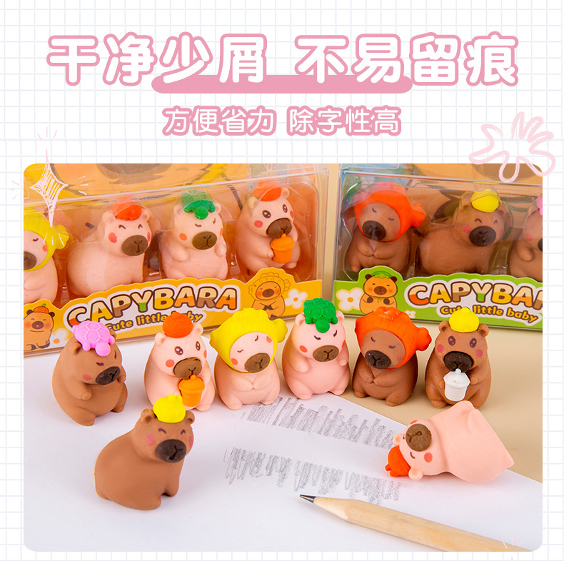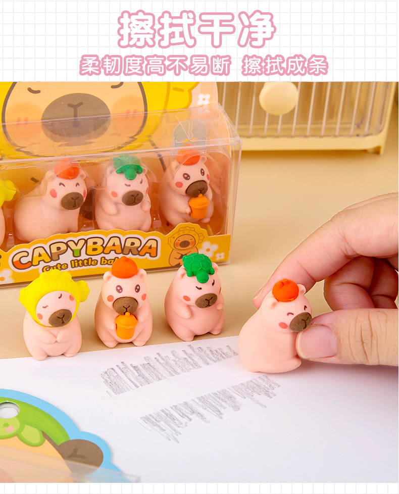 佛系卡皮巴拉盒装橡皮套装学生圣诞期末圣诞奖品礼品礼物文具批发