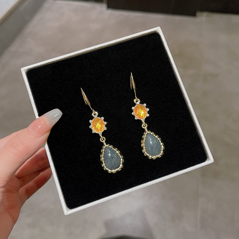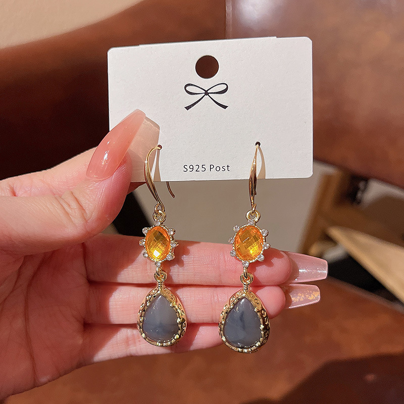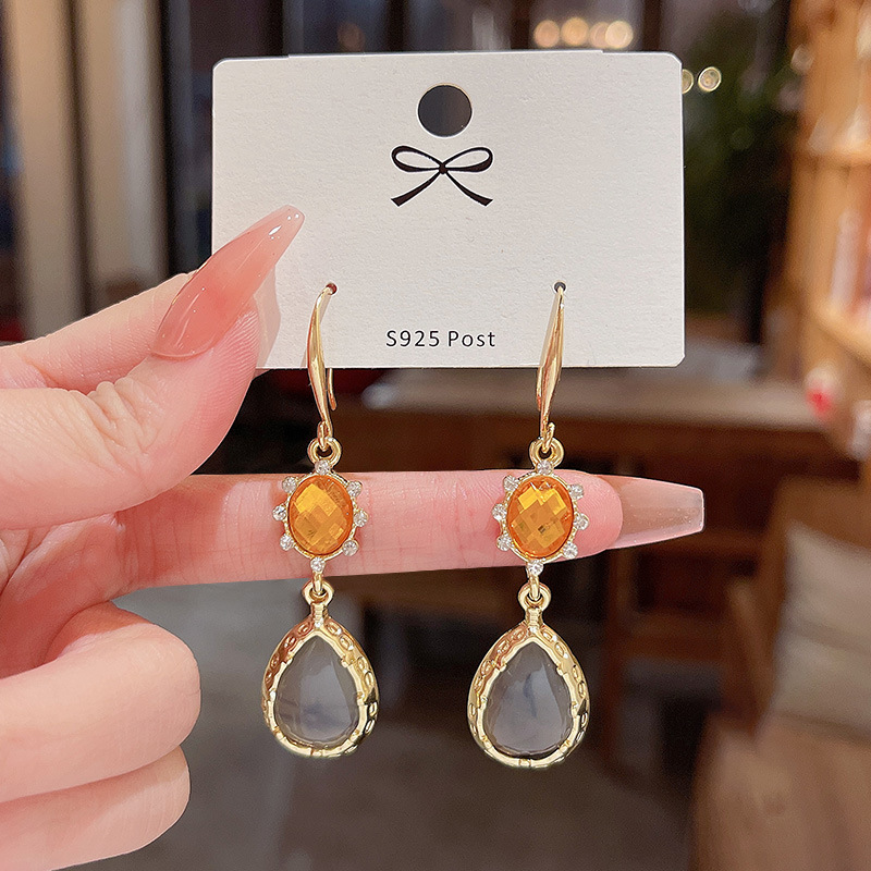 法式复古百搭气质水滴形耳环女S925银针轻奢小众网红同款耳钉耳饰