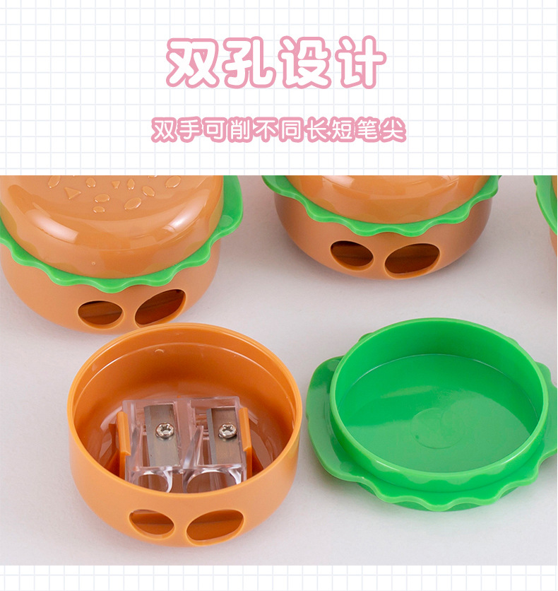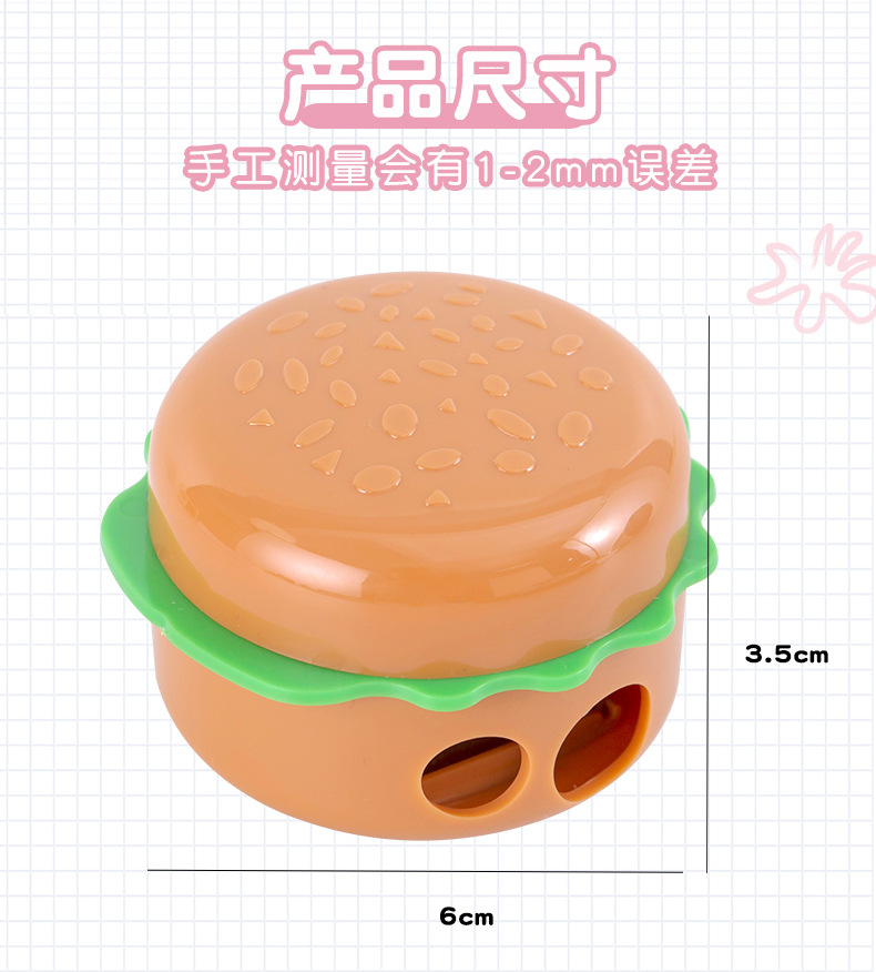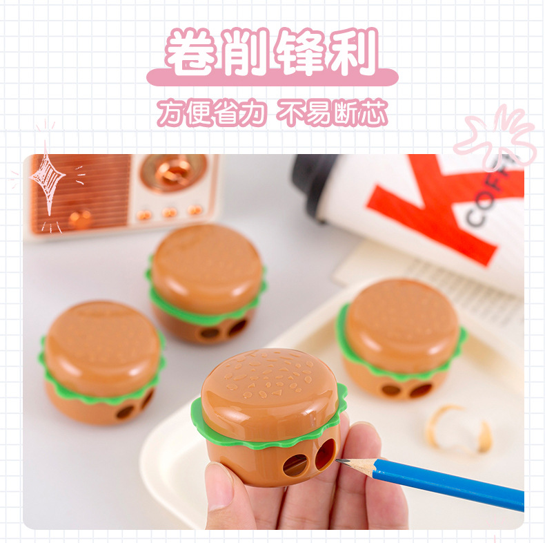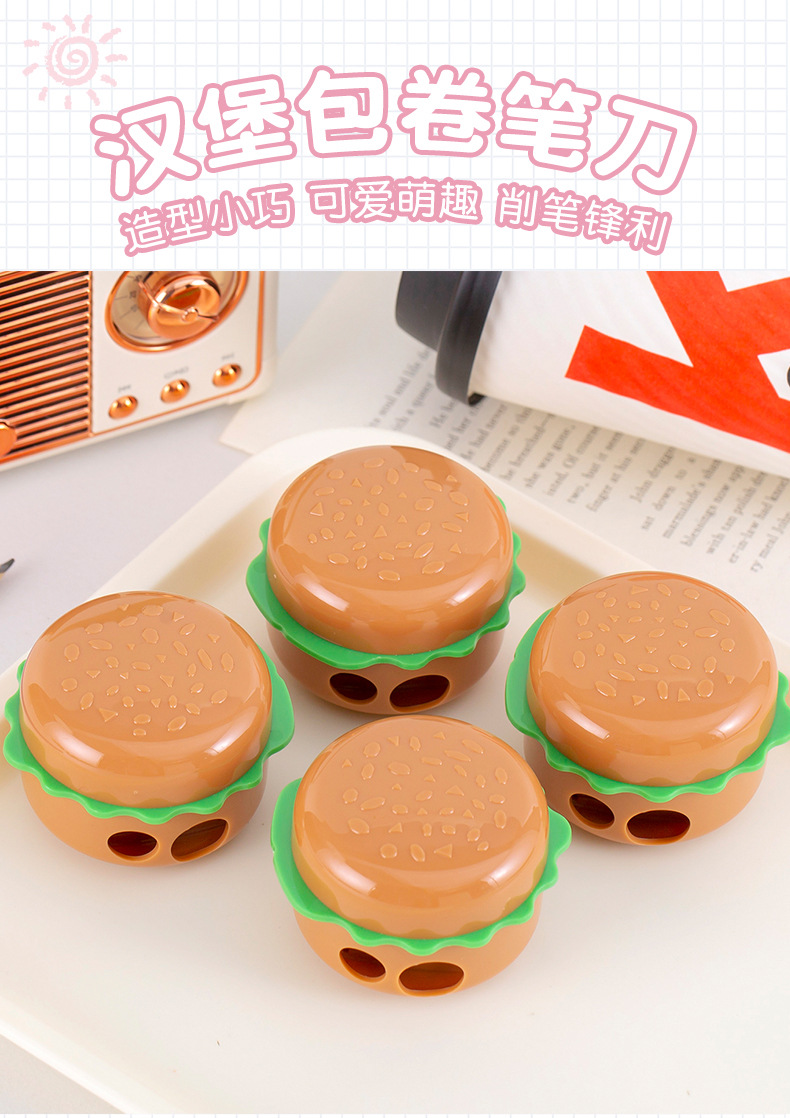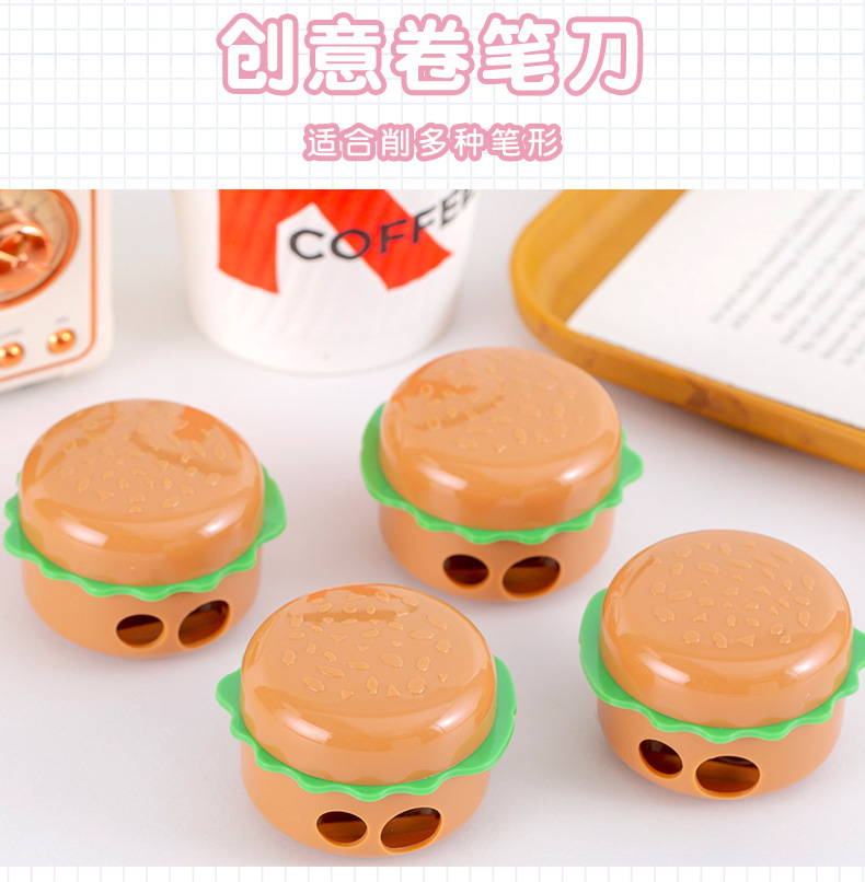 跨境创意汉堡造型双孔卷笔刀学生奖品文具奖励六一期末圣诞礼品