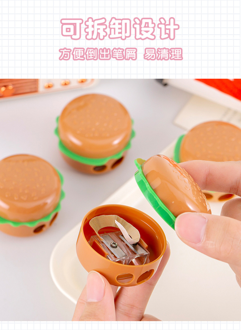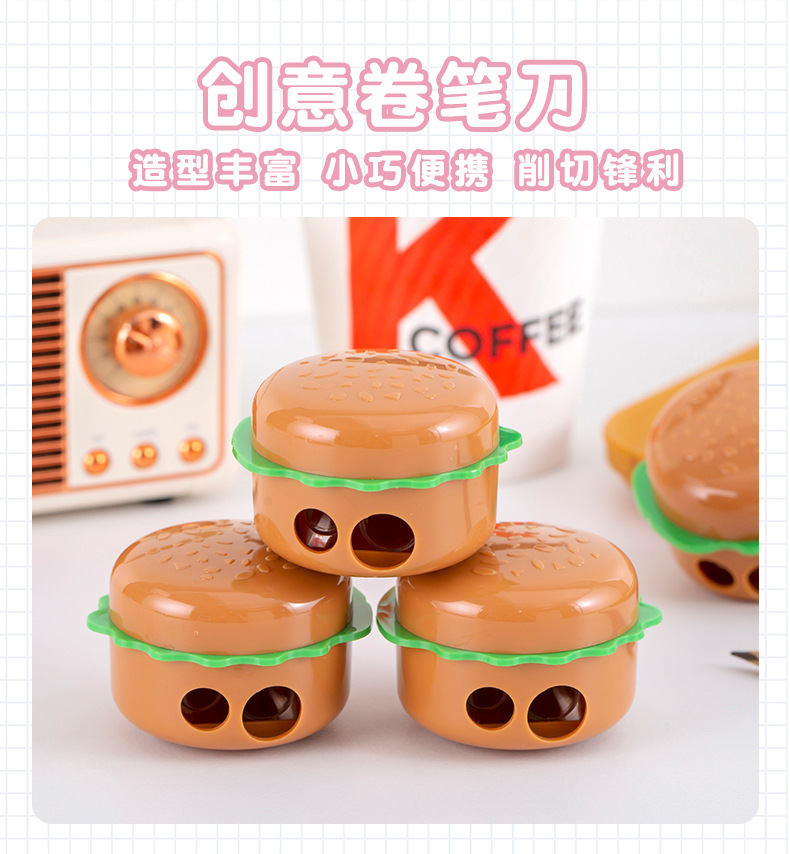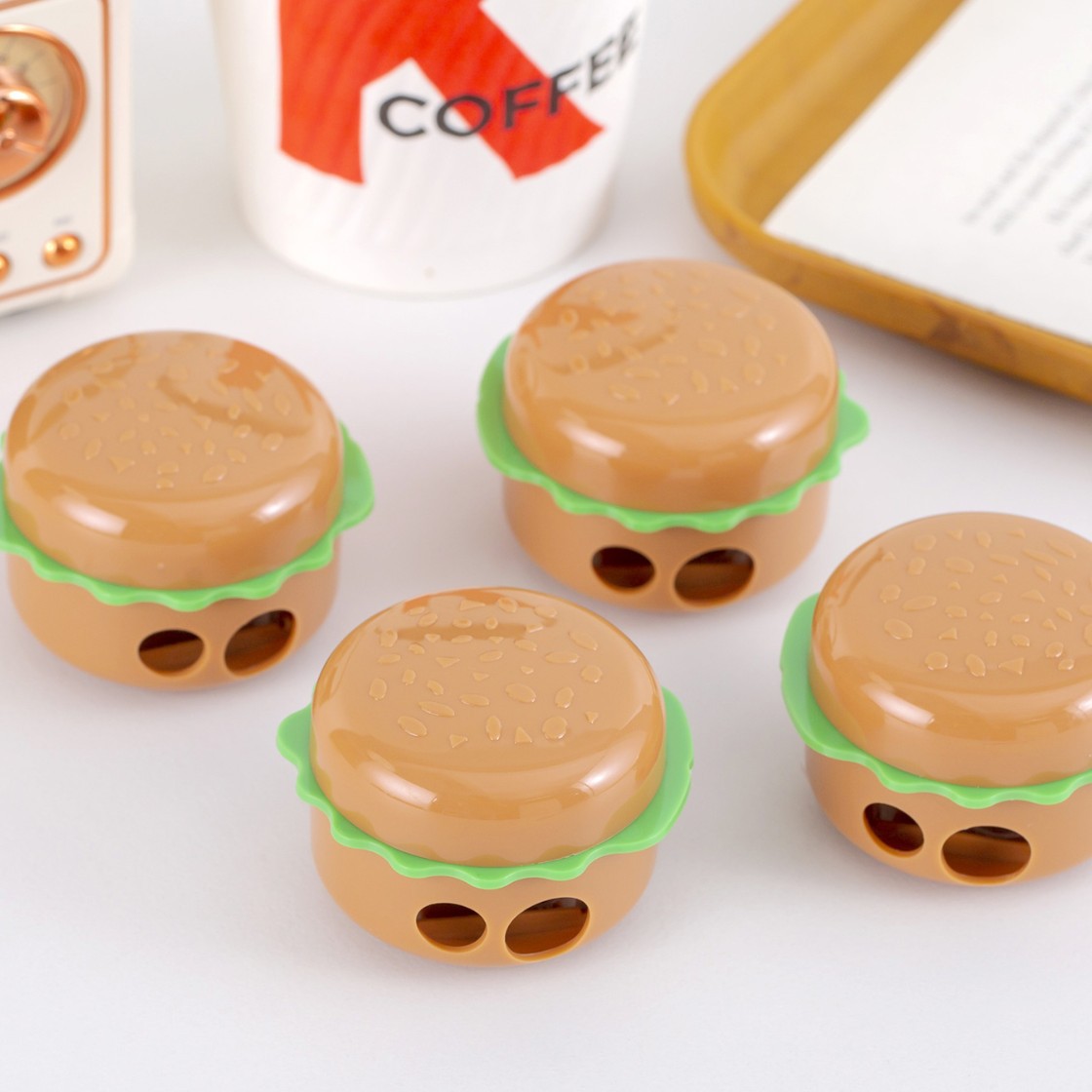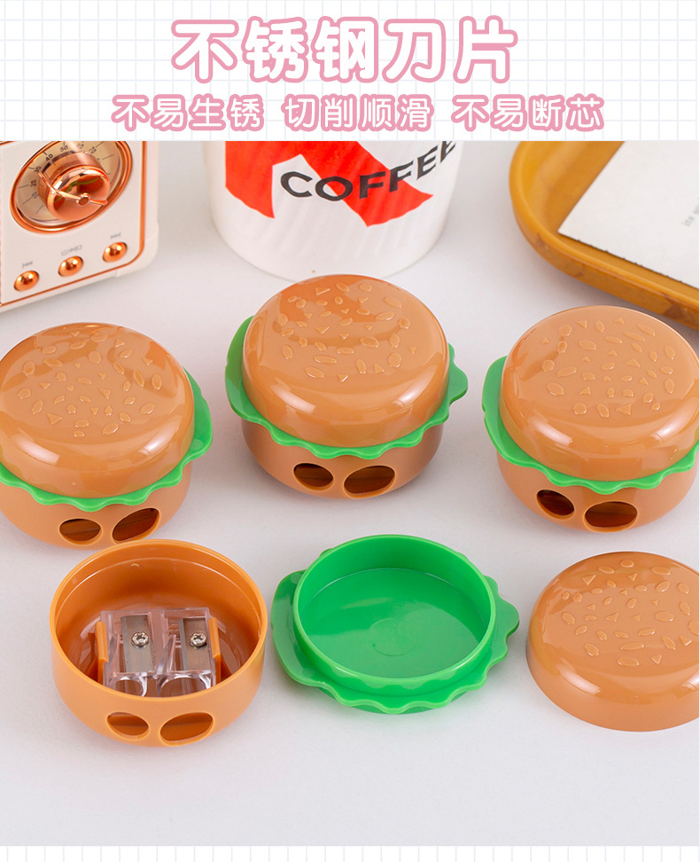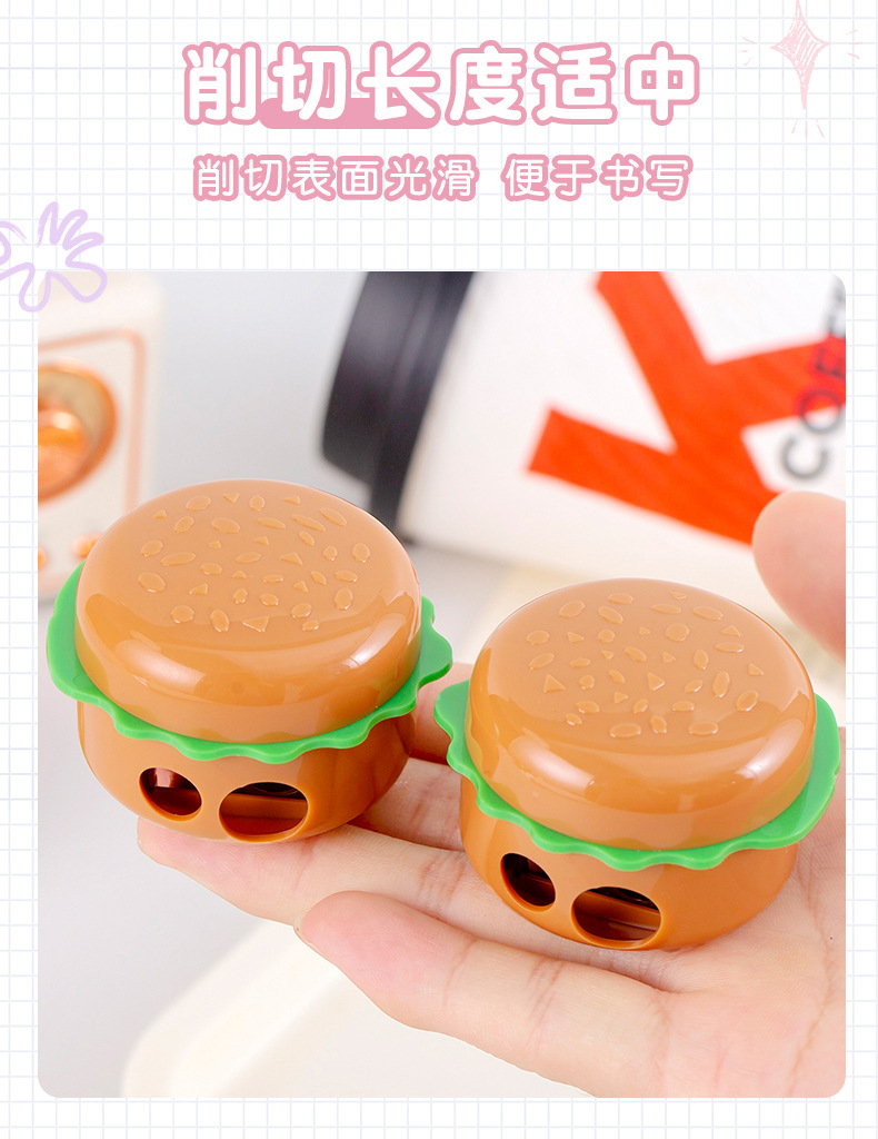 跨境创意汉堡造型双孔卷笔刀学生奖品文具奖励六一期末圣诞礼品