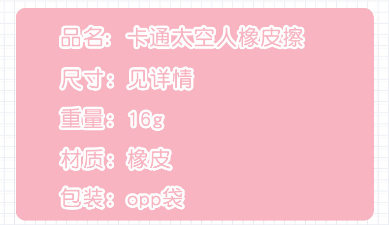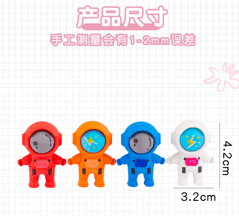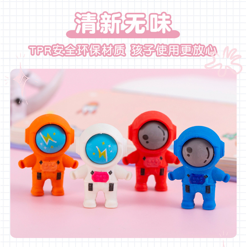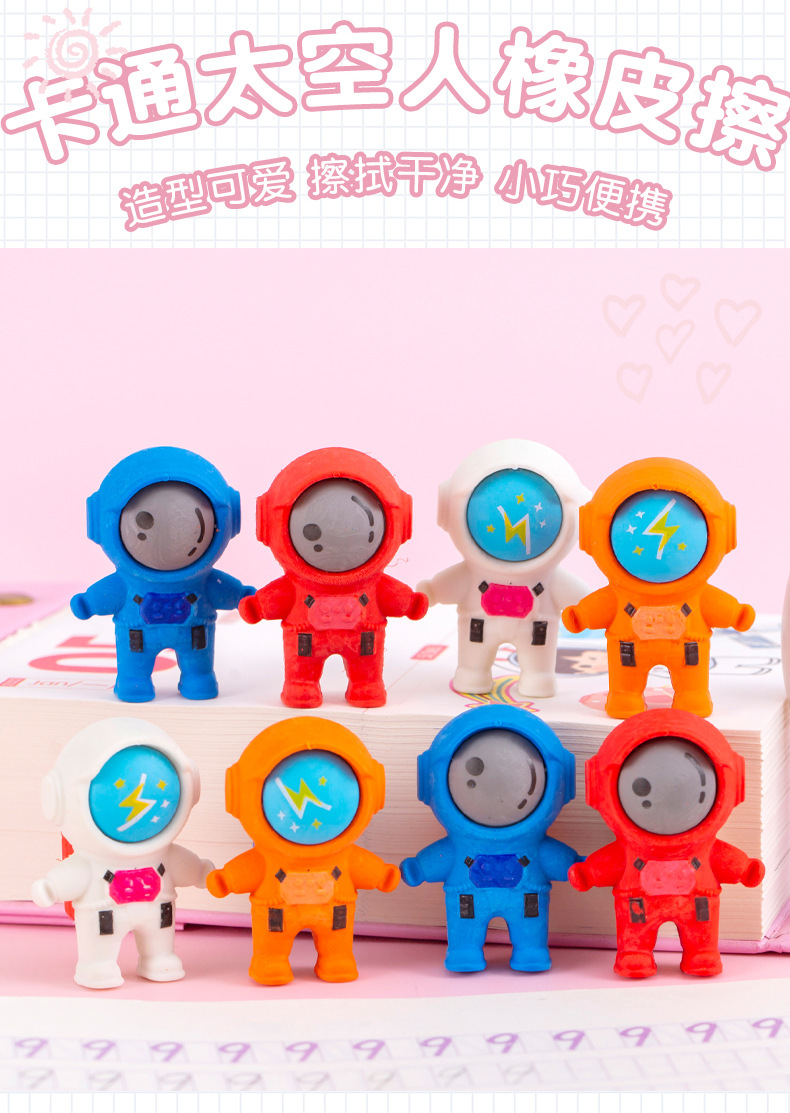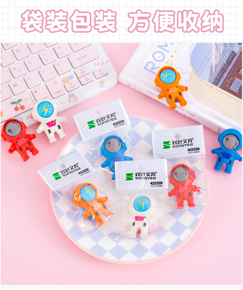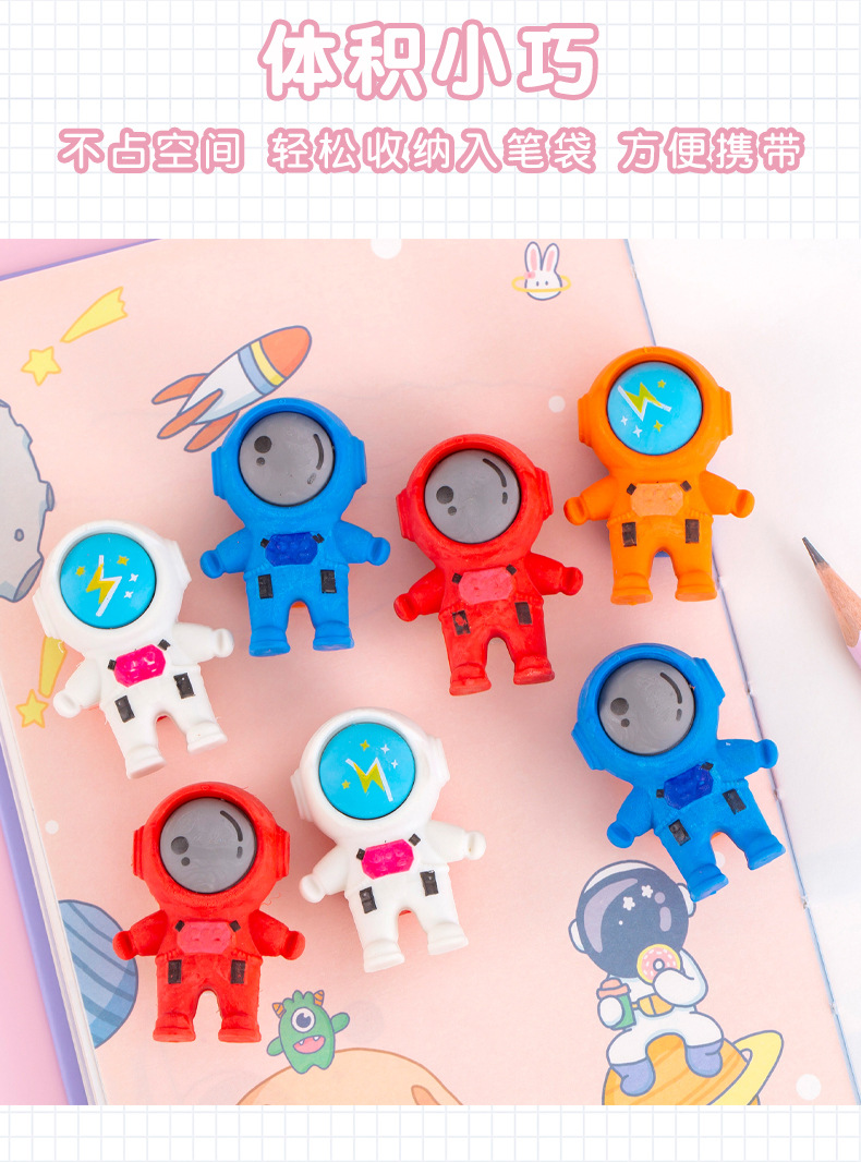 跨境卡通立体可爱宇航员造型橡皮擦学生文具期末圣诞奖品礼品礼物