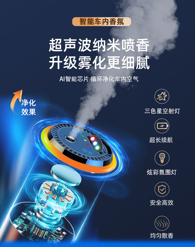 智能车载香薰机三色星空灯喷雾香薰车内氛围灯汽车香水香氛喷香机