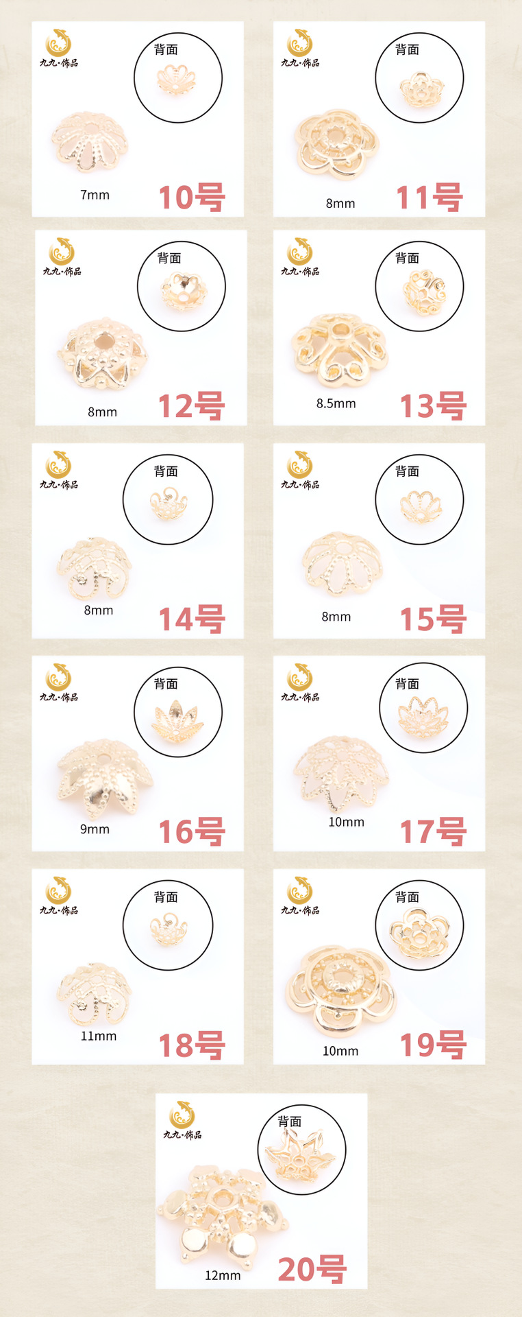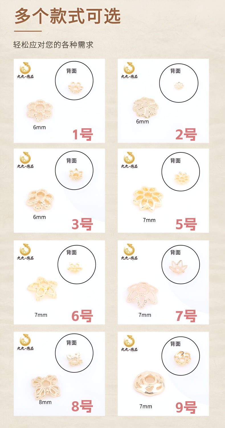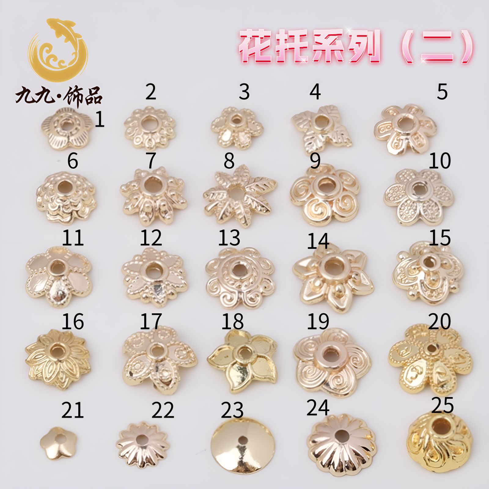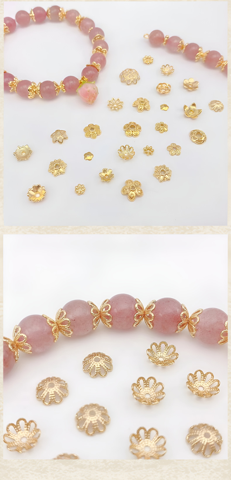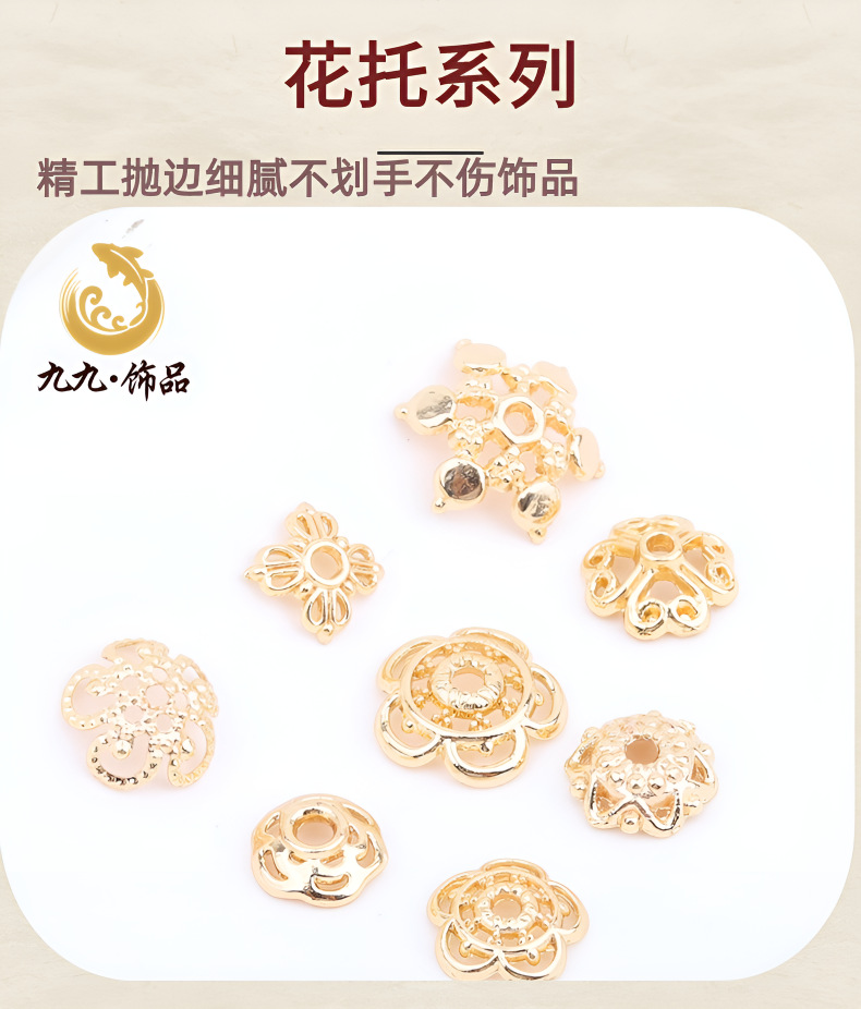 18k金花托隔片手串diy配件高保色花帽珠托串珠手链配饰隔珠片材料