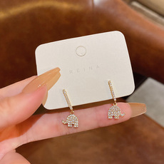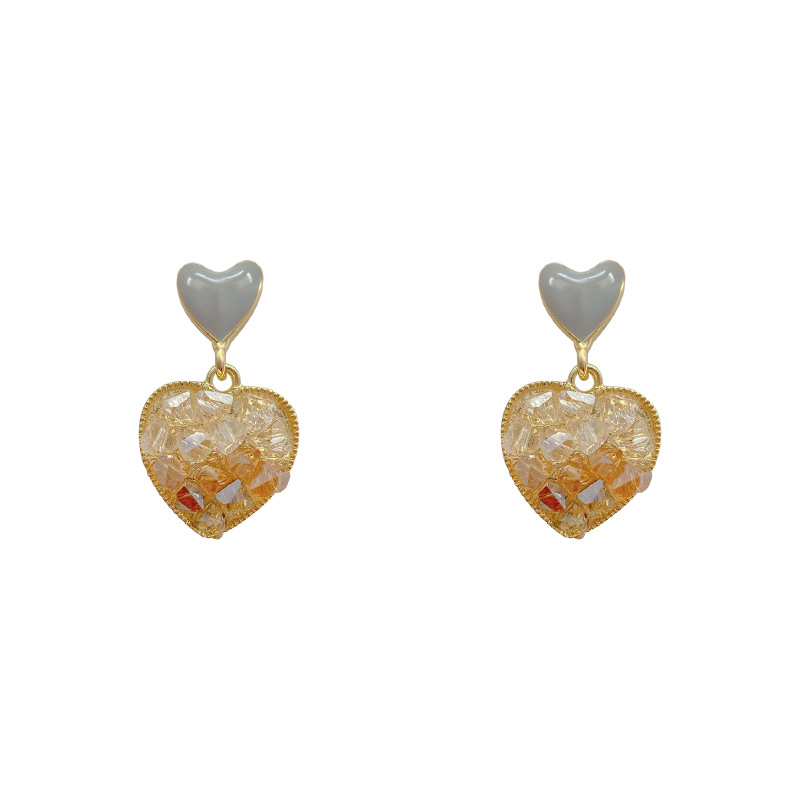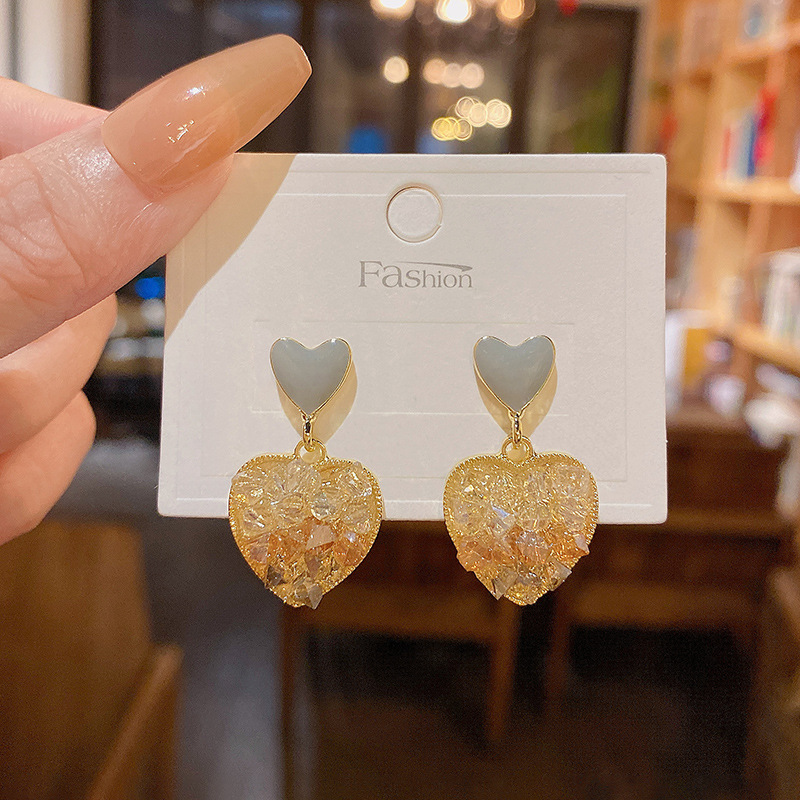 S925银针水晶渐变色爱心耳环轻奢小众高级设计感网红同款耳钉耳饰