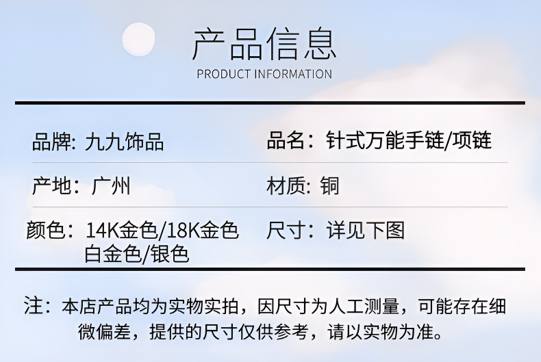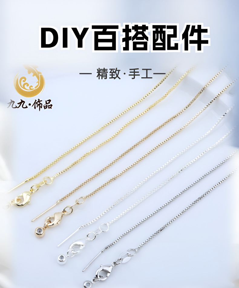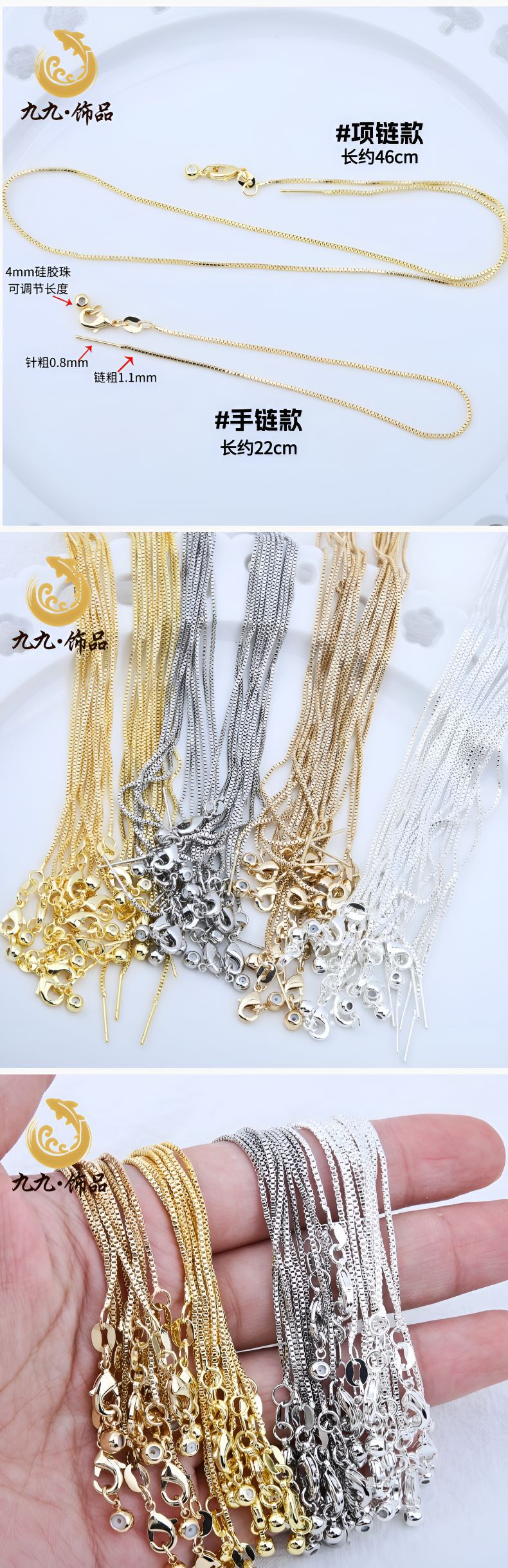 18K包金保色针式盒仔链万能链可调节手链项链diy手工链条配件材料
