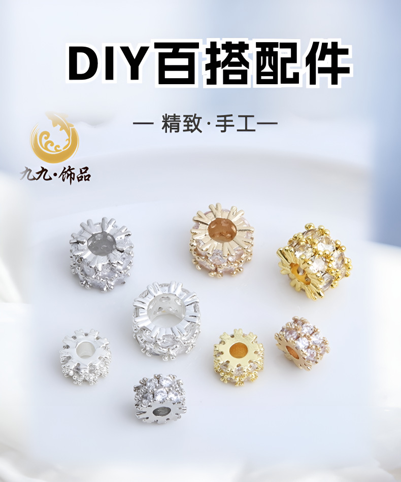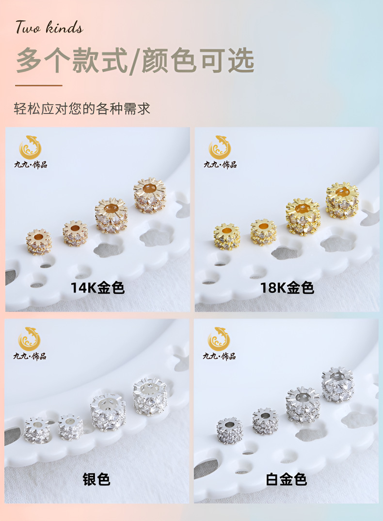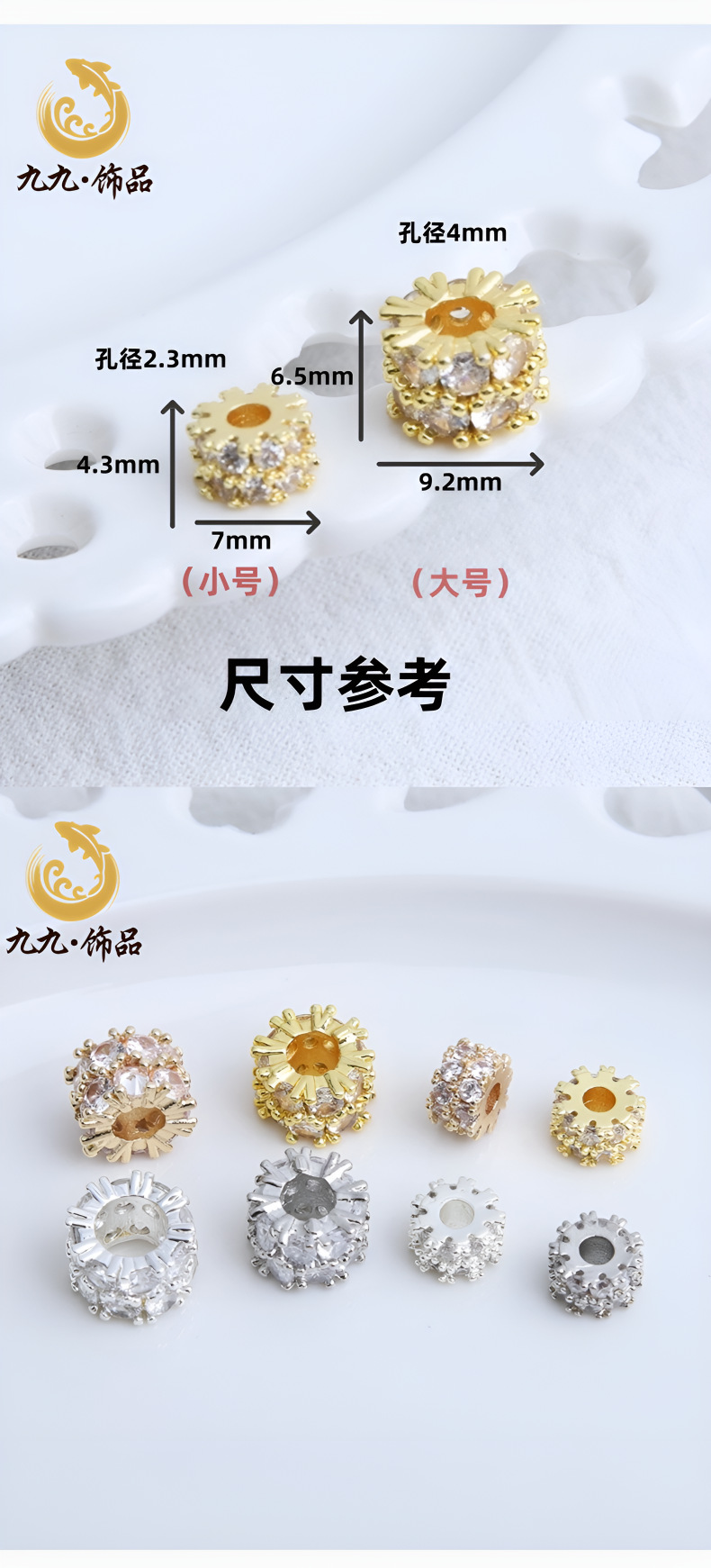 保色14K金色微镶锆石大孔双层雪花桶珠手工diy手链项链装饰配件