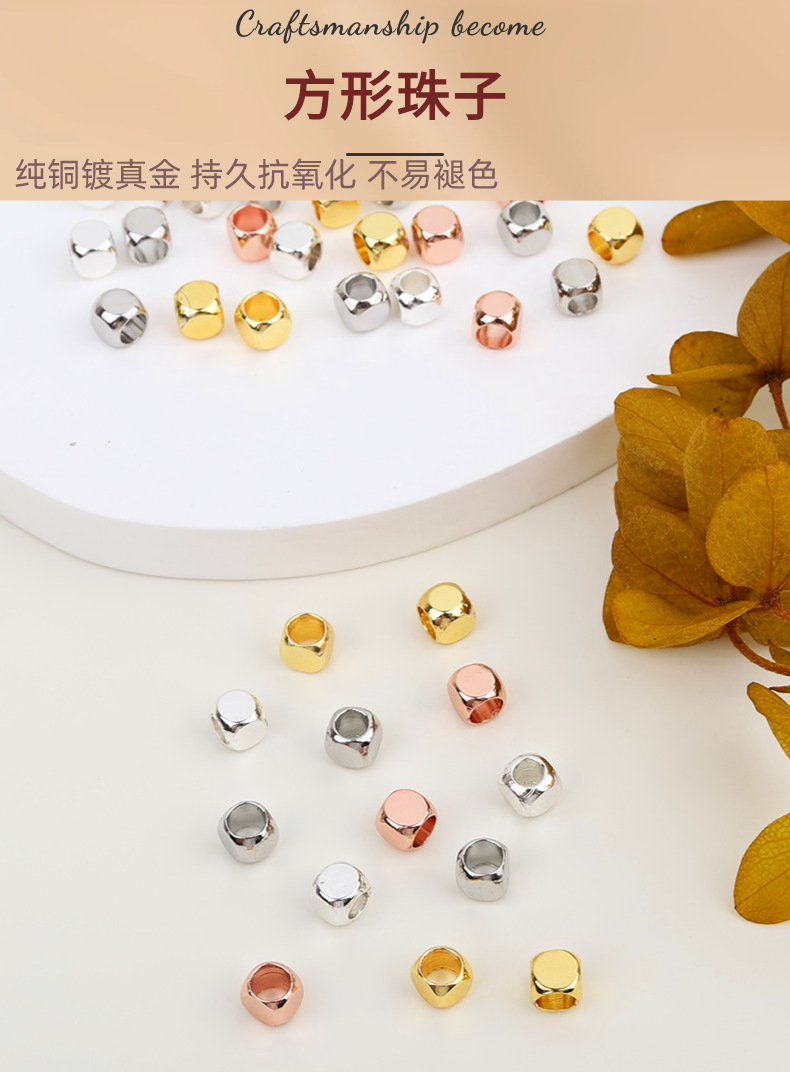 保色18k包金方形大孔散珠diy手链项链串珠材料隔珠配件热卖配饰