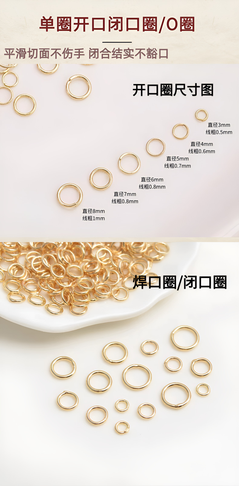18K包金保色开口圈环diy项链手链连接圈接口圈闭口圈手工饰品配件
