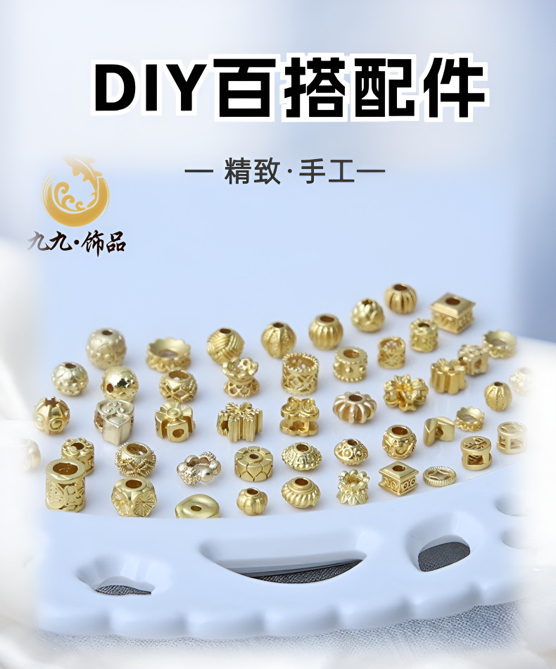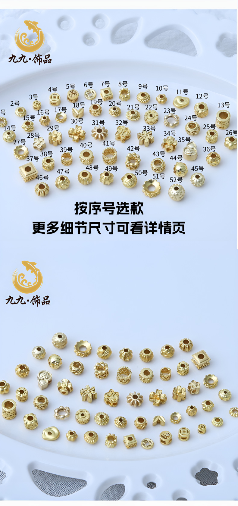 高保色古法金隔珠铜钱葫芦福字diy手工国风立体镂空串珠材料配件