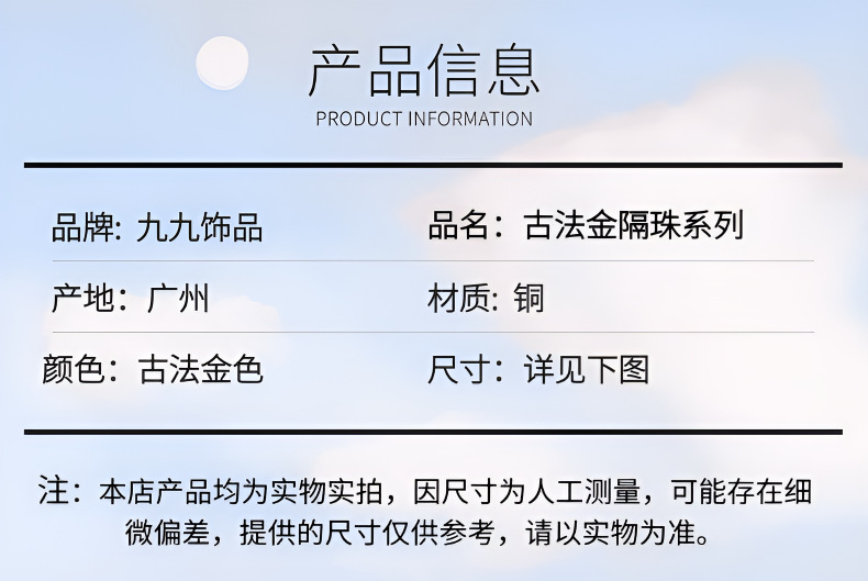 | color-preserving ancient gold spacer beads 301as(保色古法金隔珠301AS) | USD $0.16 | 99944 piece available |