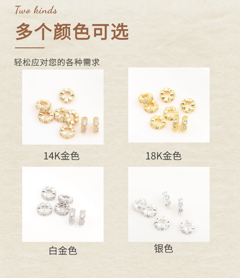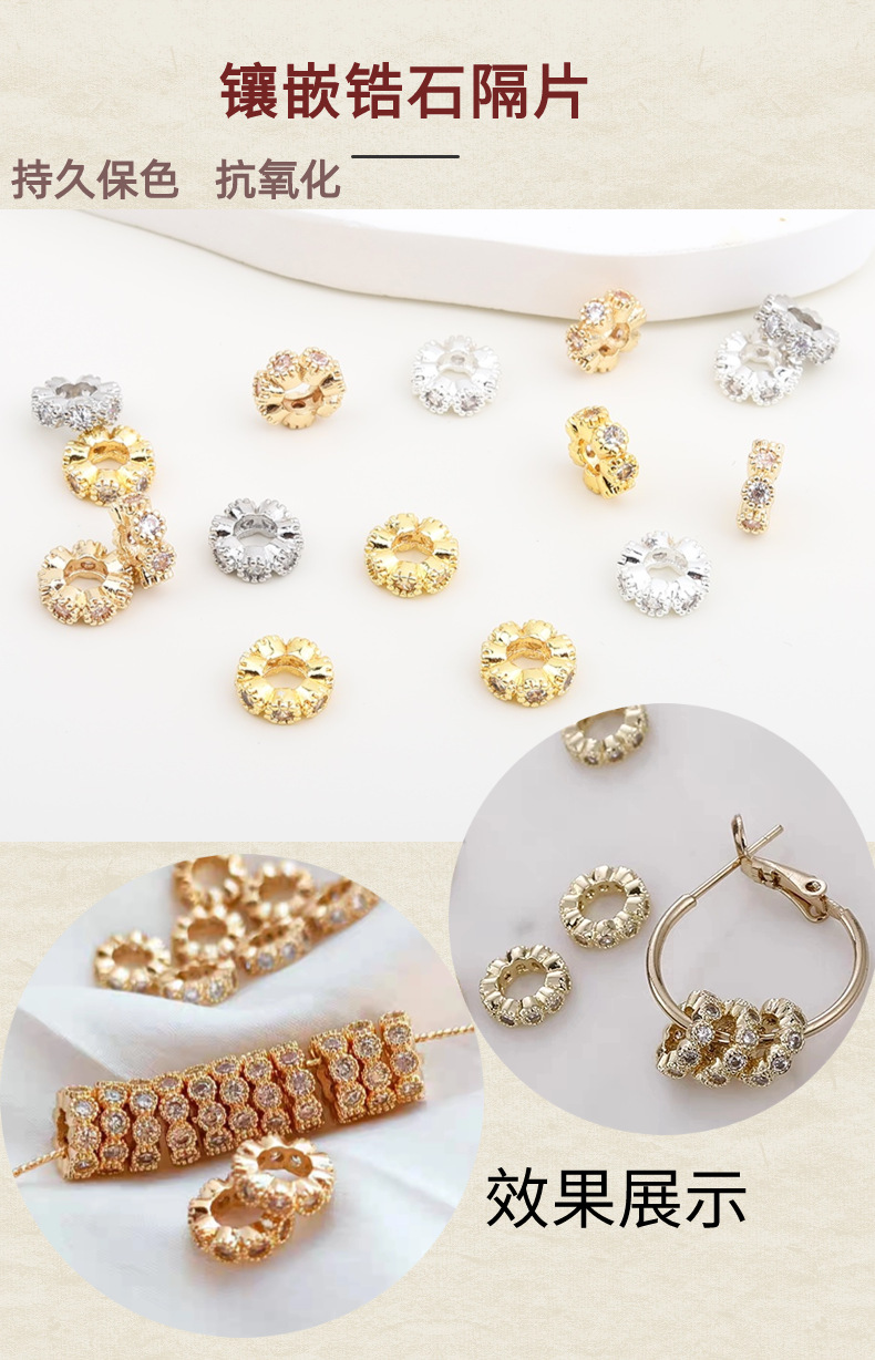 14K包金保色微镶锆石 大孔钻圈隔珠饰品配饰 手工diy手链挂圈吊坠