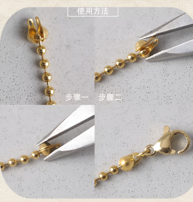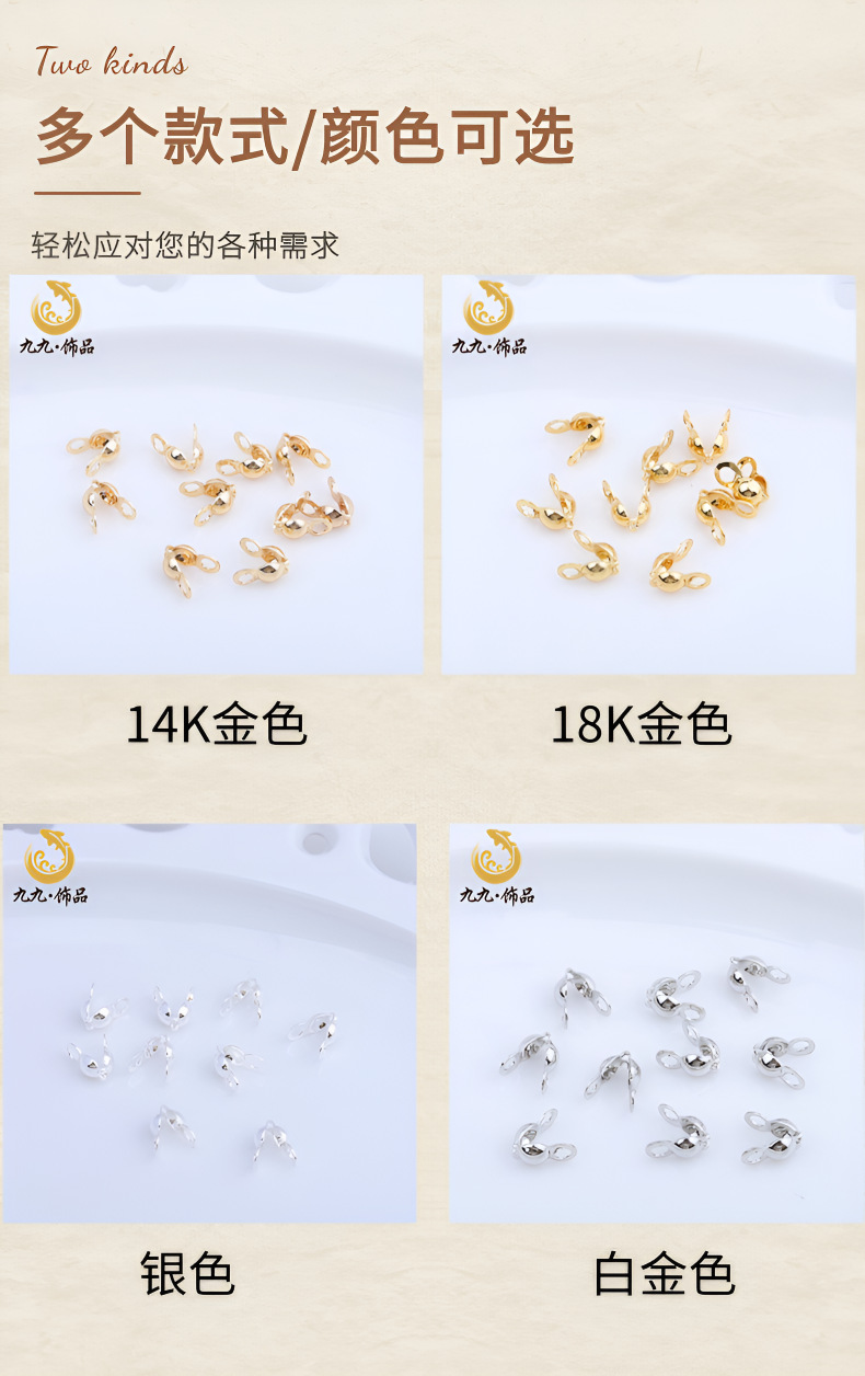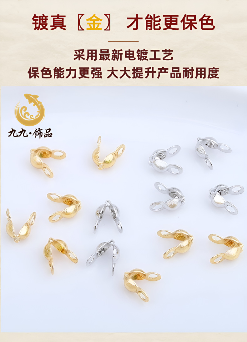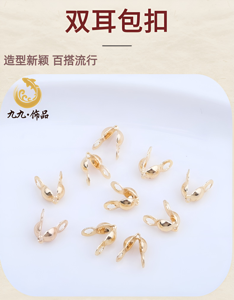 18K包金保色包扣豆仔扣双耳双边扣收尾连线扣diy手链珍珠项链配件