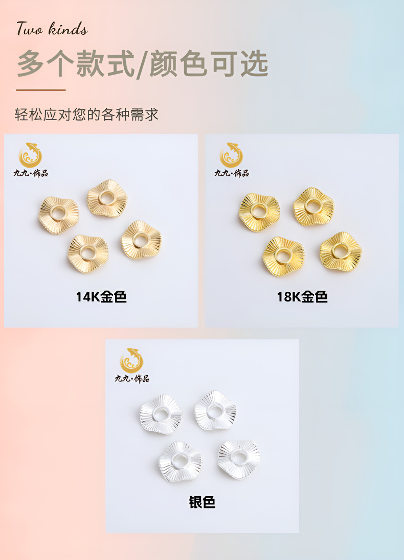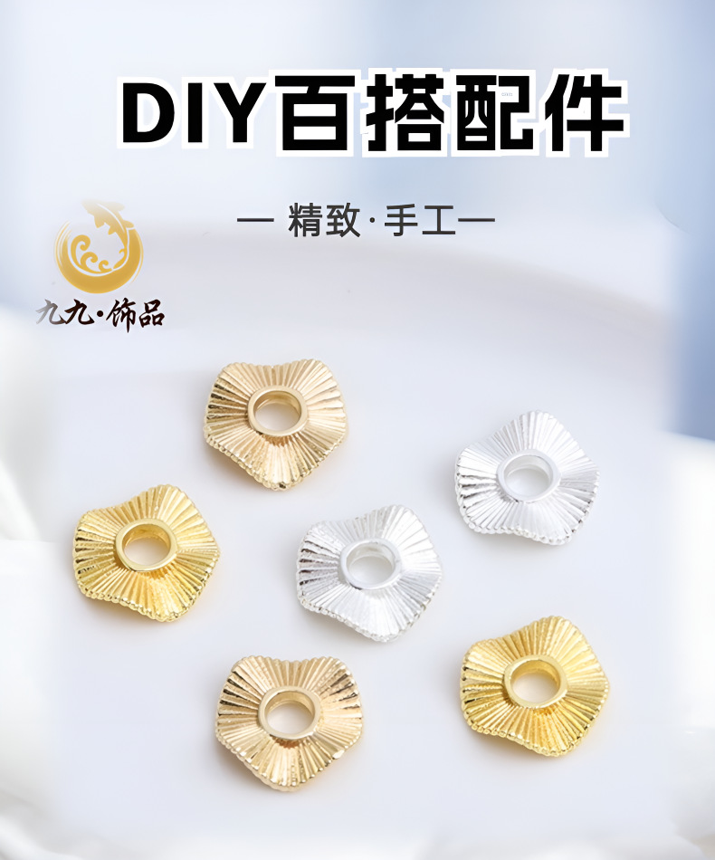 保色14K金色波浪花条纹隔片隔珠花边装饰配件diy手链串珠饰品配件