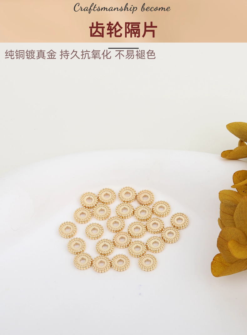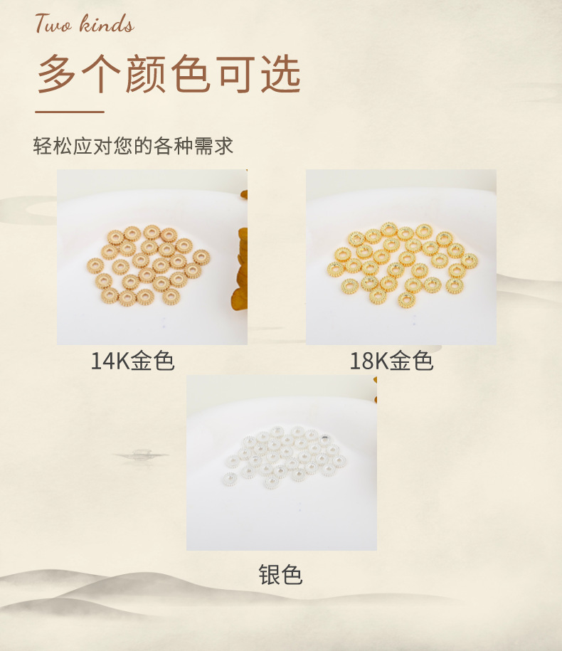 14k包金保色麻花缠绕齿轮隔片小金珠 diy饰品配件项链手链材料