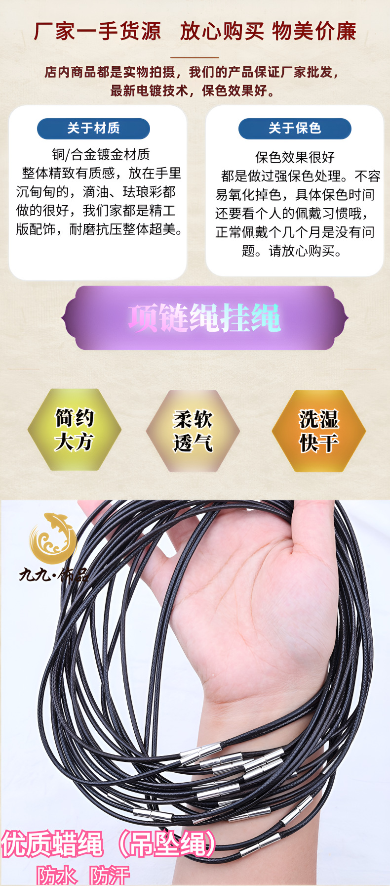 黑色项链绳蜡绳吊坠绳挂绳蜡皮绳玉牌黄金翡翠男女款diy挂件绳子