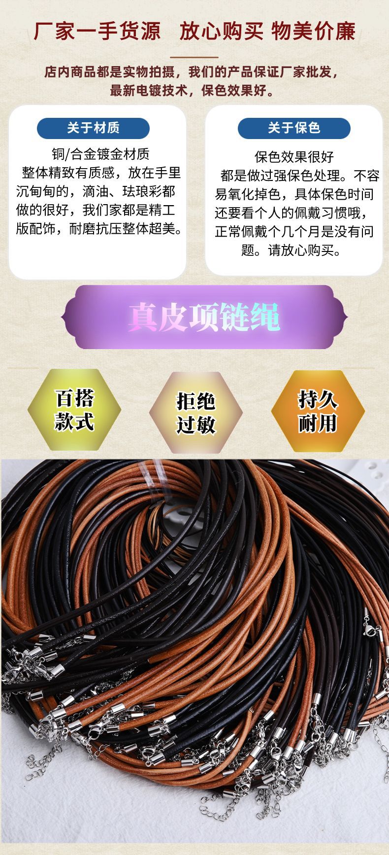 跨境时尚潮流防过敏真牛皮项链绳玉器水晶挂绳diy男女款挂件绳