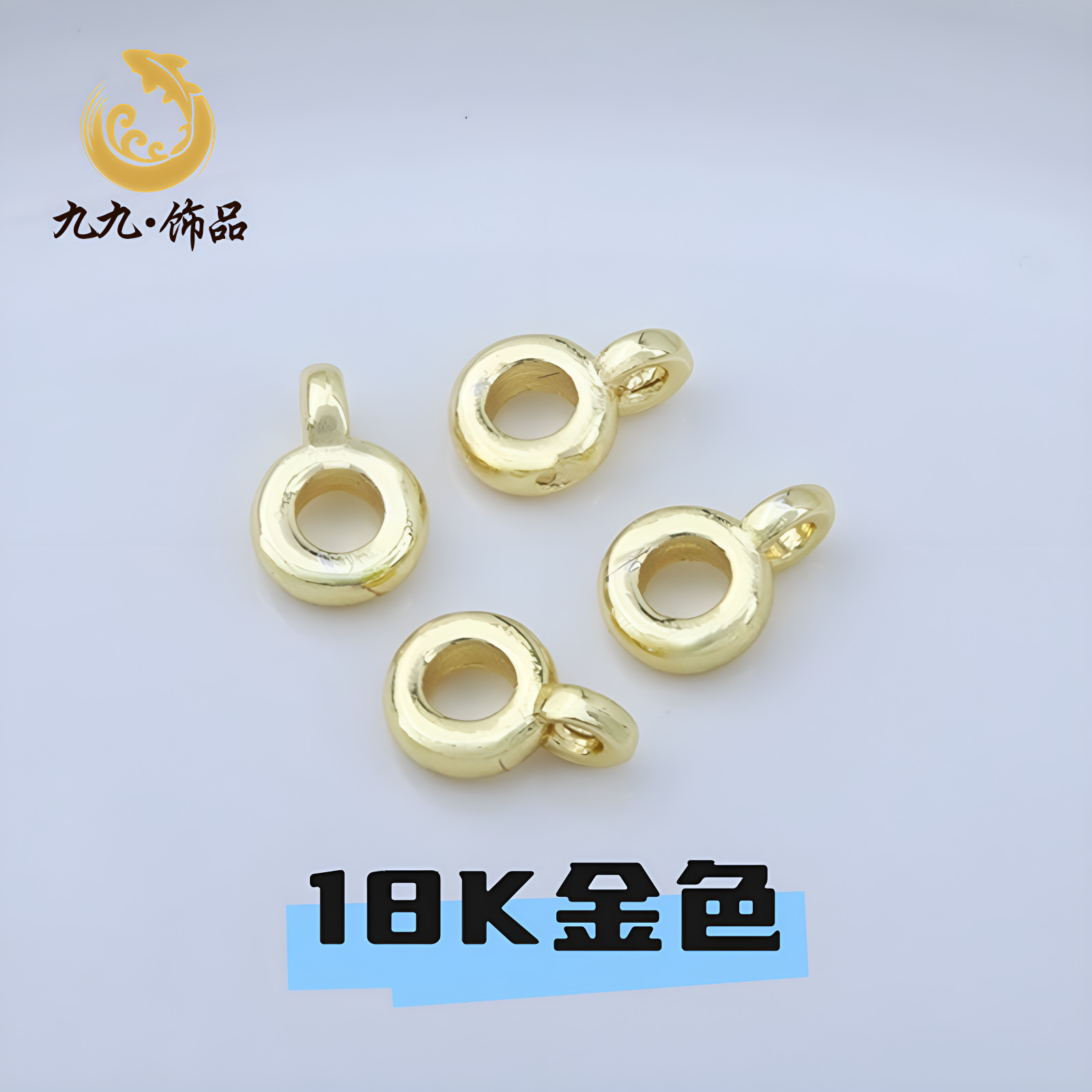 高保色18K包金圆形吊坠环diy珍珠手链项链隔圈带吊环饰品配件材料
