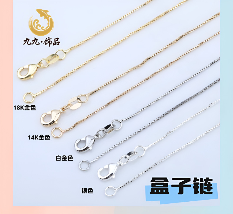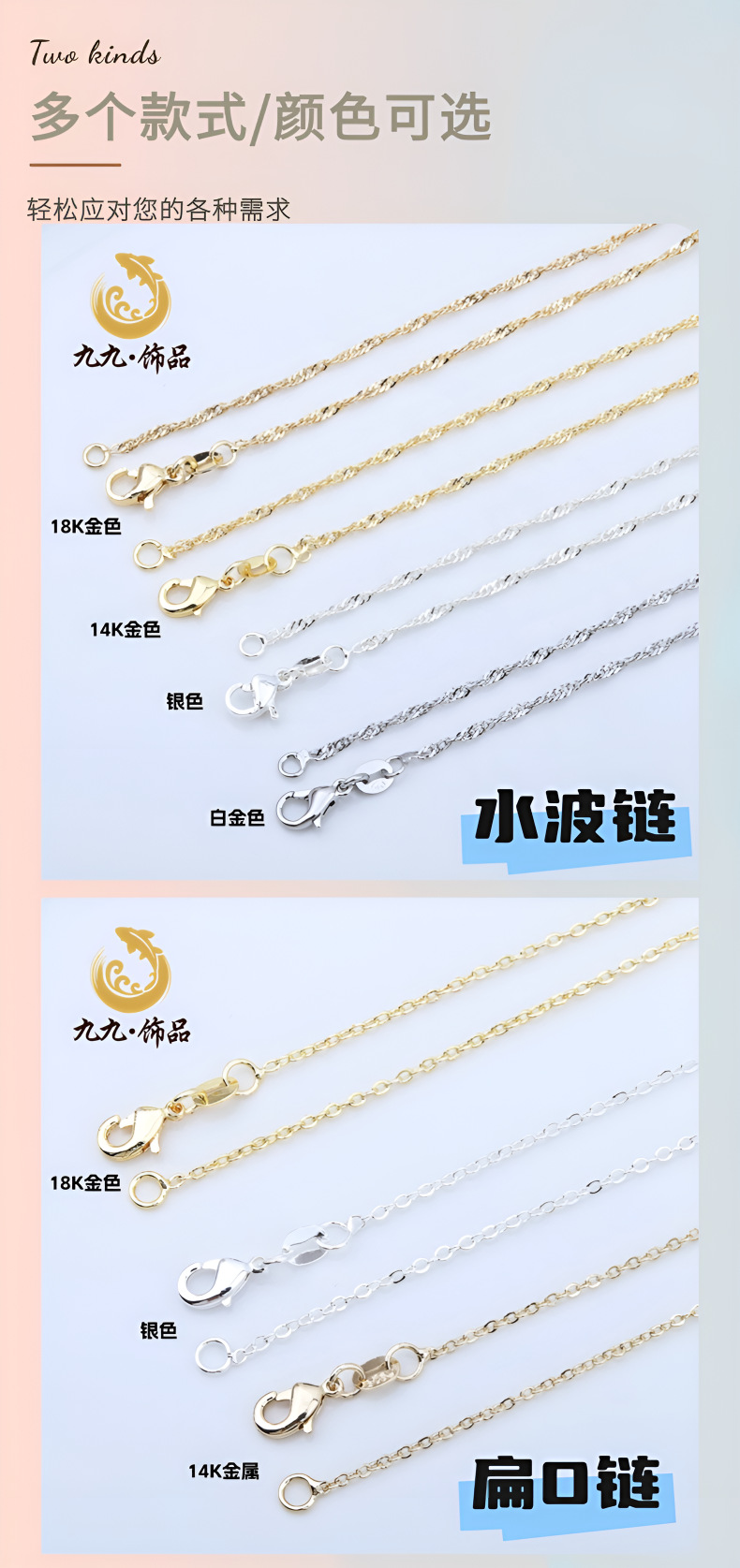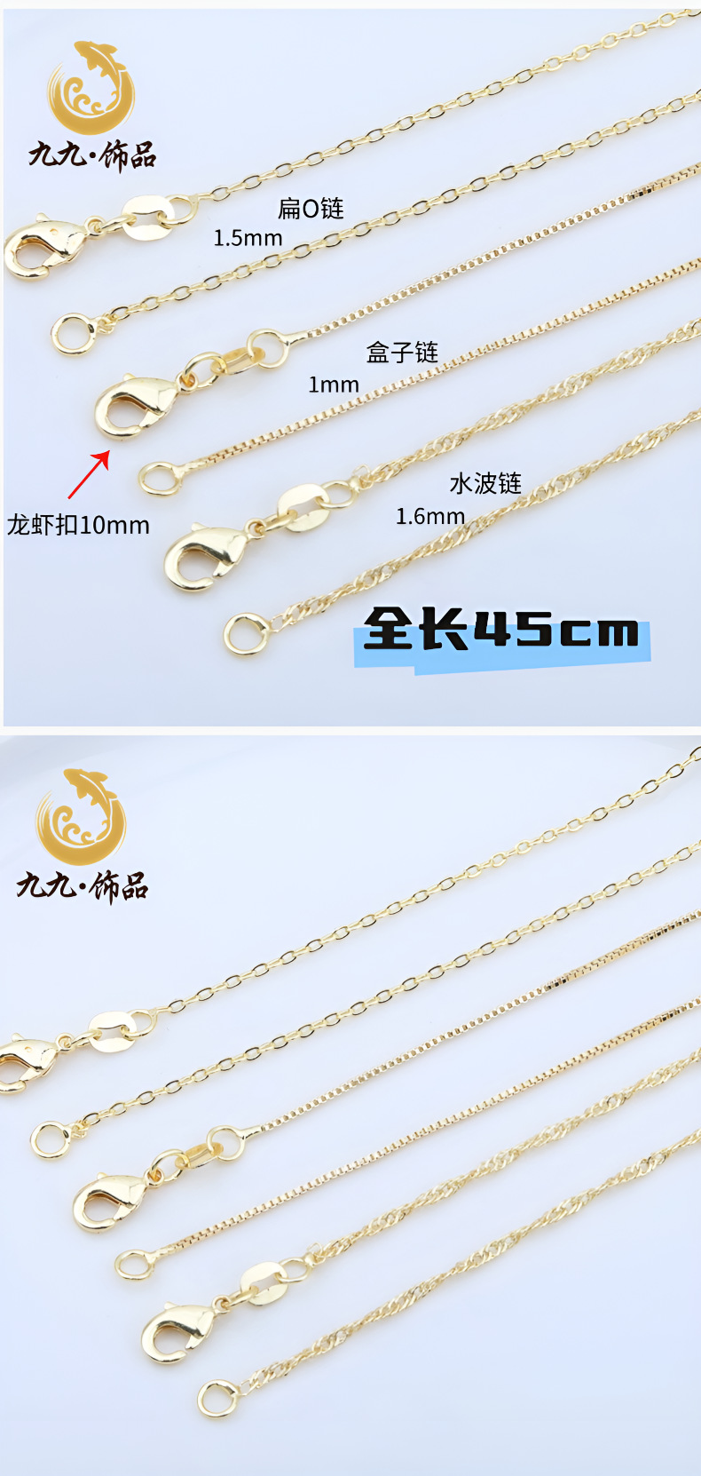 18K包金高保色O字链水波链盒链扁O链diy手工项链饰品配件链条批发