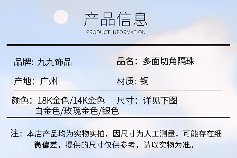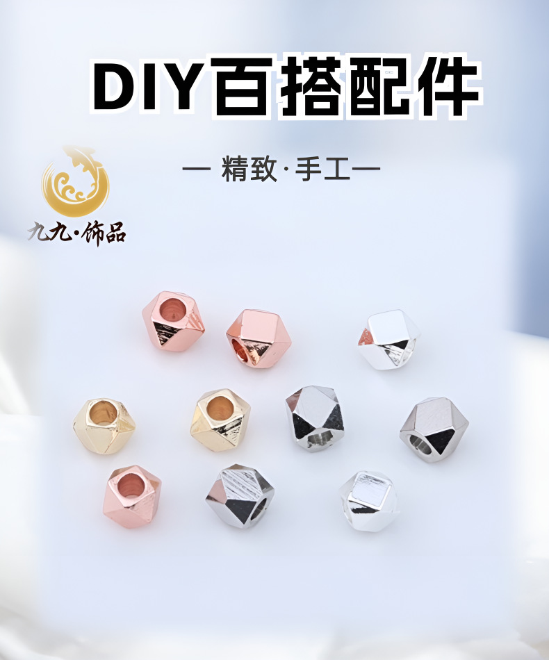 14K金色保色菱形切角珠多边形切面散珠diy手工串珠饰品配件材料