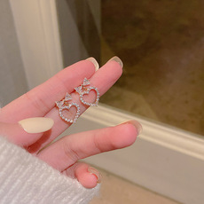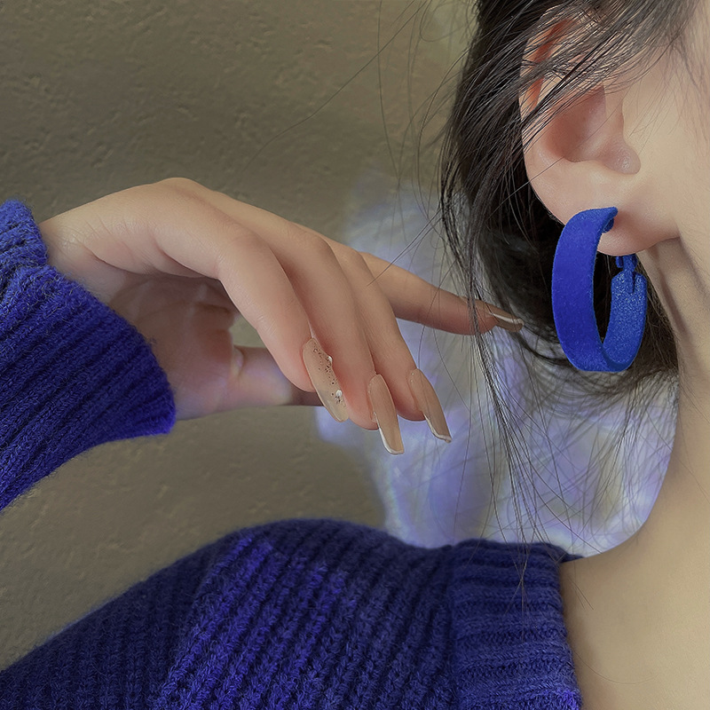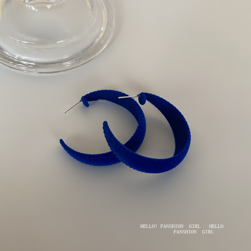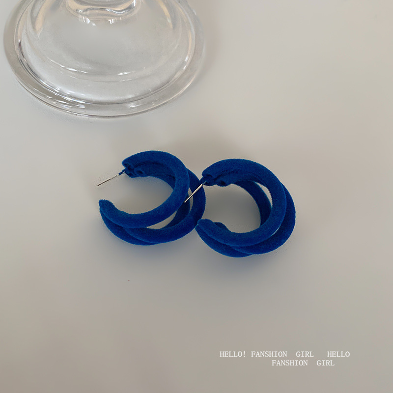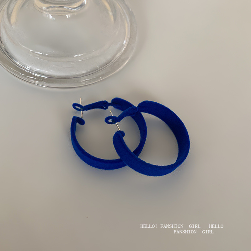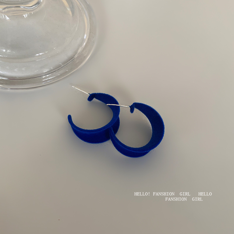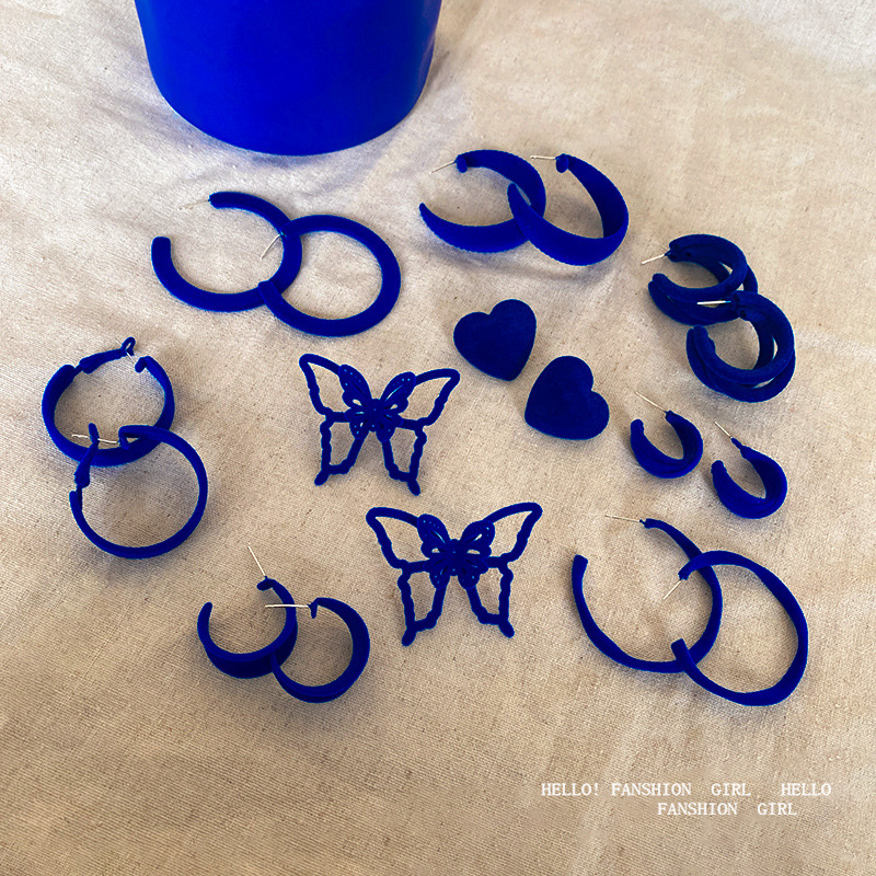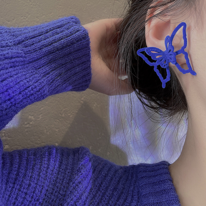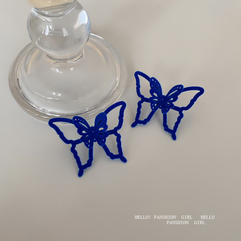 925银针克莱因蓝植绒耳环小众气质蝴蝶耳钉ins潮抖音网红同款耳饰
