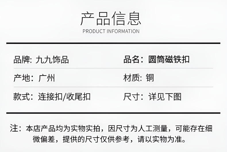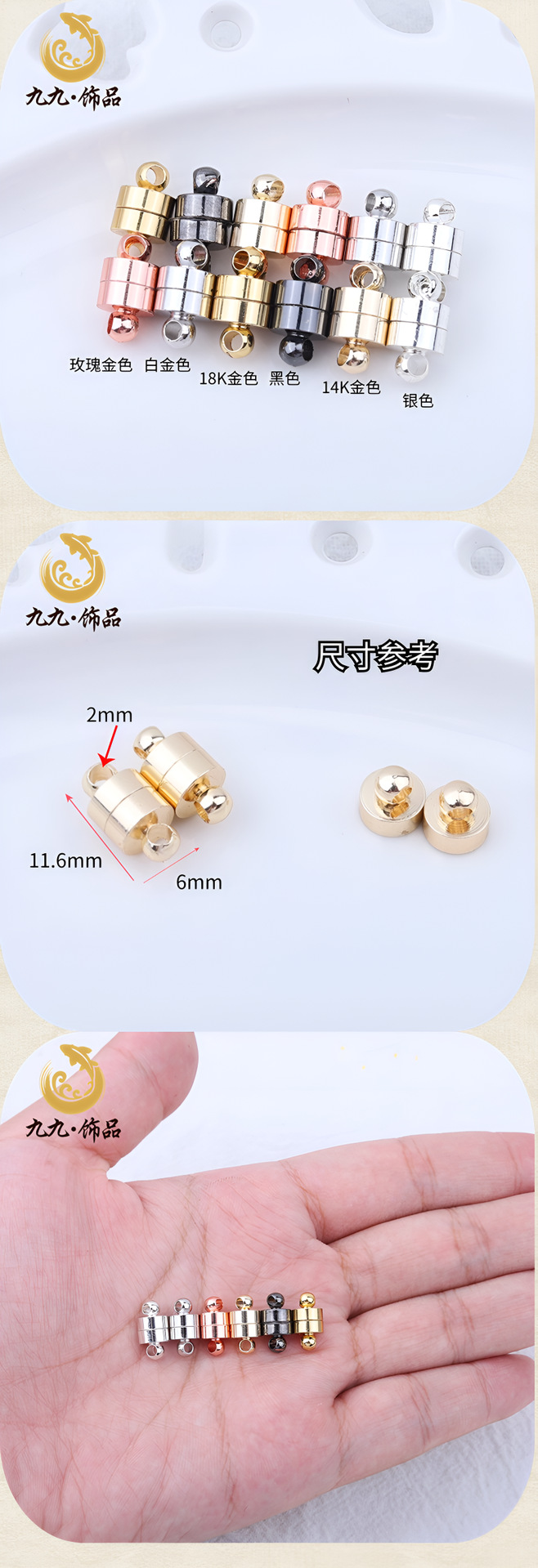 18K保色圆柱磁铁扣强力磁性扣子diy手链项链收尾扣链条扣配件材料