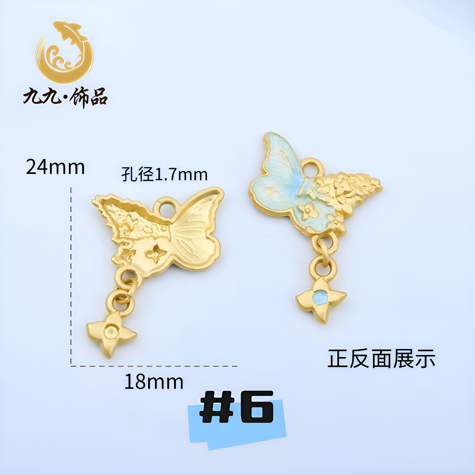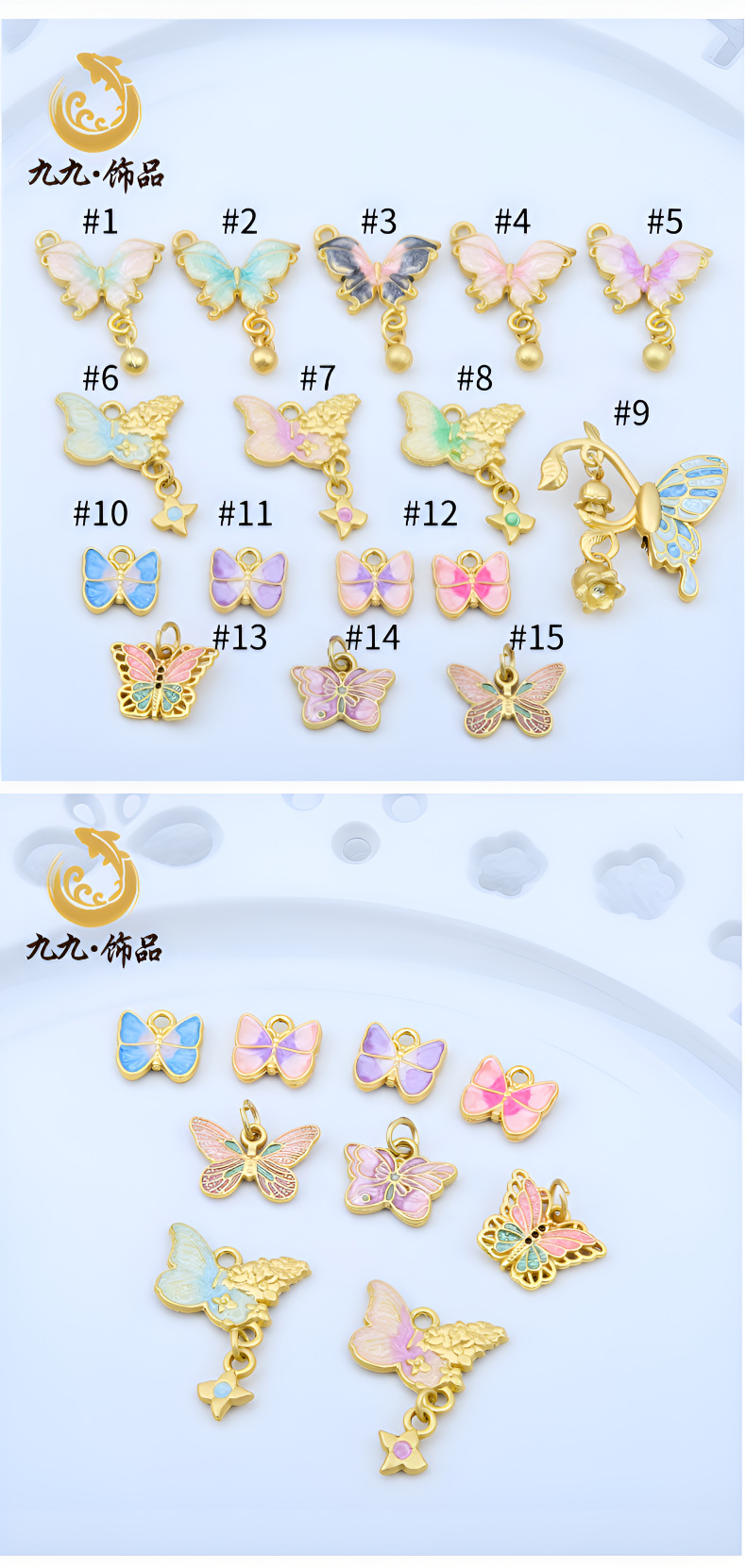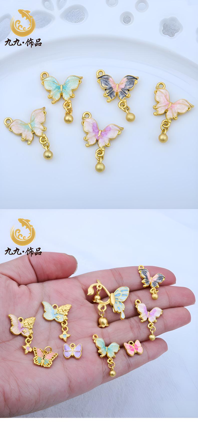高保色古法金梦幻蝴蝶带滴溜挂件diy手工制作材料项链饰品配件