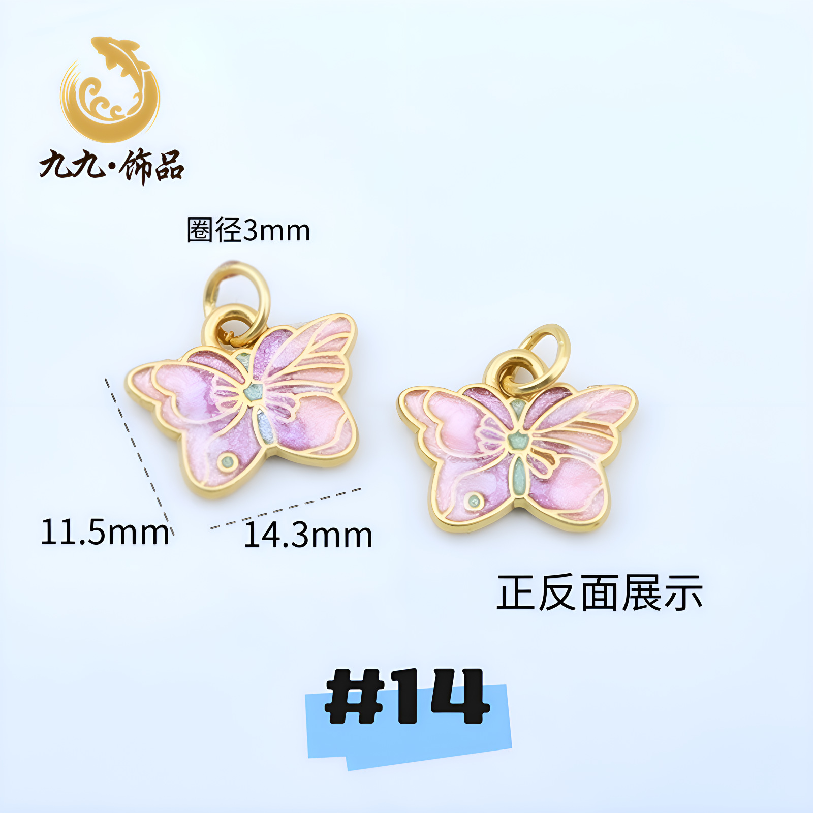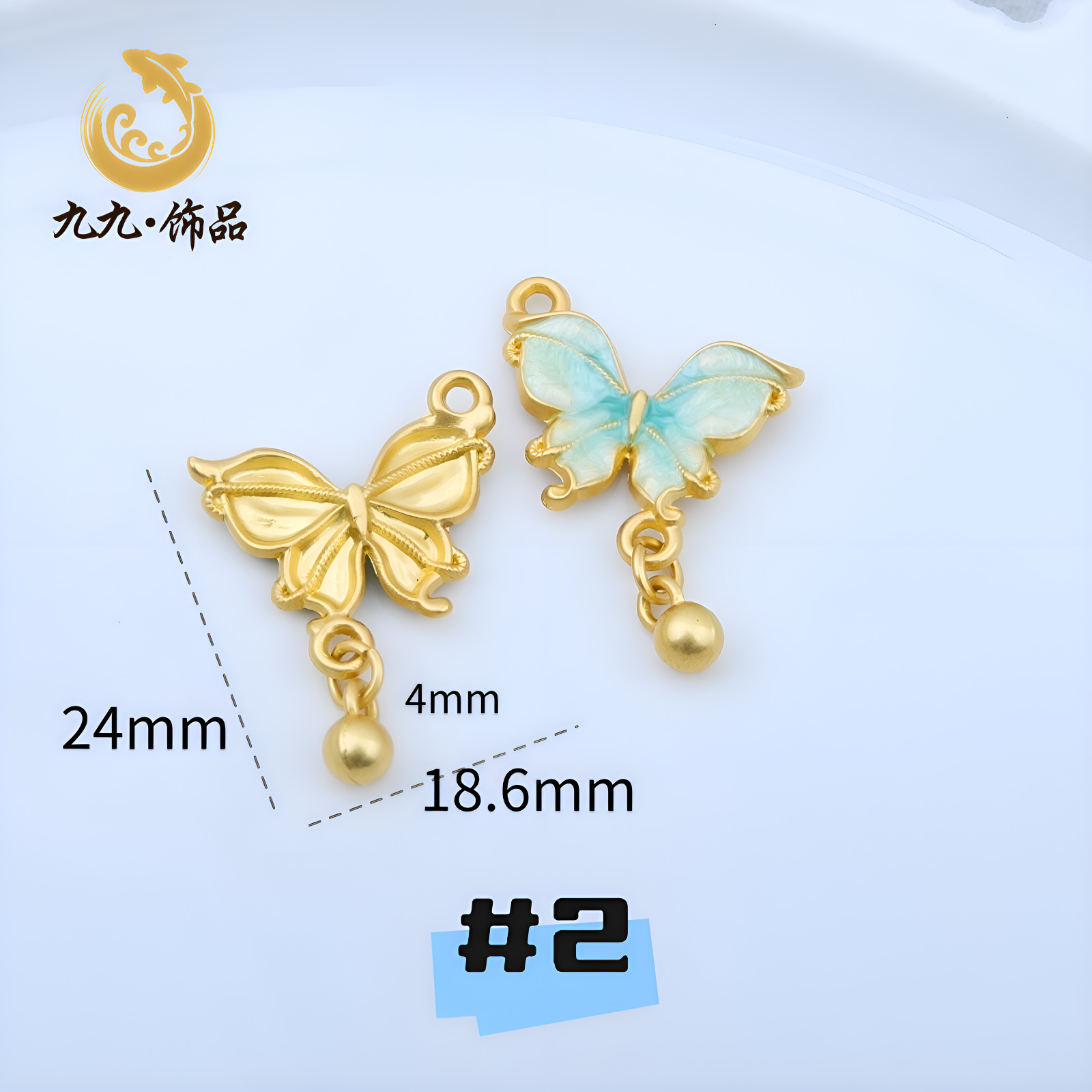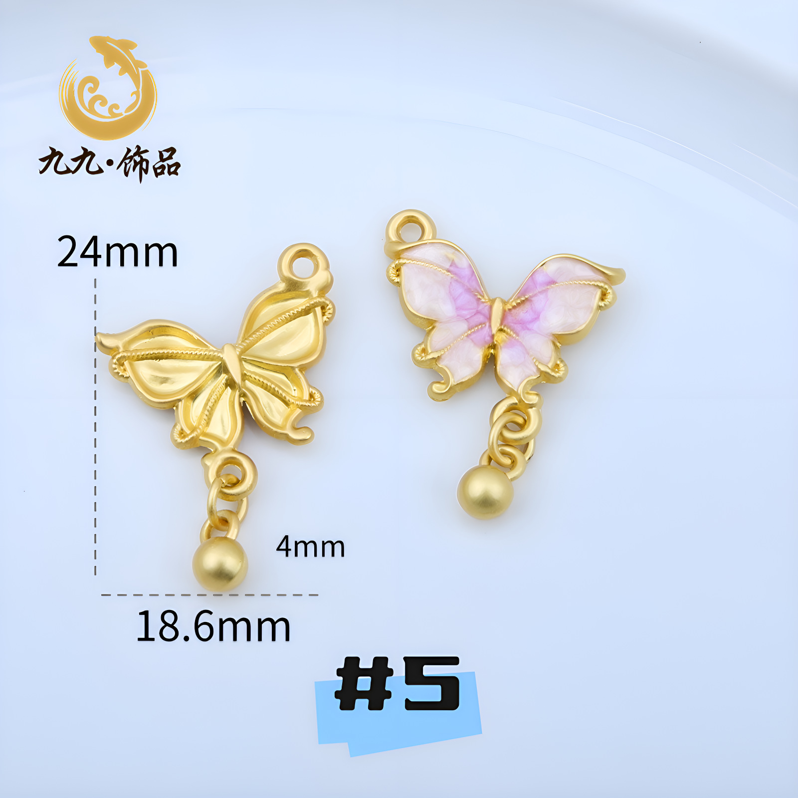 高保色古法金梦幻蝴蝶带滴溜挂件diy手工制作材料项链饰品配件