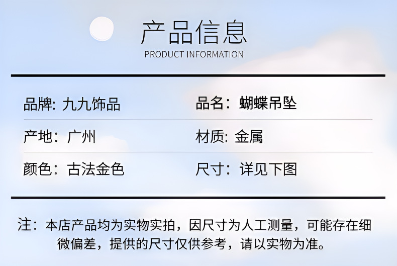 | 370LX蝴蝶吊坠 | USD $0.34 | 99950 piece available |