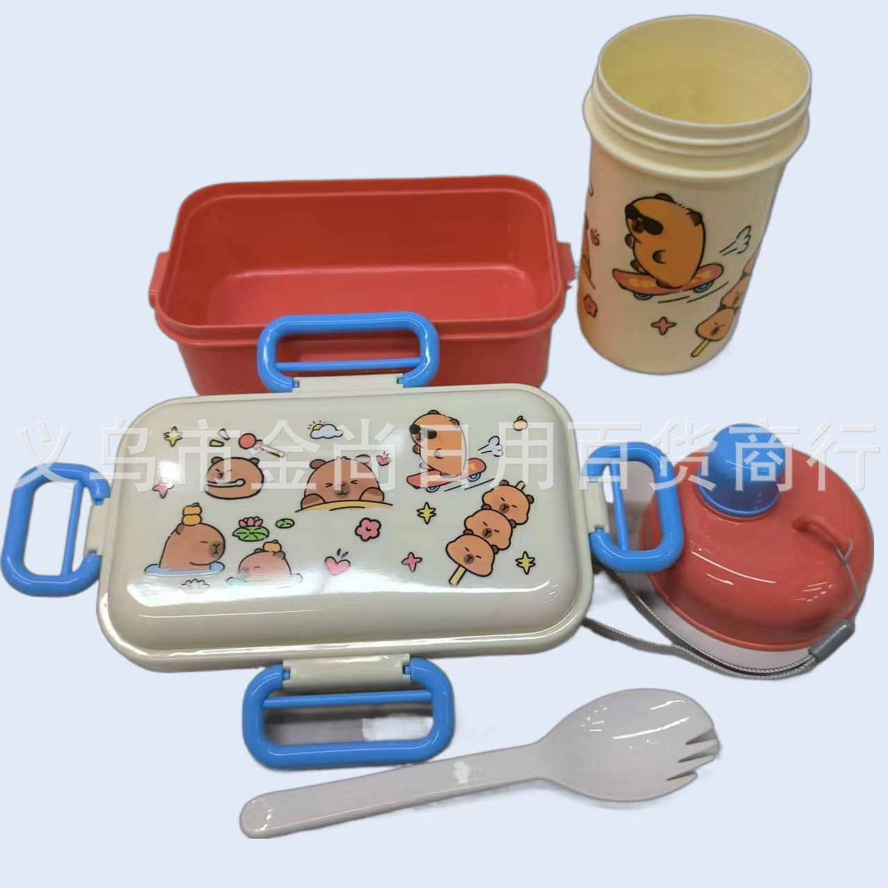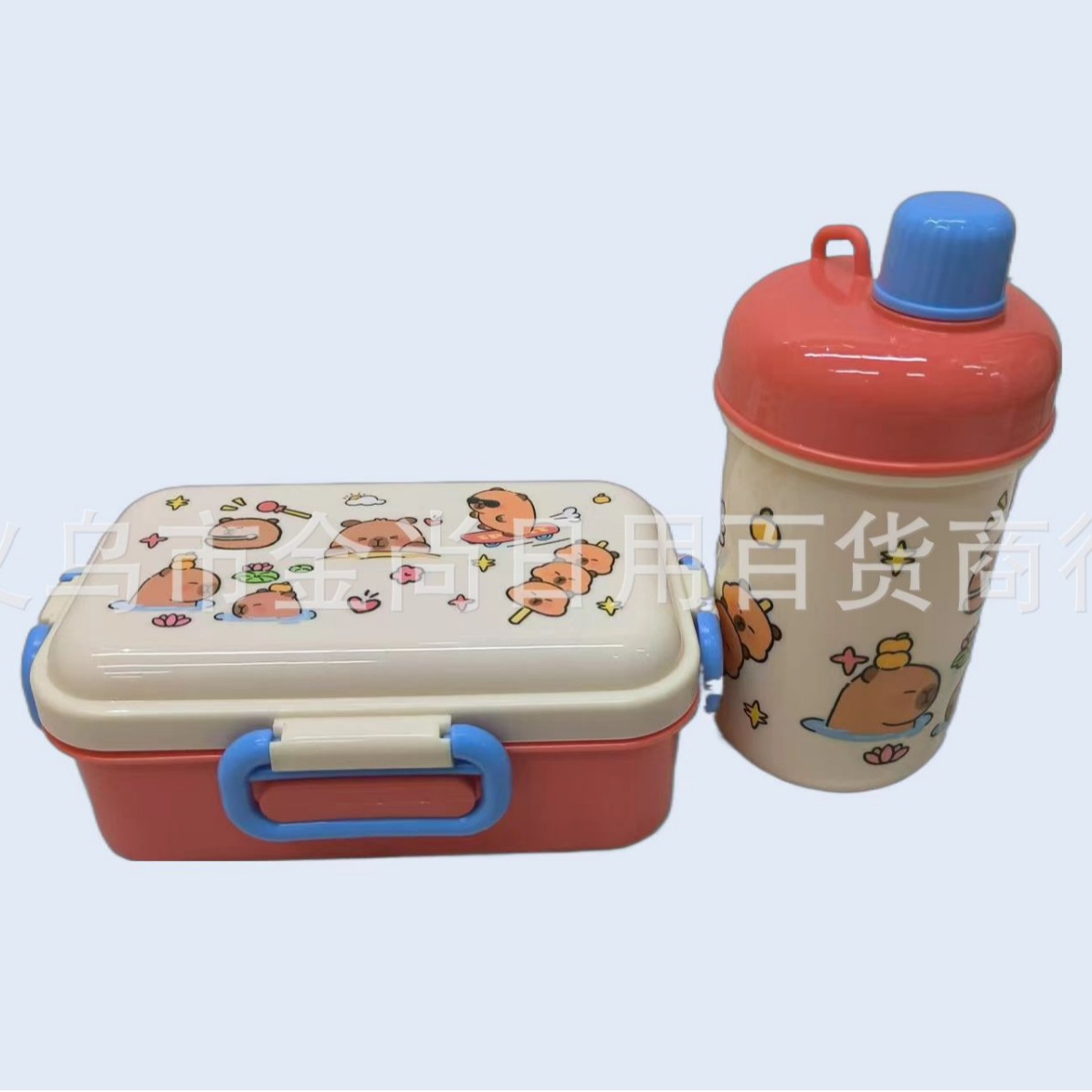 可爱水豚卡通卡皮巴拉饭盒水壶套装户外学校可带便当盒