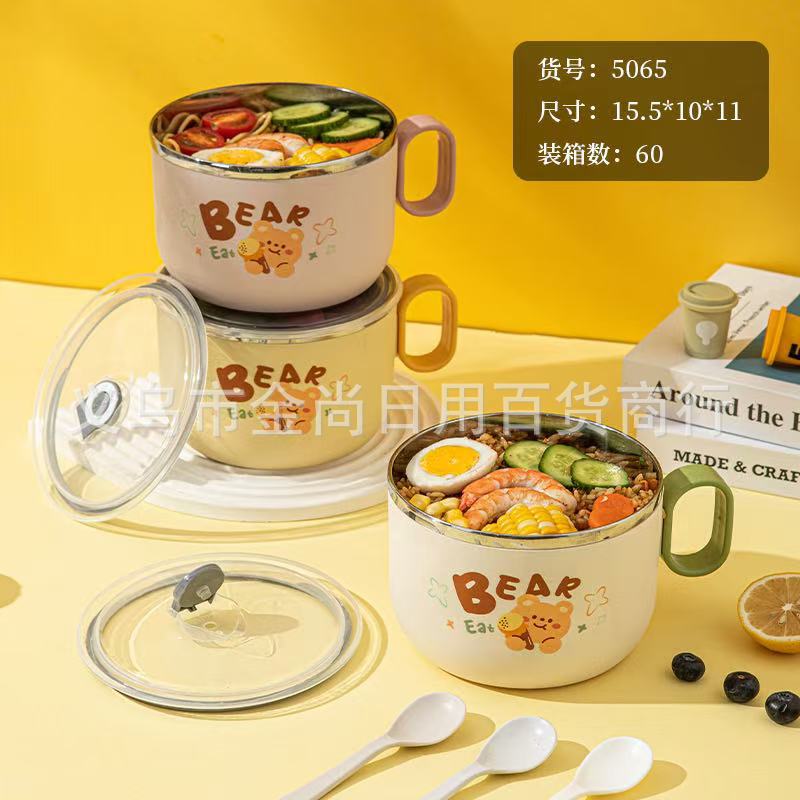 单层便携饭盒不锈钢泡面碗带盖双耳学生便当盒宿舍大号保温快餐杯