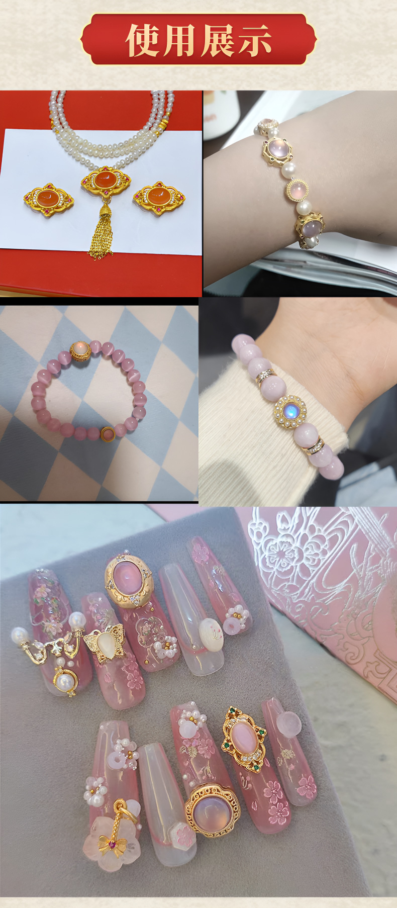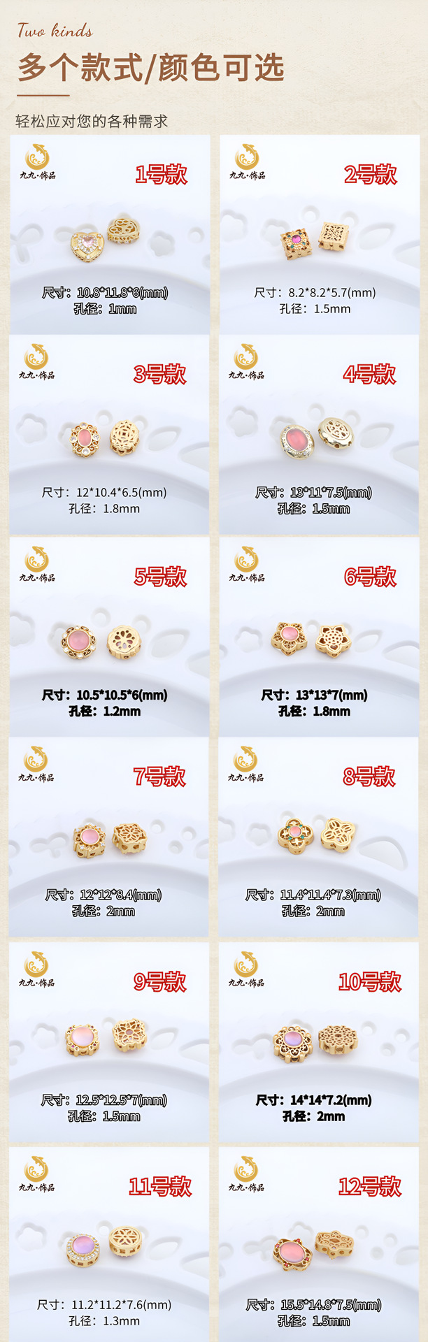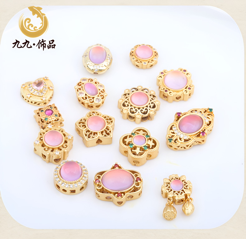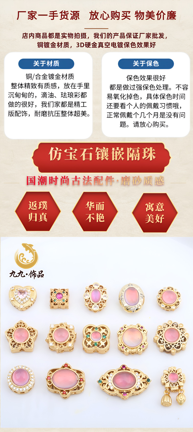 沙金圆珠镂空镶嵌仿粉玉髓四叶草梅花diy散珠隔珠手工饰品制作配
