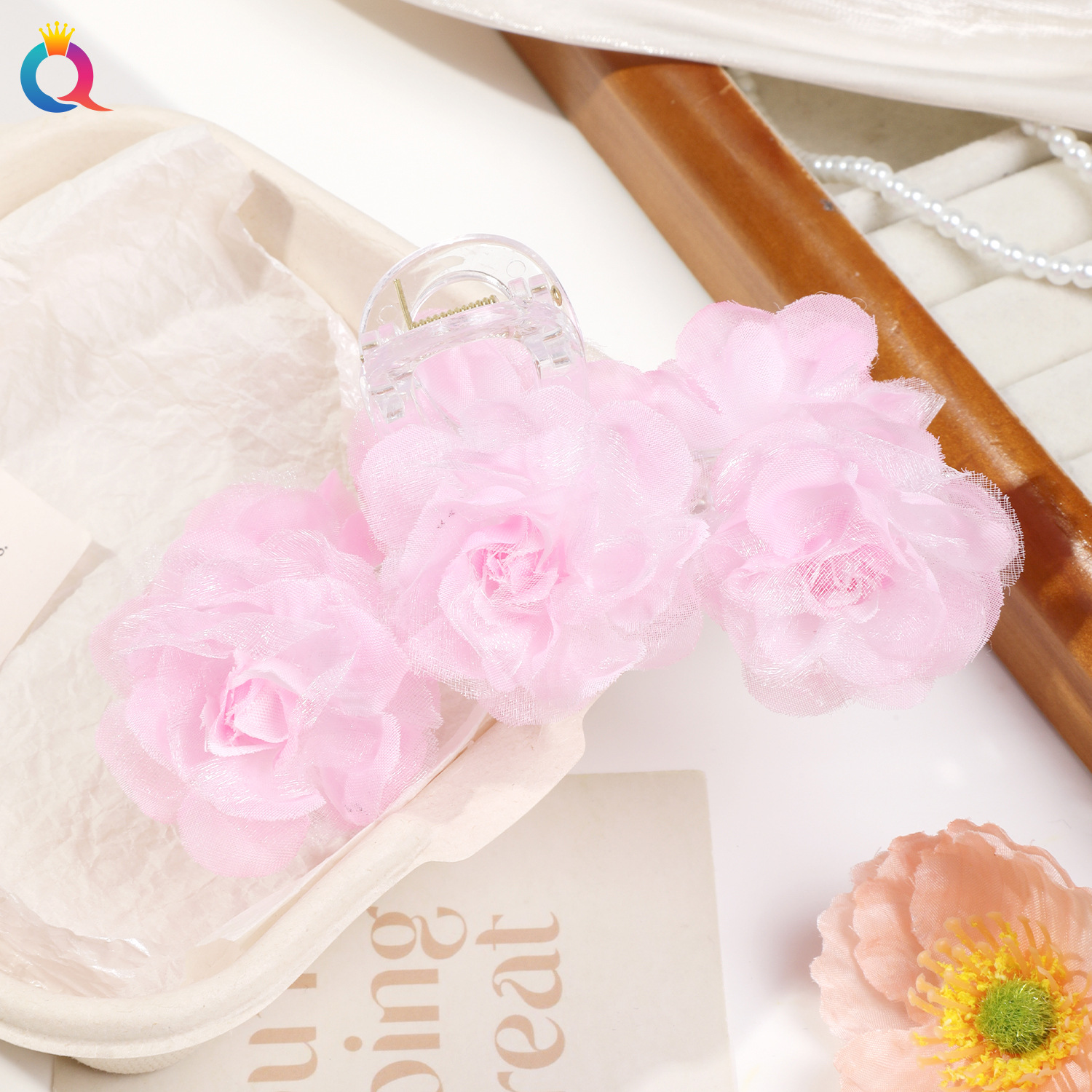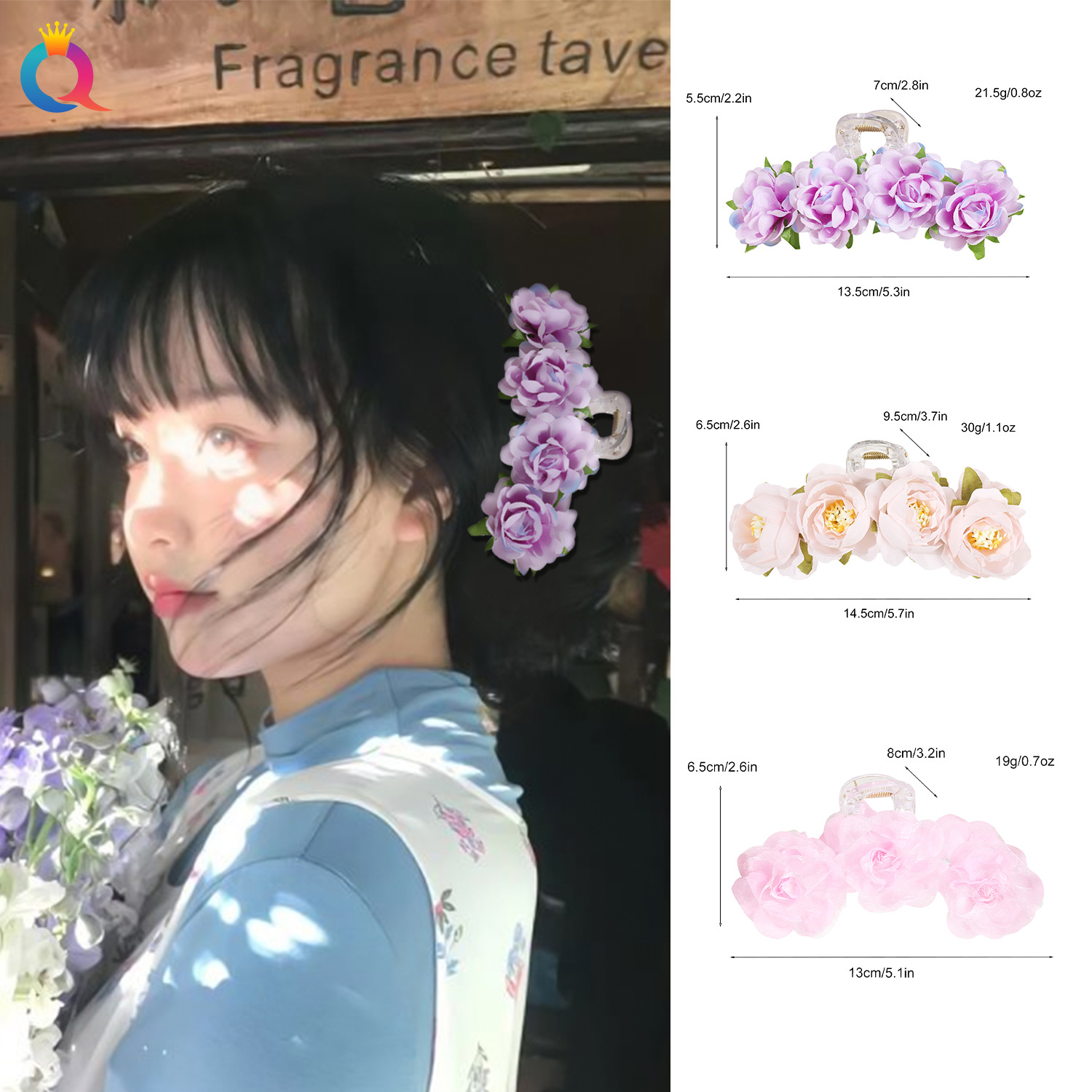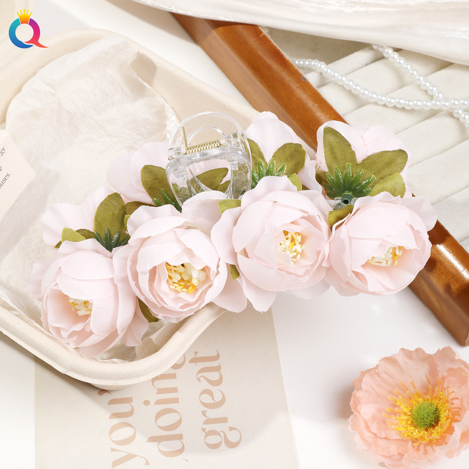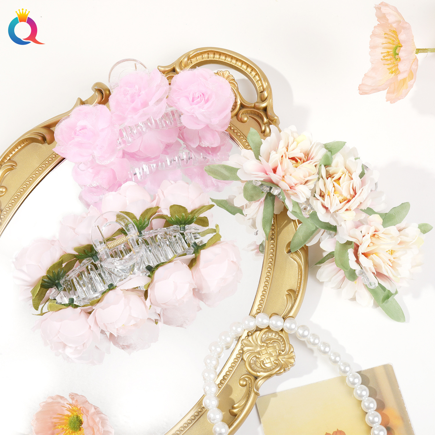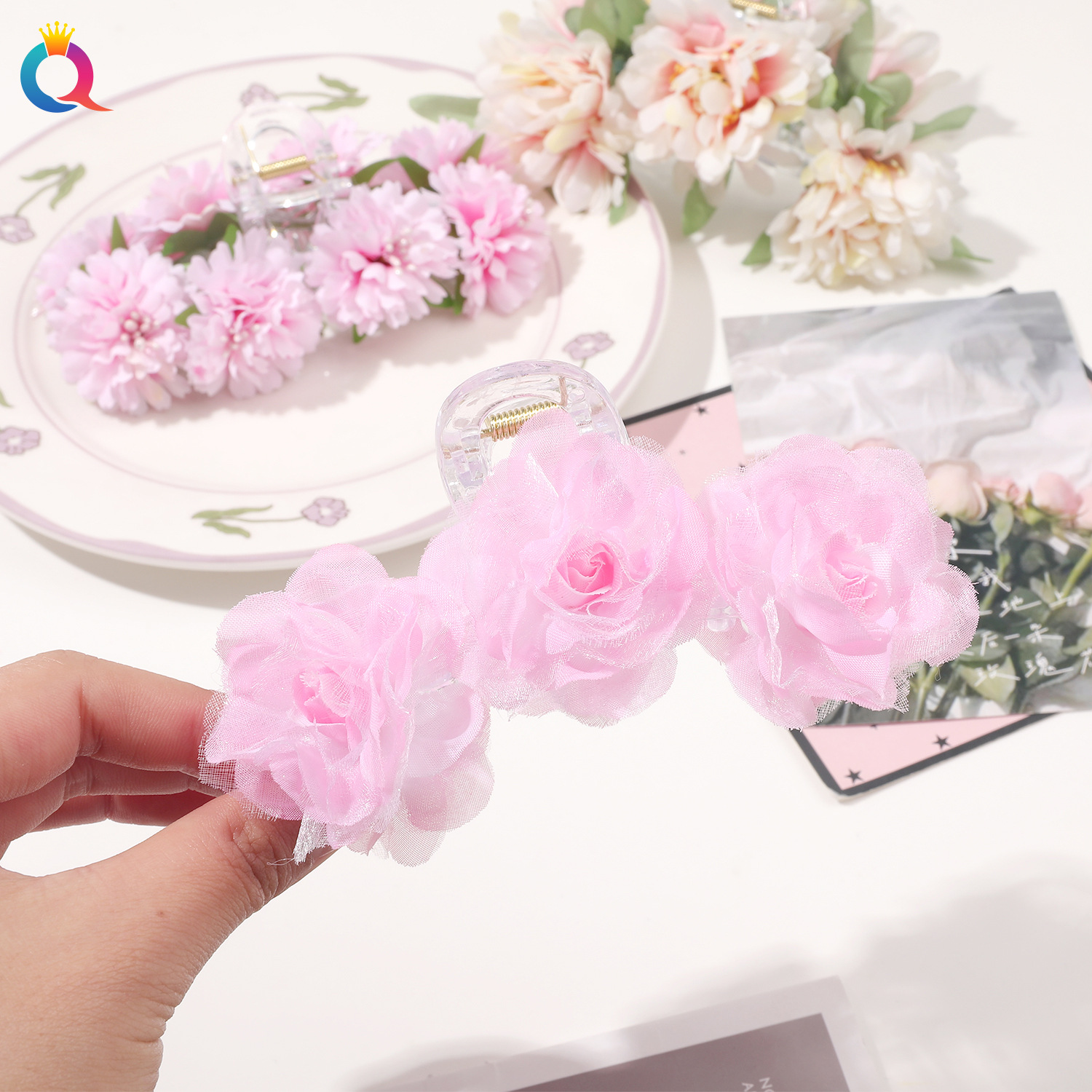 仿真花朵抓夹森系甜美玫瑰发夹少女鲨鱼夹大号批发
