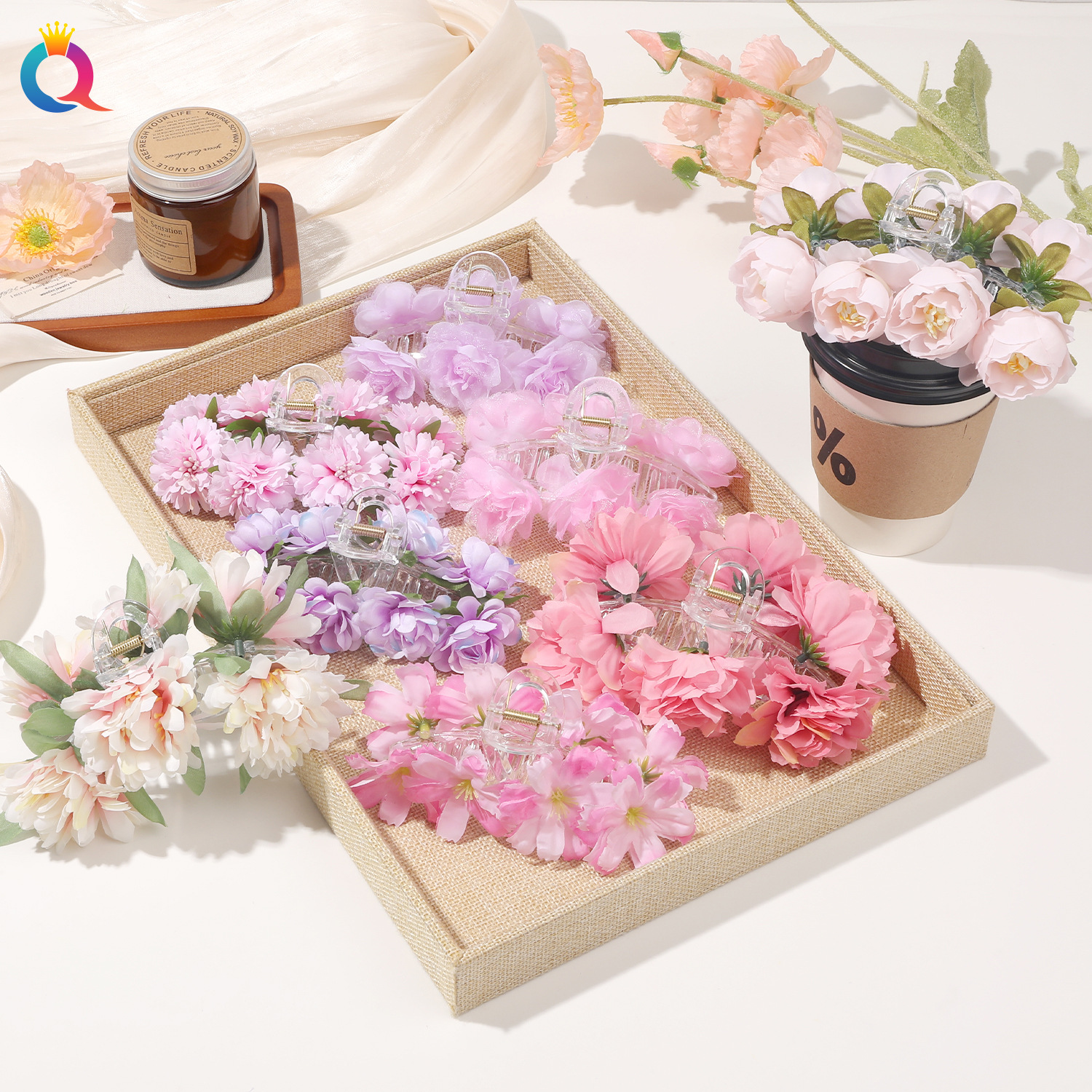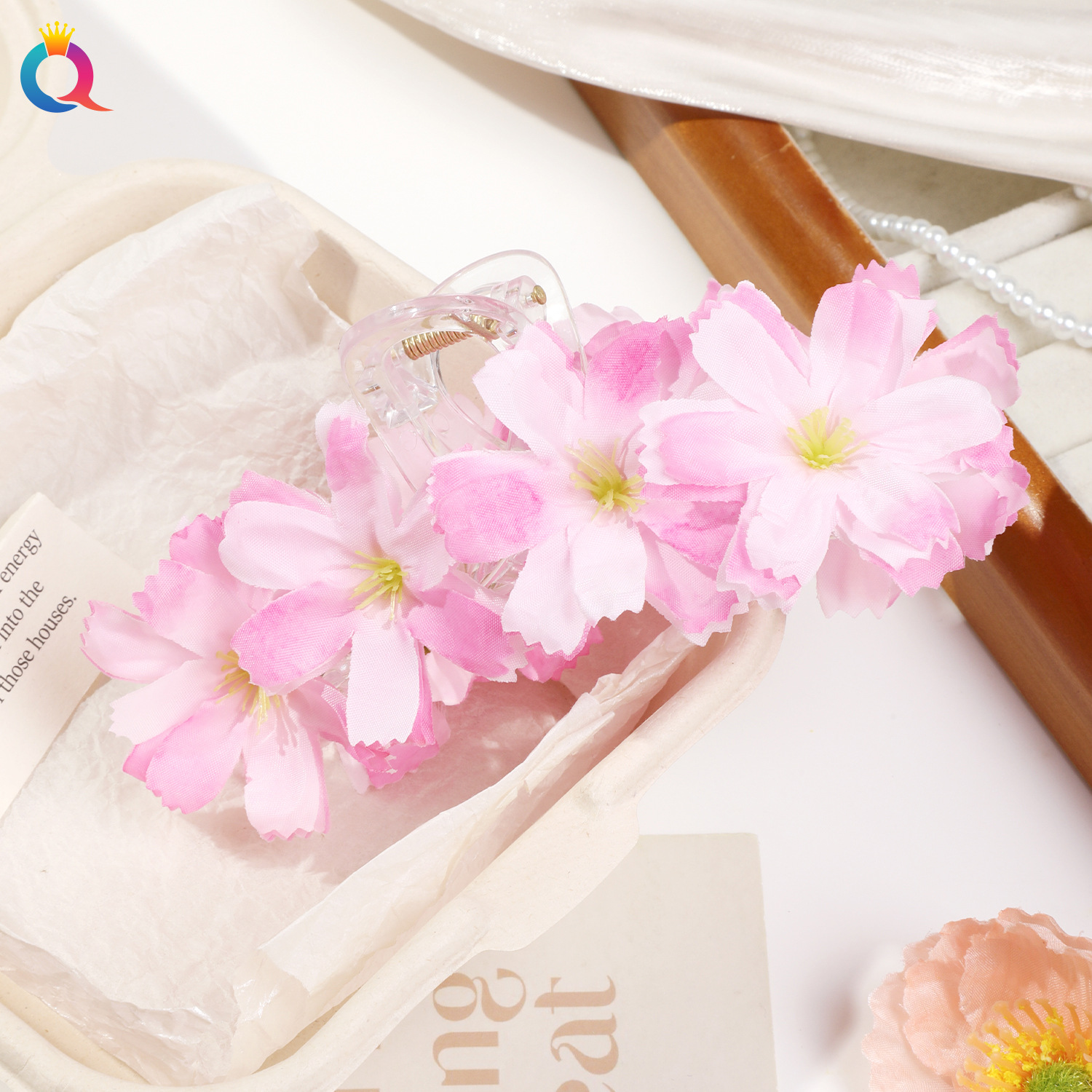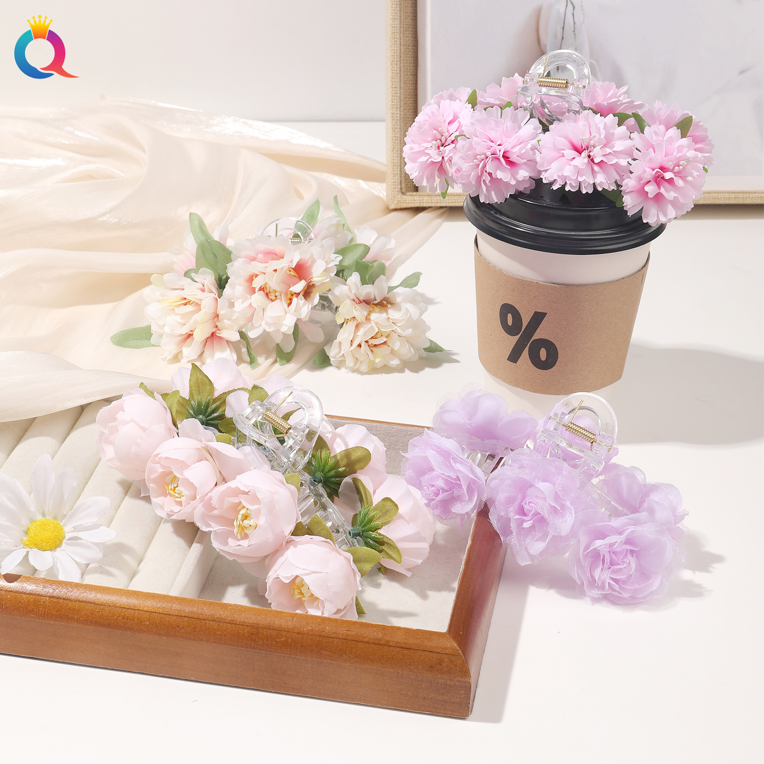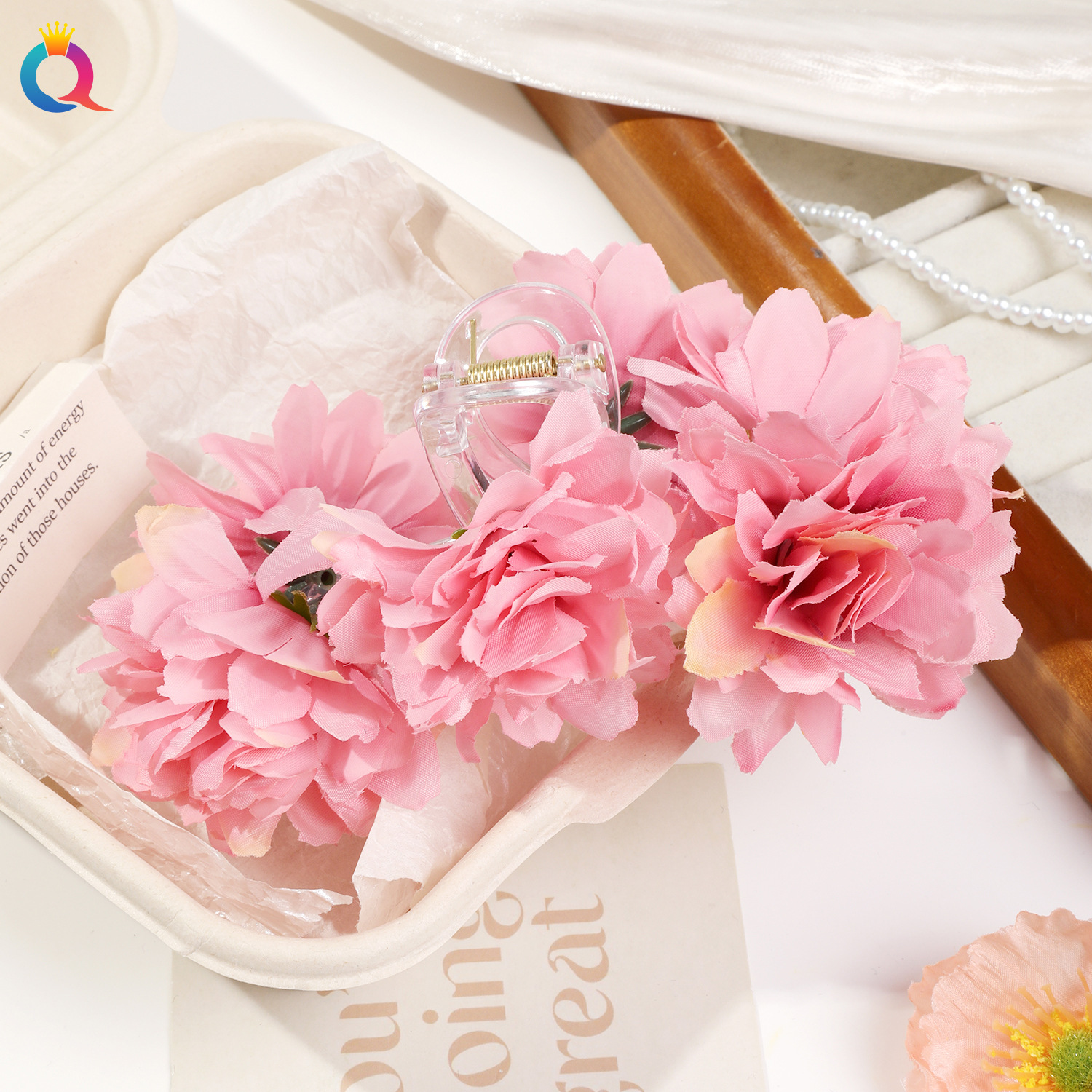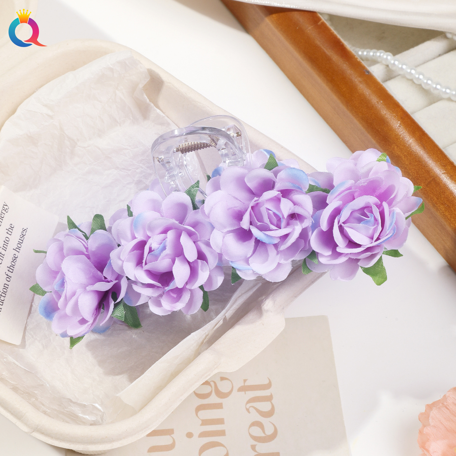 仿真花朵抓夹森系甜美玫瑰发夹少女鲨鱼夹大号批发