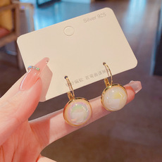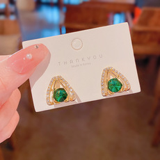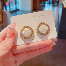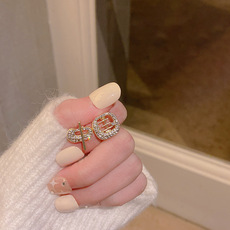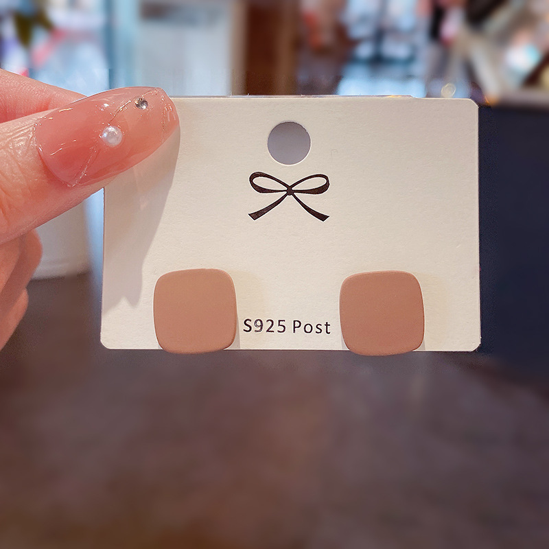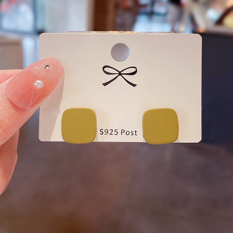 S925银针春夏新款莫兰迪色简约耳钉几何形小清新网红耳环耳饰品