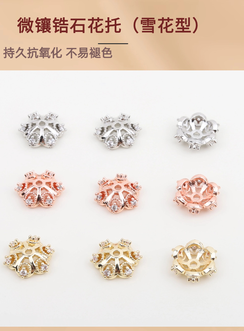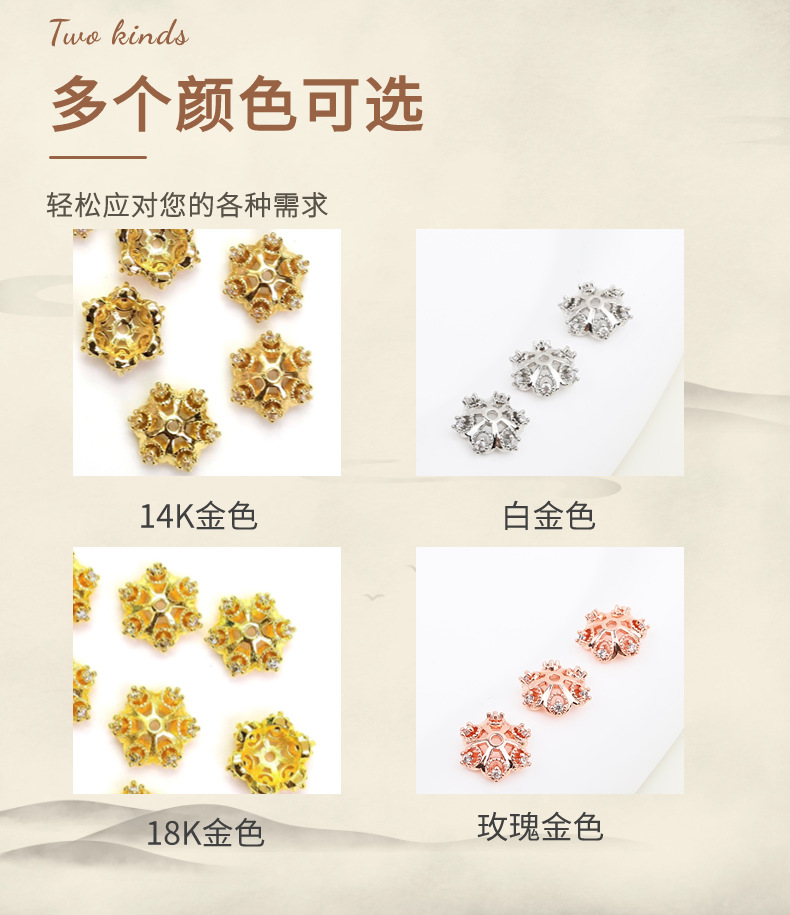 14K包金花托 雪花片饰品配件 diy隔片花帽散珠 珠子手工串珠材料