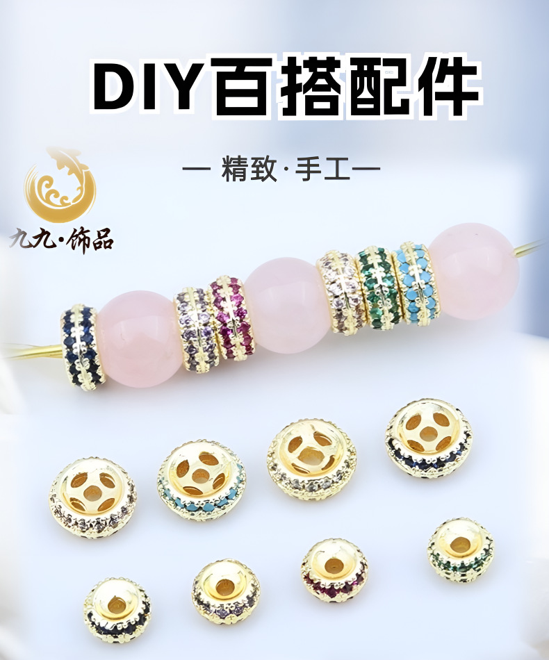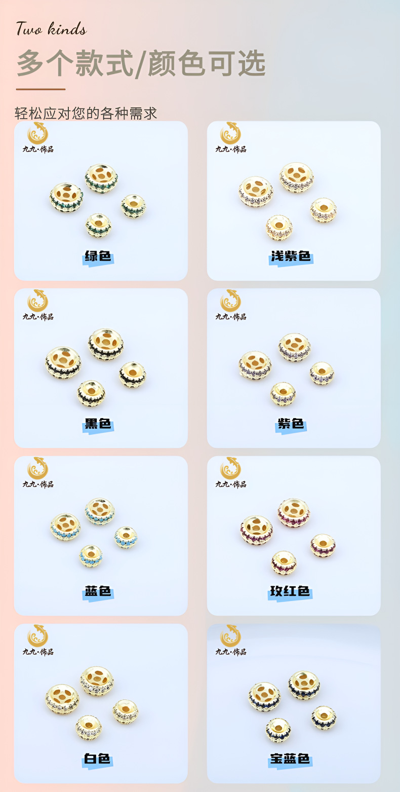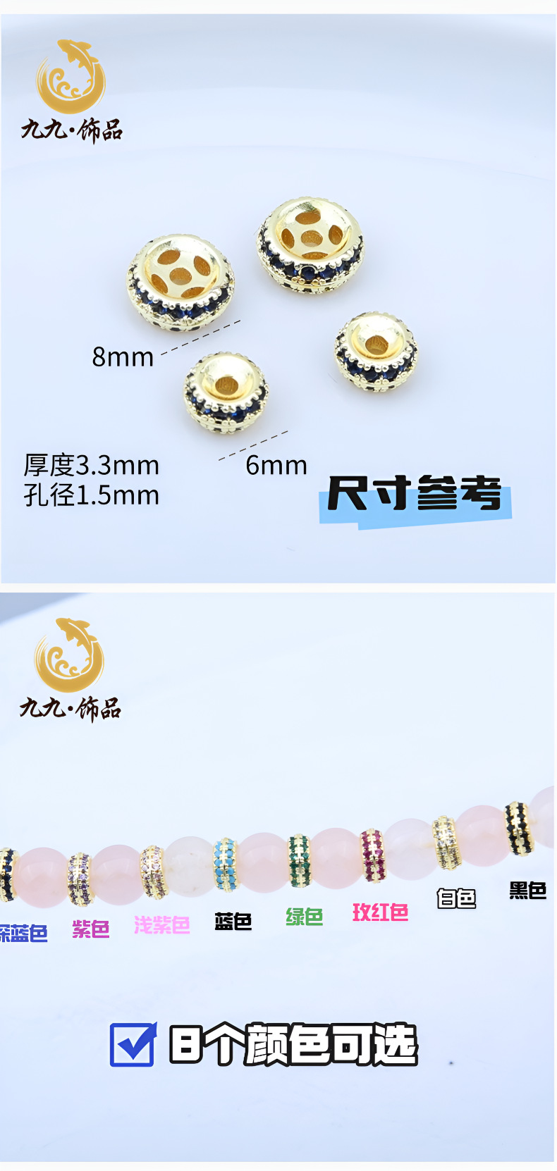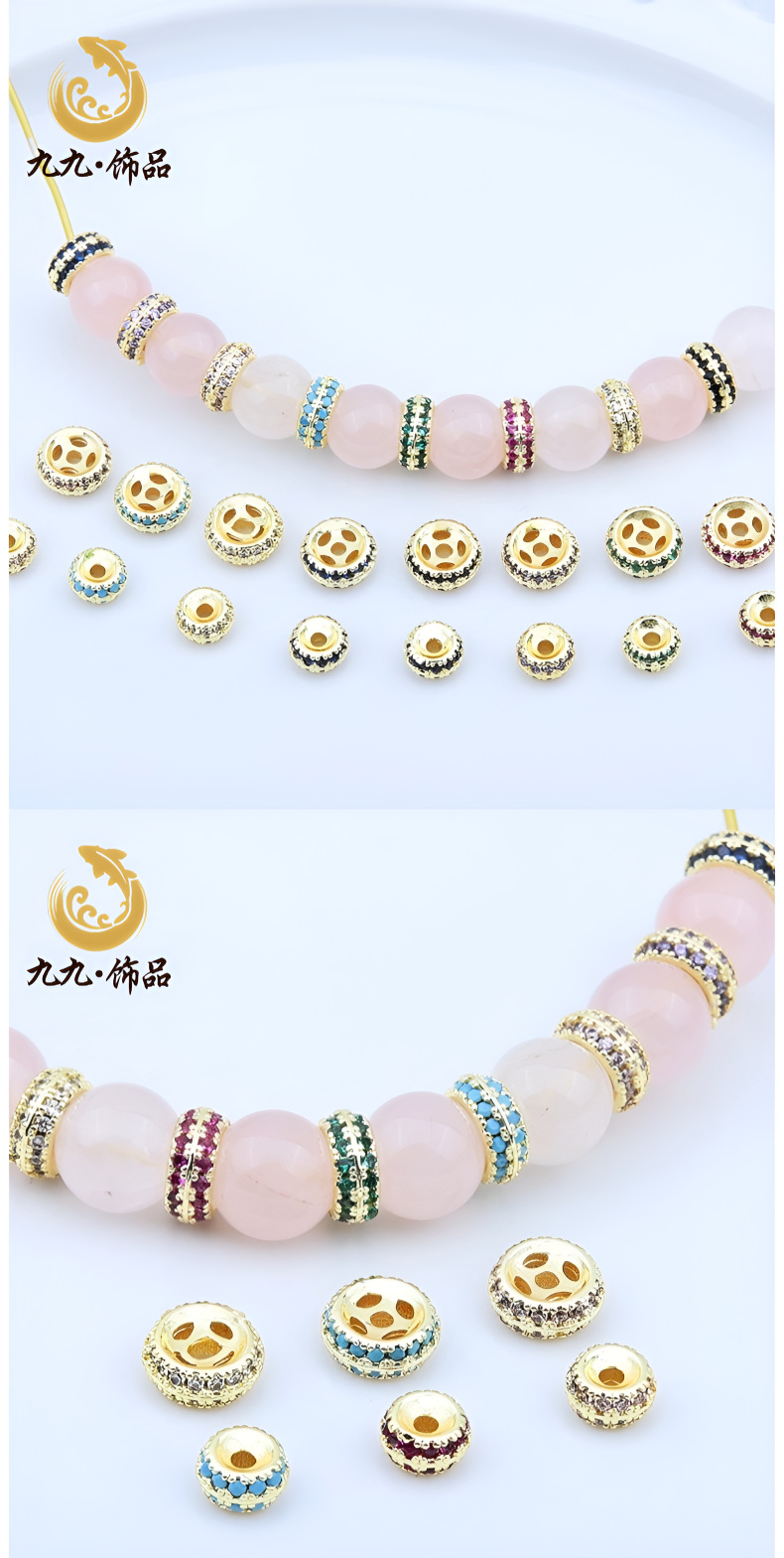 18K包金镶彩钻直切隔片垫片小孔隔珠星月文玩手链diy手串串珠配件