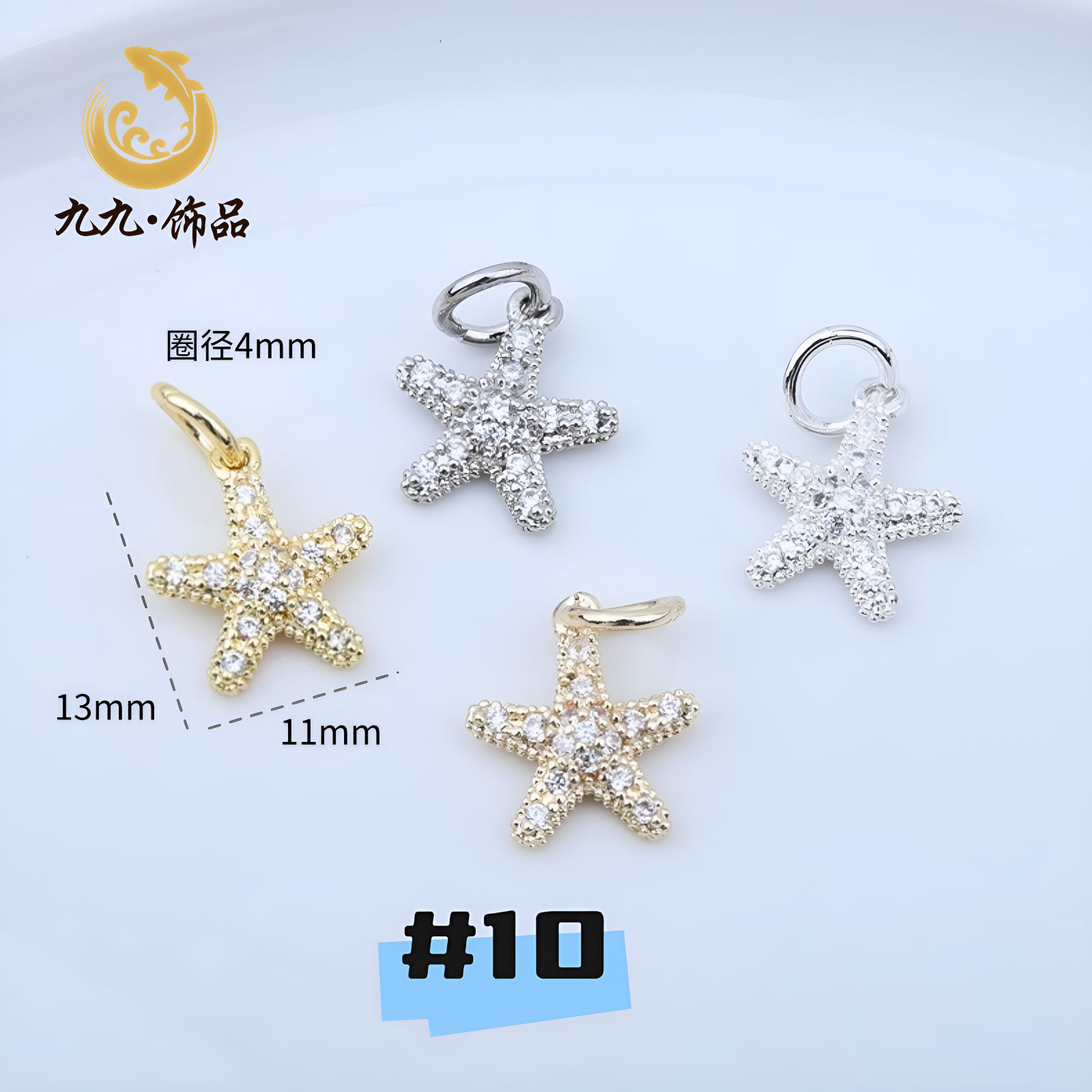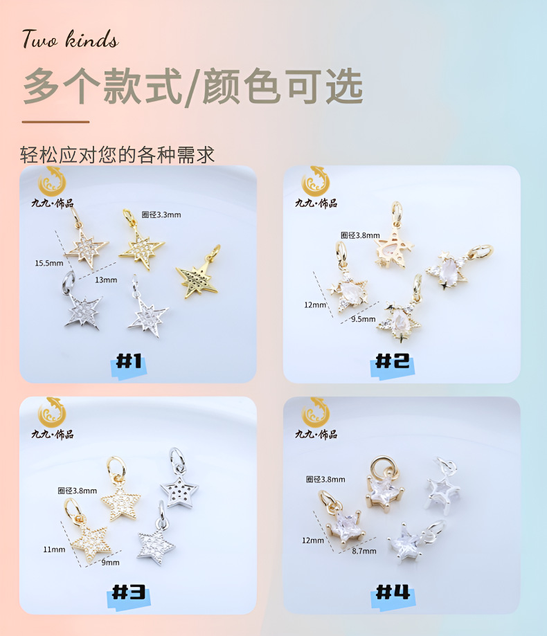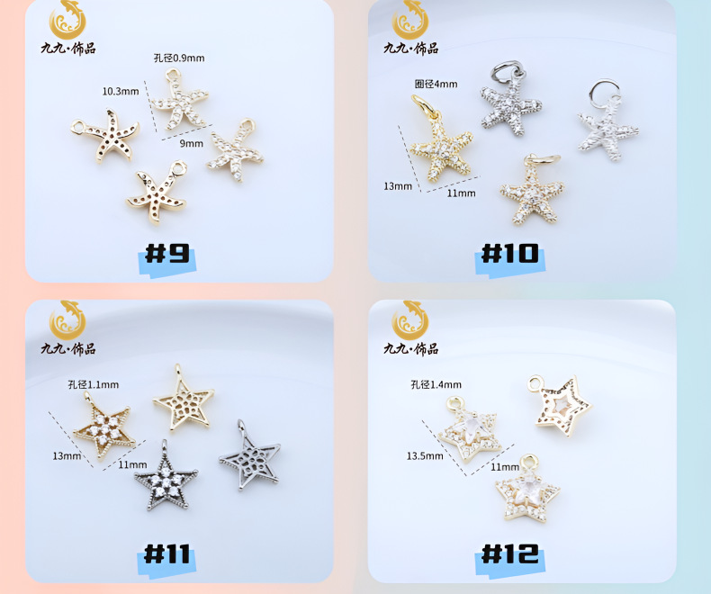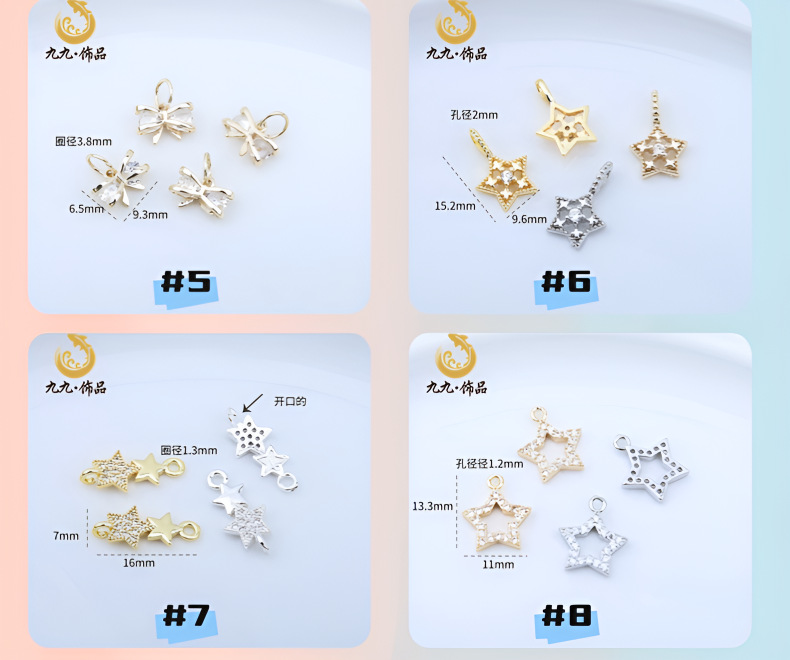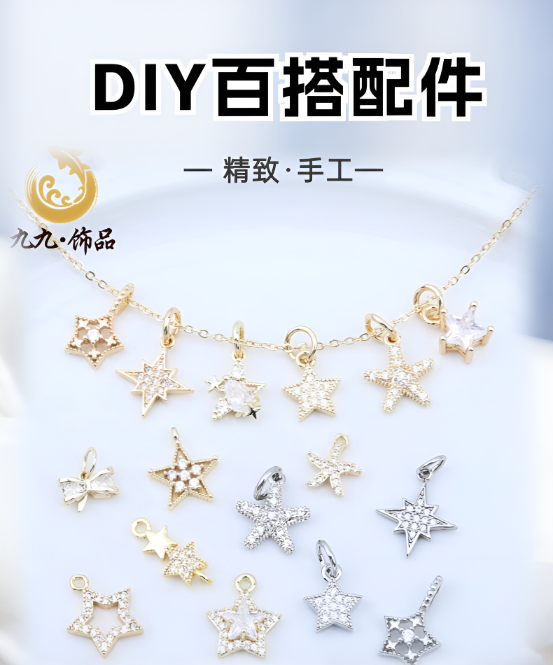 高保色14K包金微镶锆石五角星吊坠海星蝴蝶结坠子diy手工手链配件