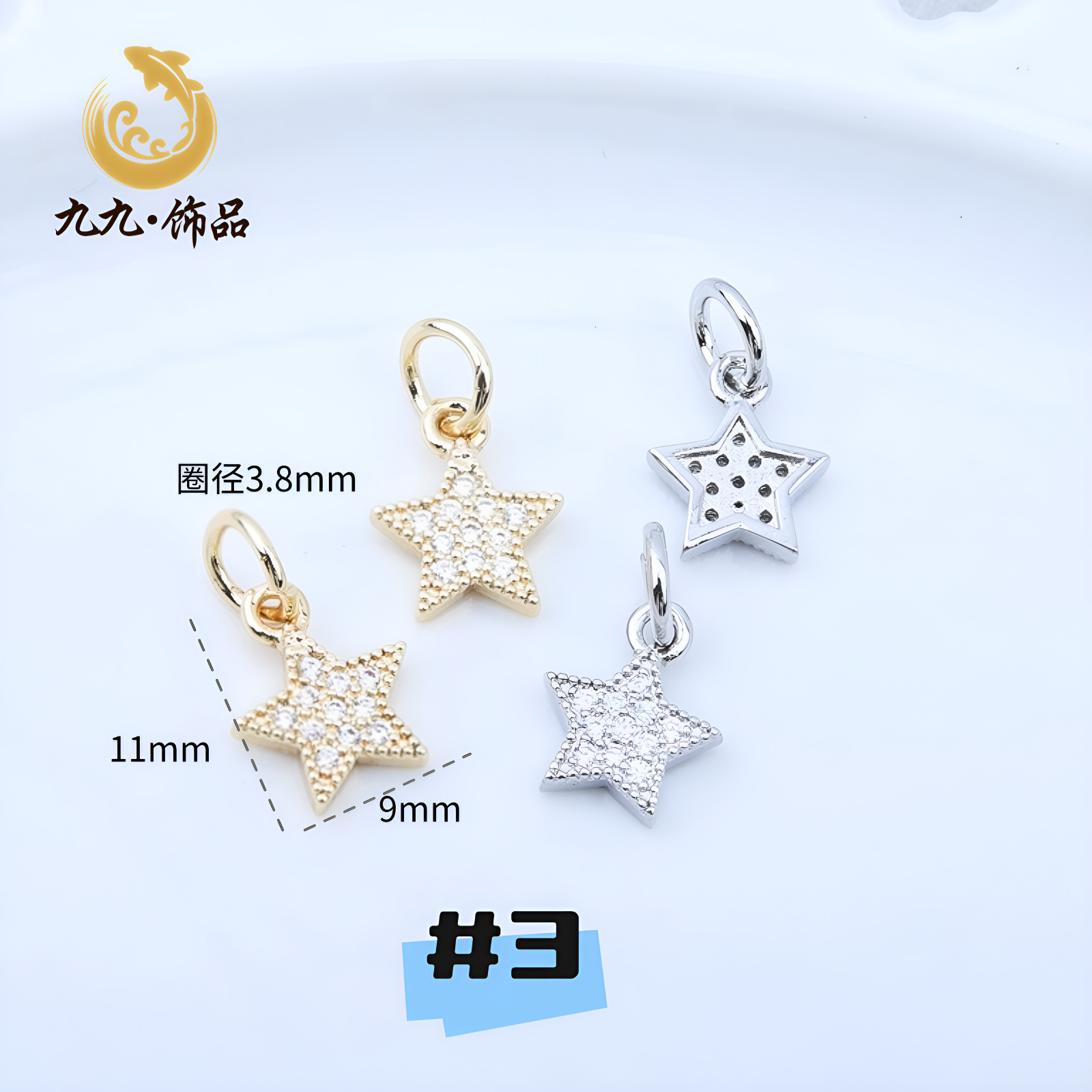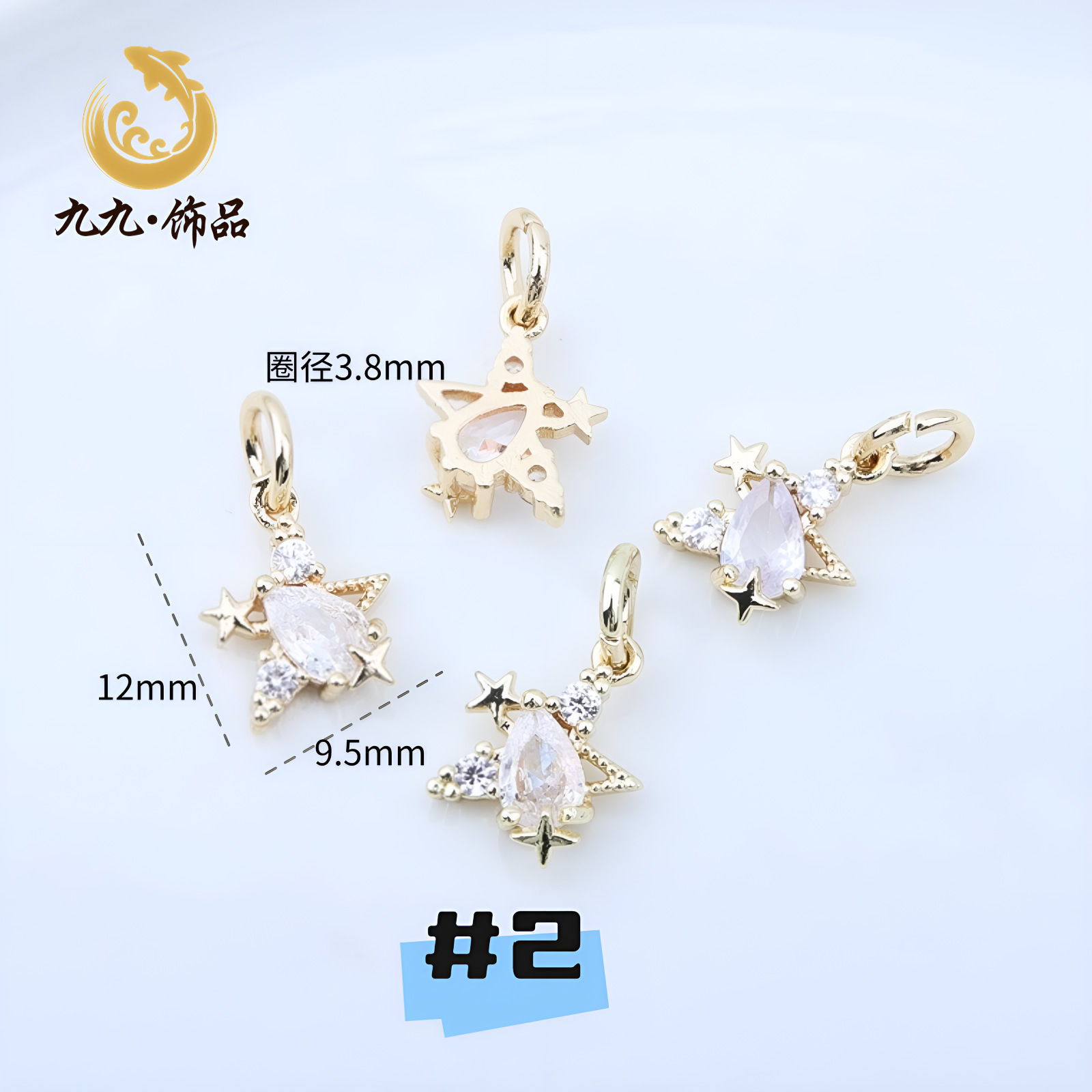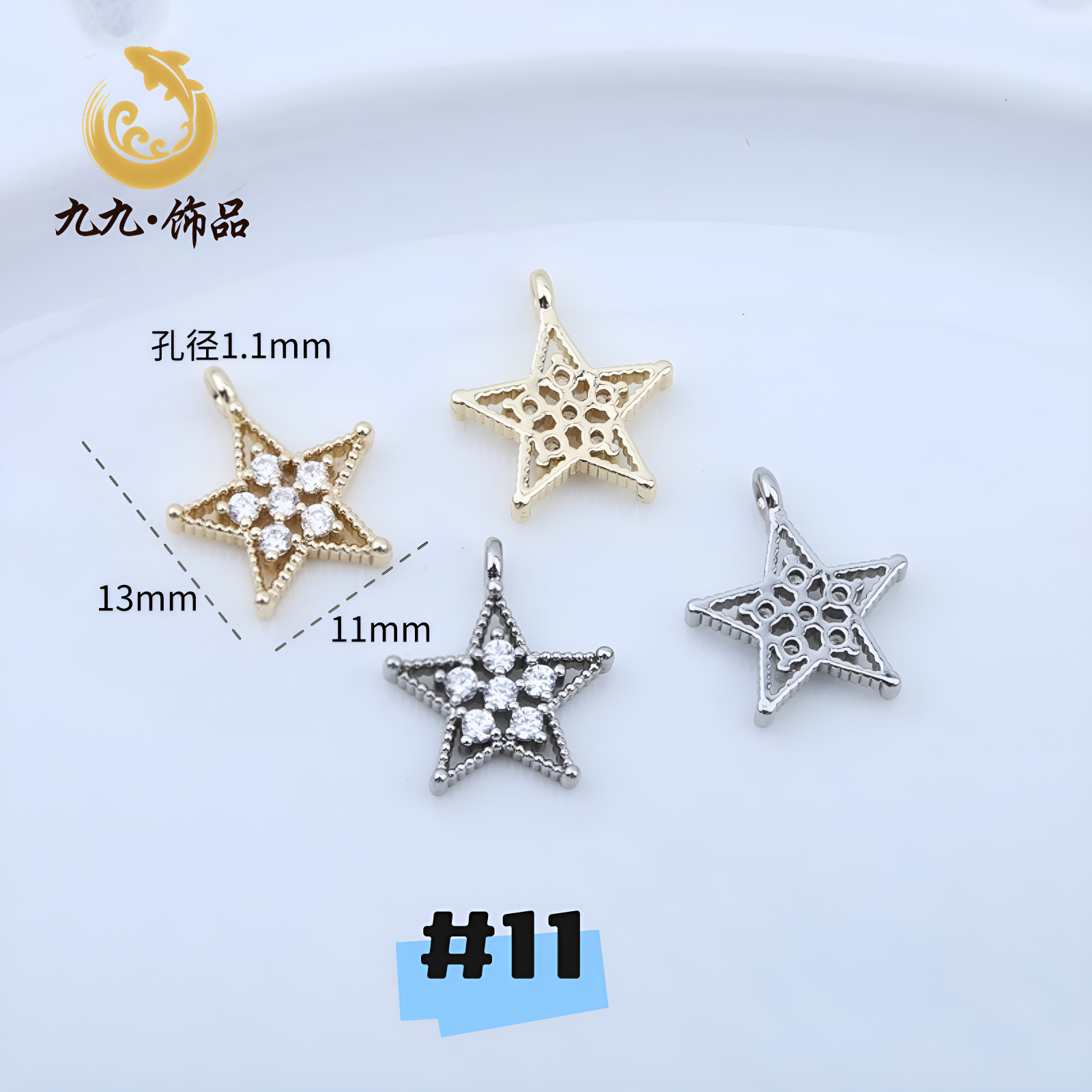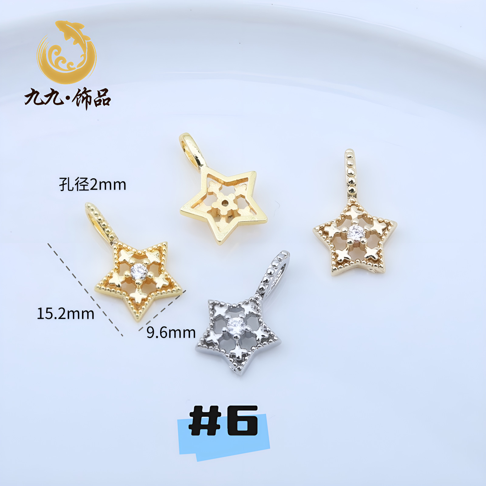 高保色14K包金微镶锆石五角星吊坠海星蝴蝶结坠子diy手工手链配件