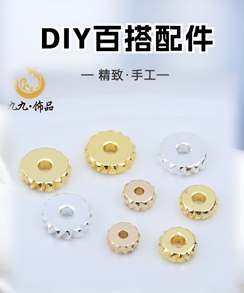 高保色14K包金切花轮胎珠弯刀隔片月牙齿轮珠diy手工手链饰品配件