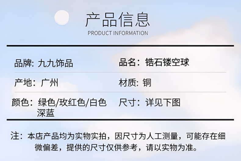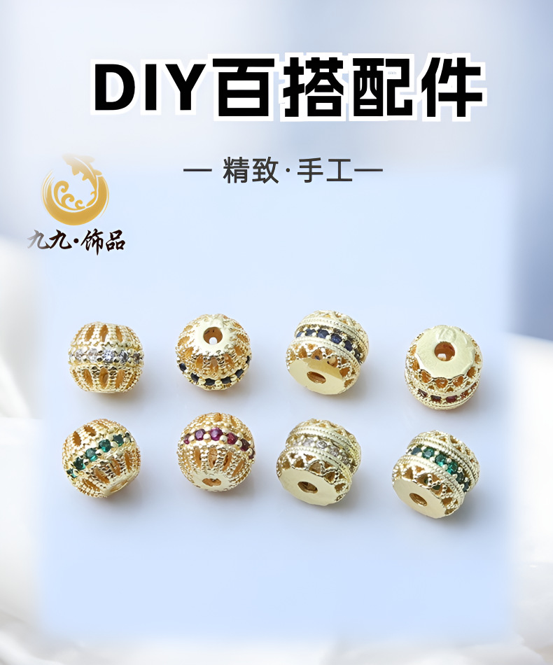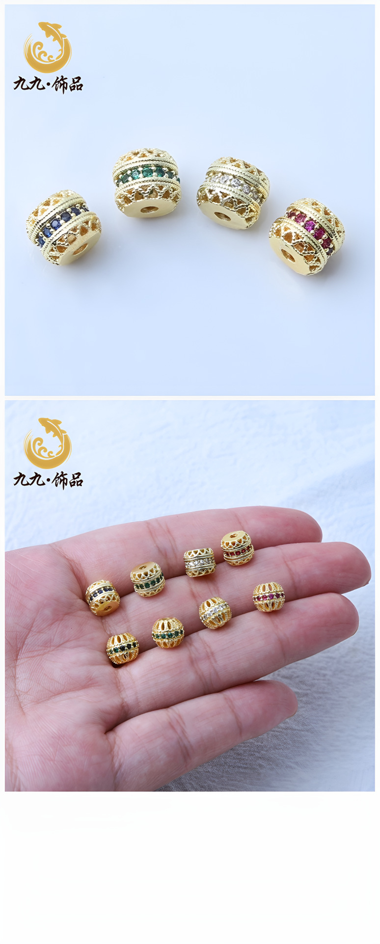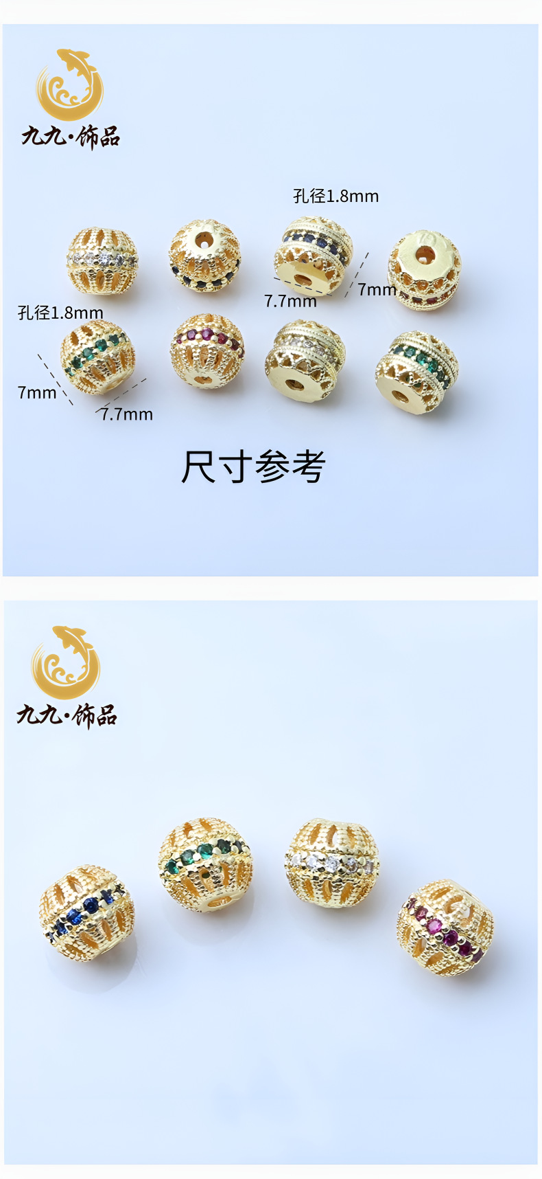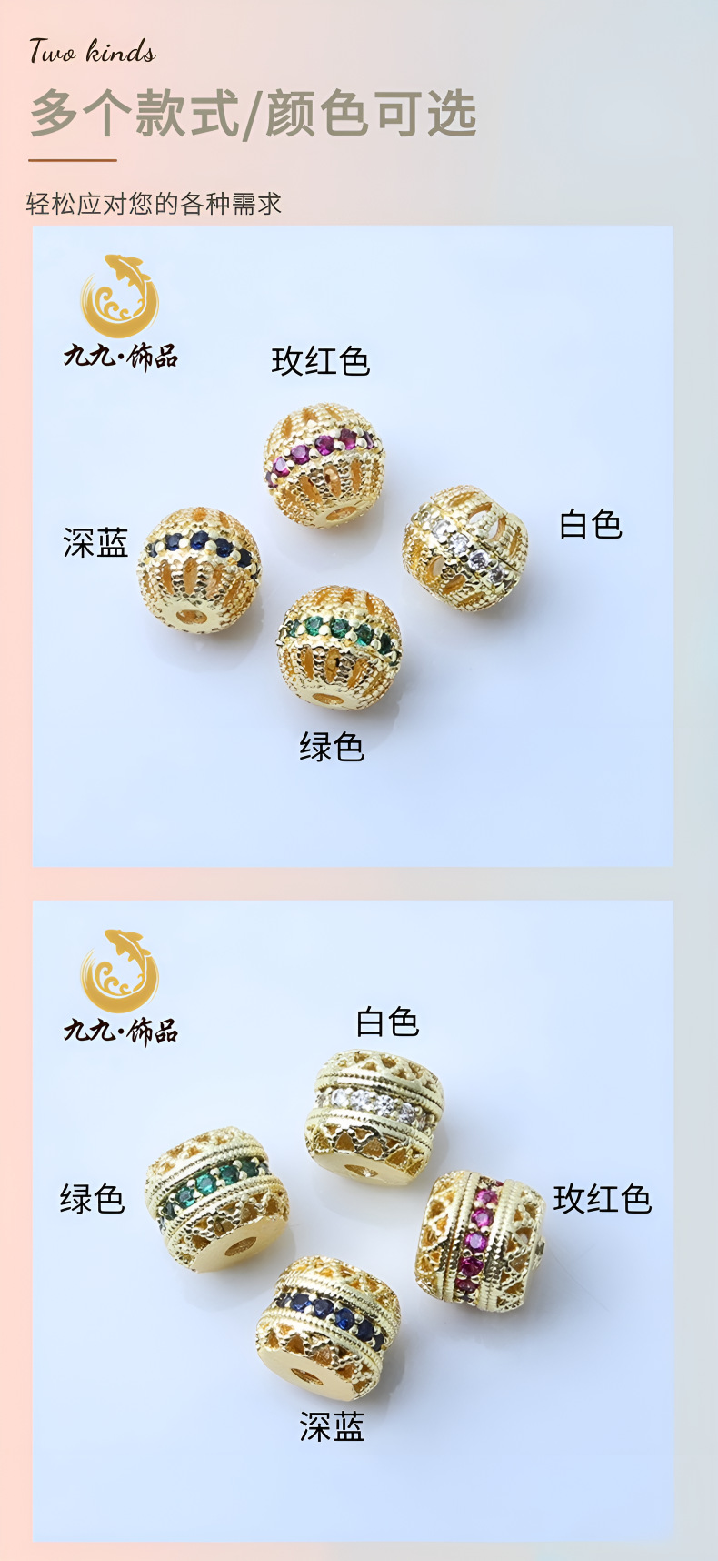 18K包金保色微镶彩色锆石圆珠镂空圆珠散珠diy手工串珠饰品配件