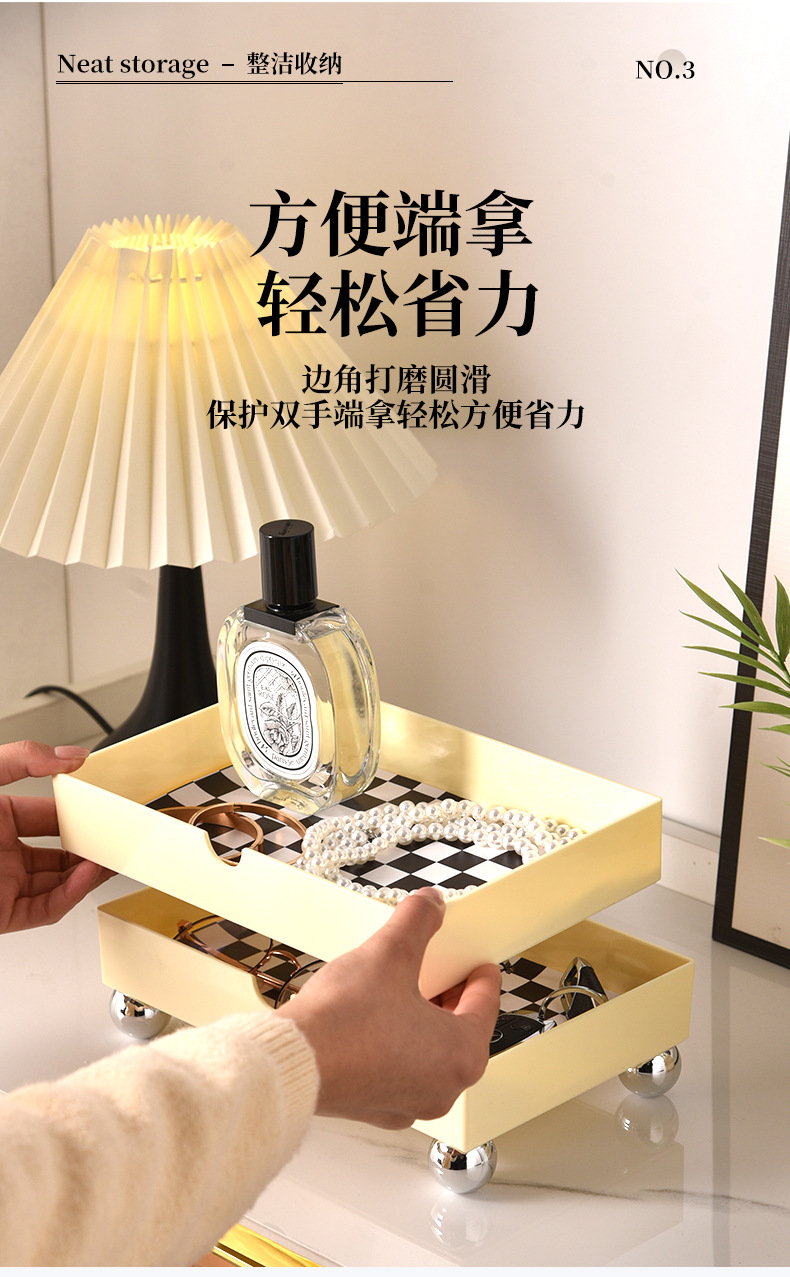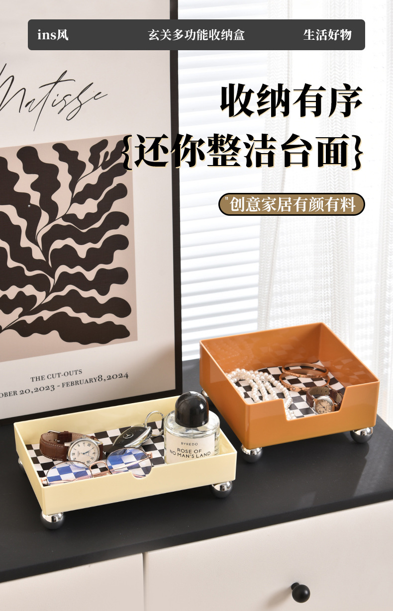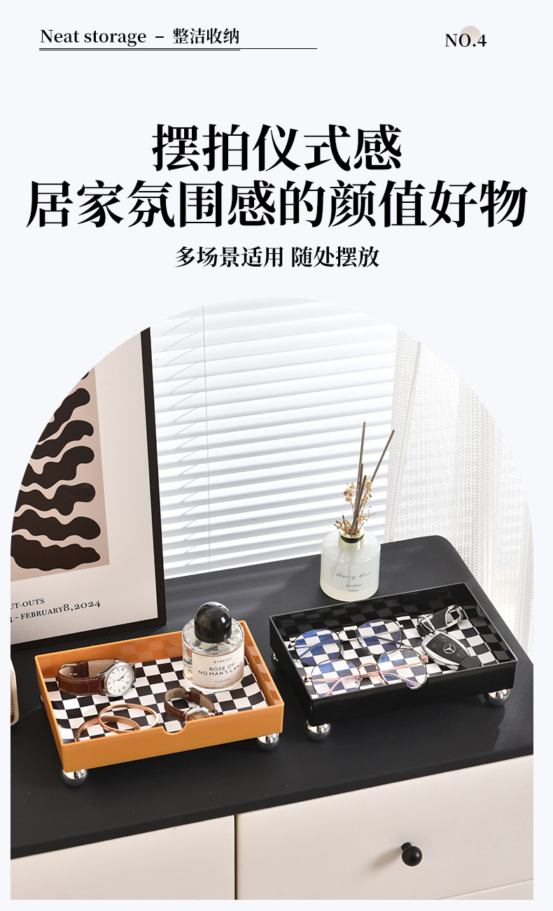 玄关复古棋盘格收纳盘家居浴室客厅卧室小物件饰品入户黑白置物盘
