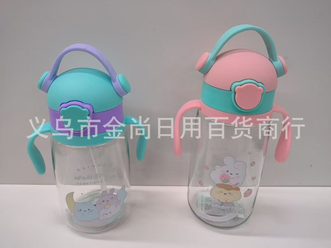 儿童水杯吸管杯卡通塑料杯可爱创意搅拌杯小学生塑料弹跳水杯批发