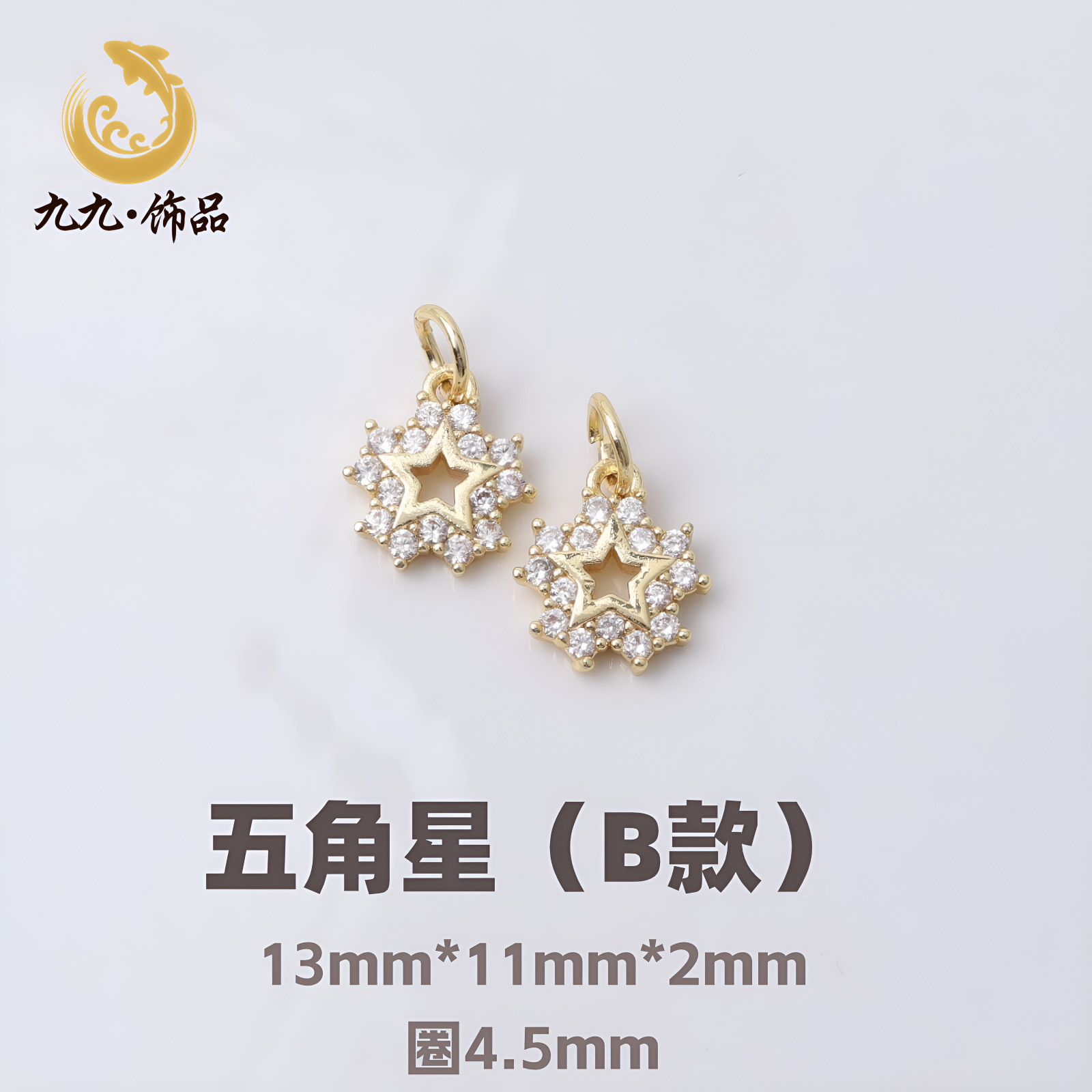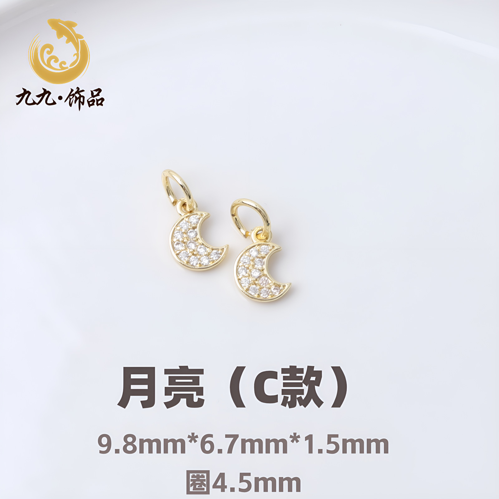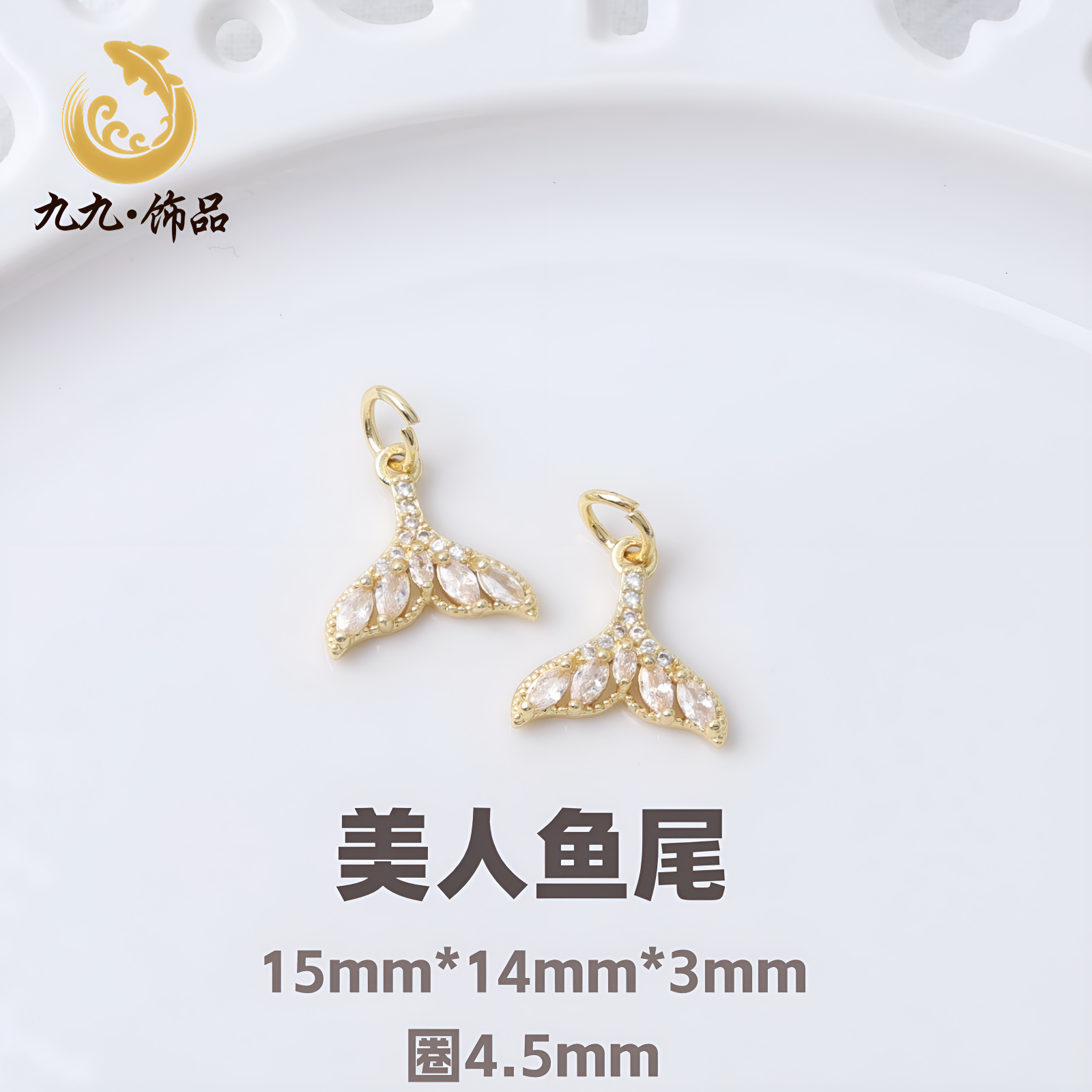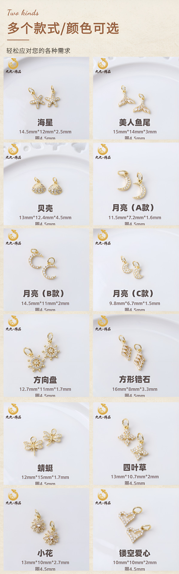 18K包金镶白色锆石爱心五角星月亮鱼尾小吊坠手工diy项链手链材料