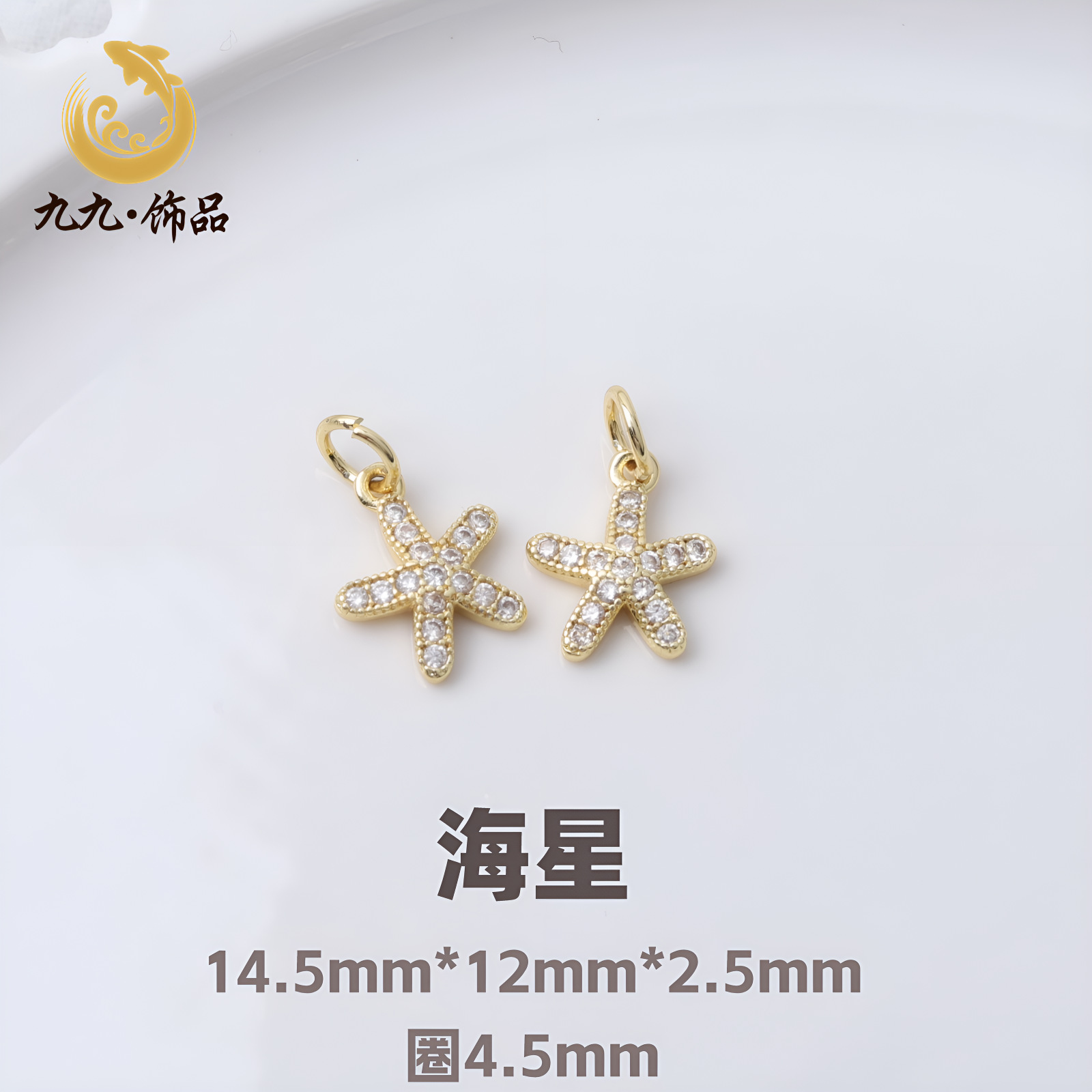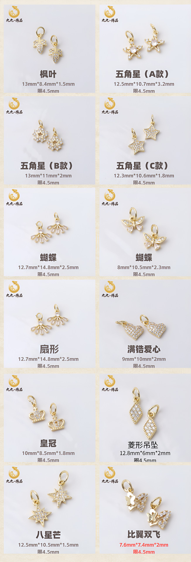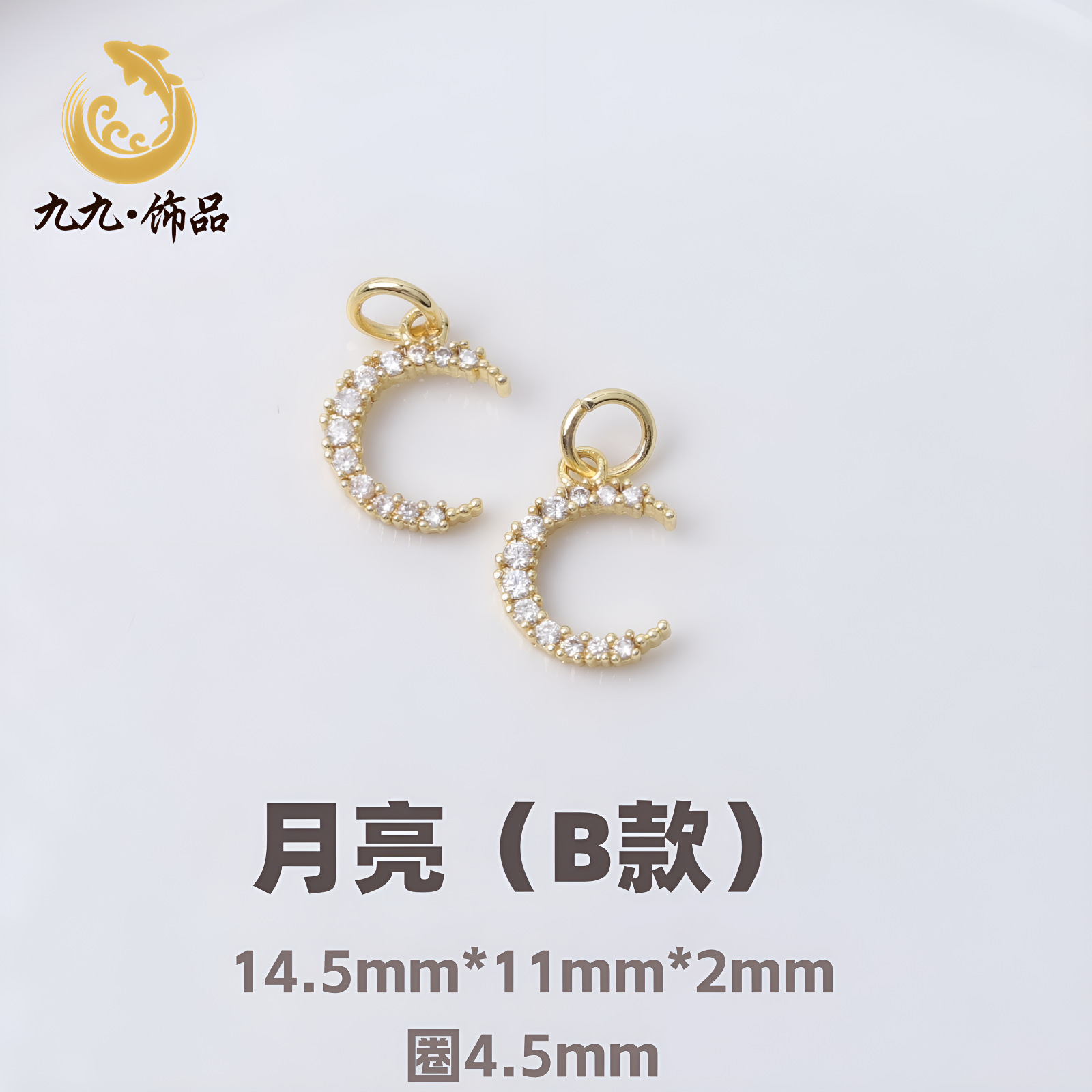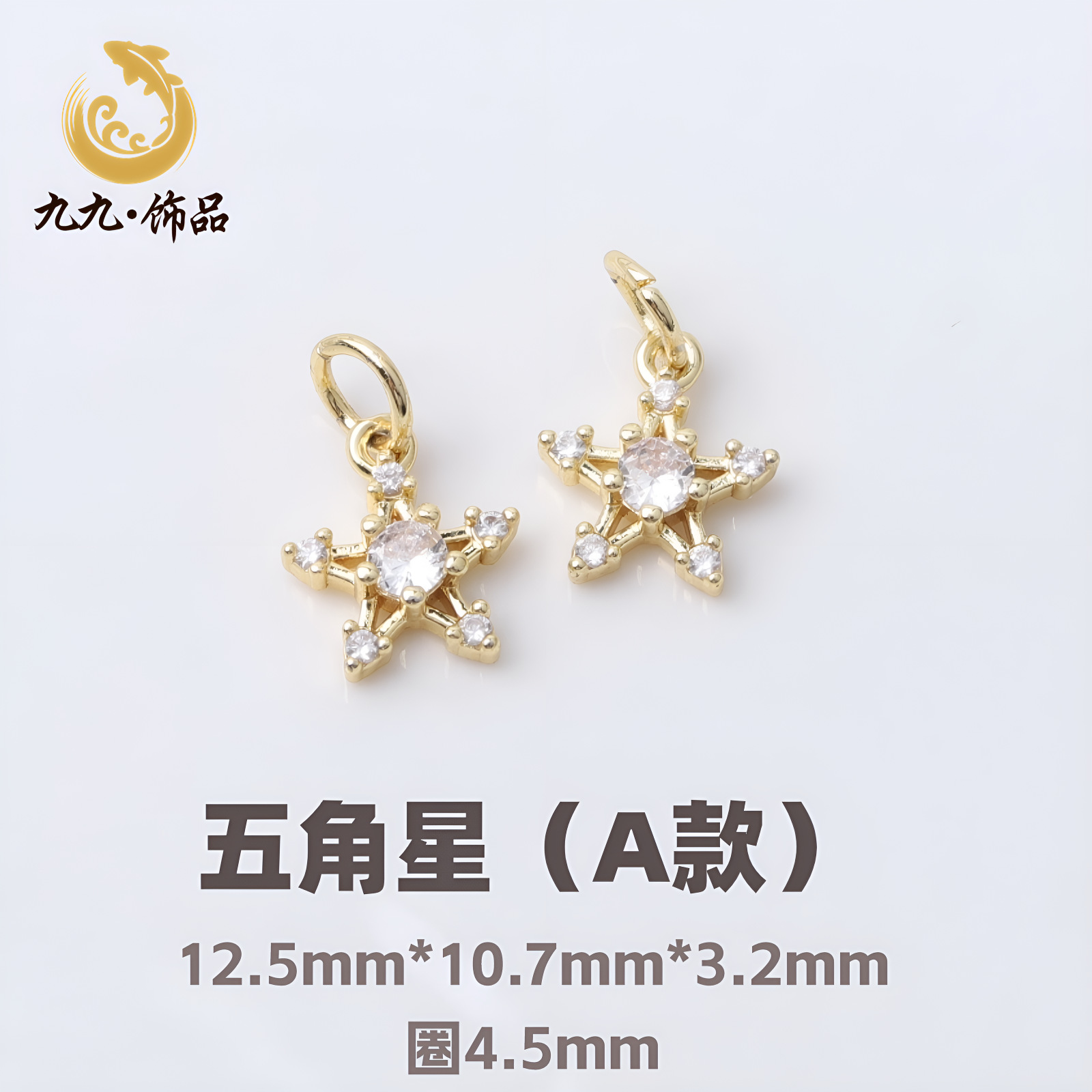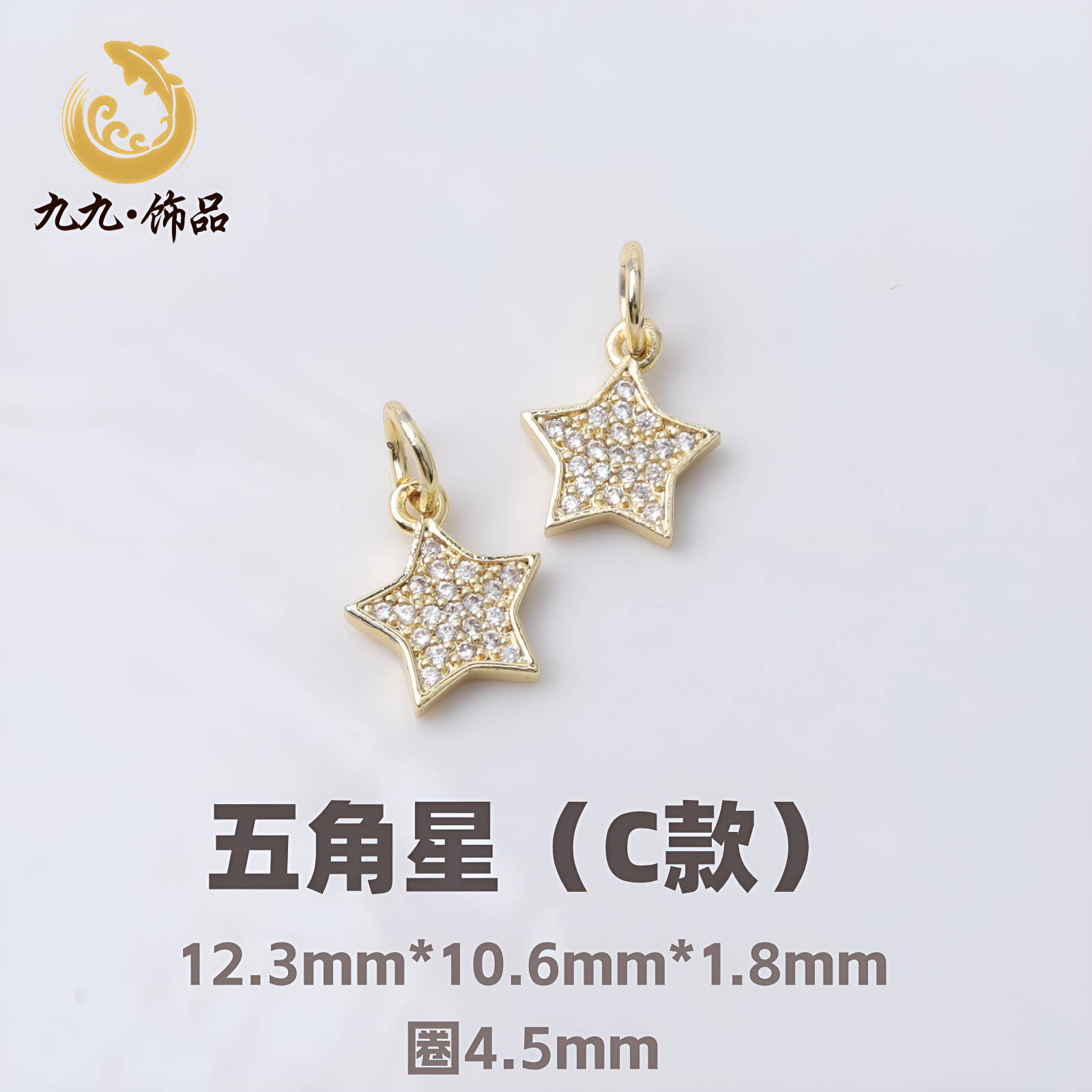 18K包金镶白色锆石爱心五角星月亮鱼尾小吊坠手工diy项链手链材料